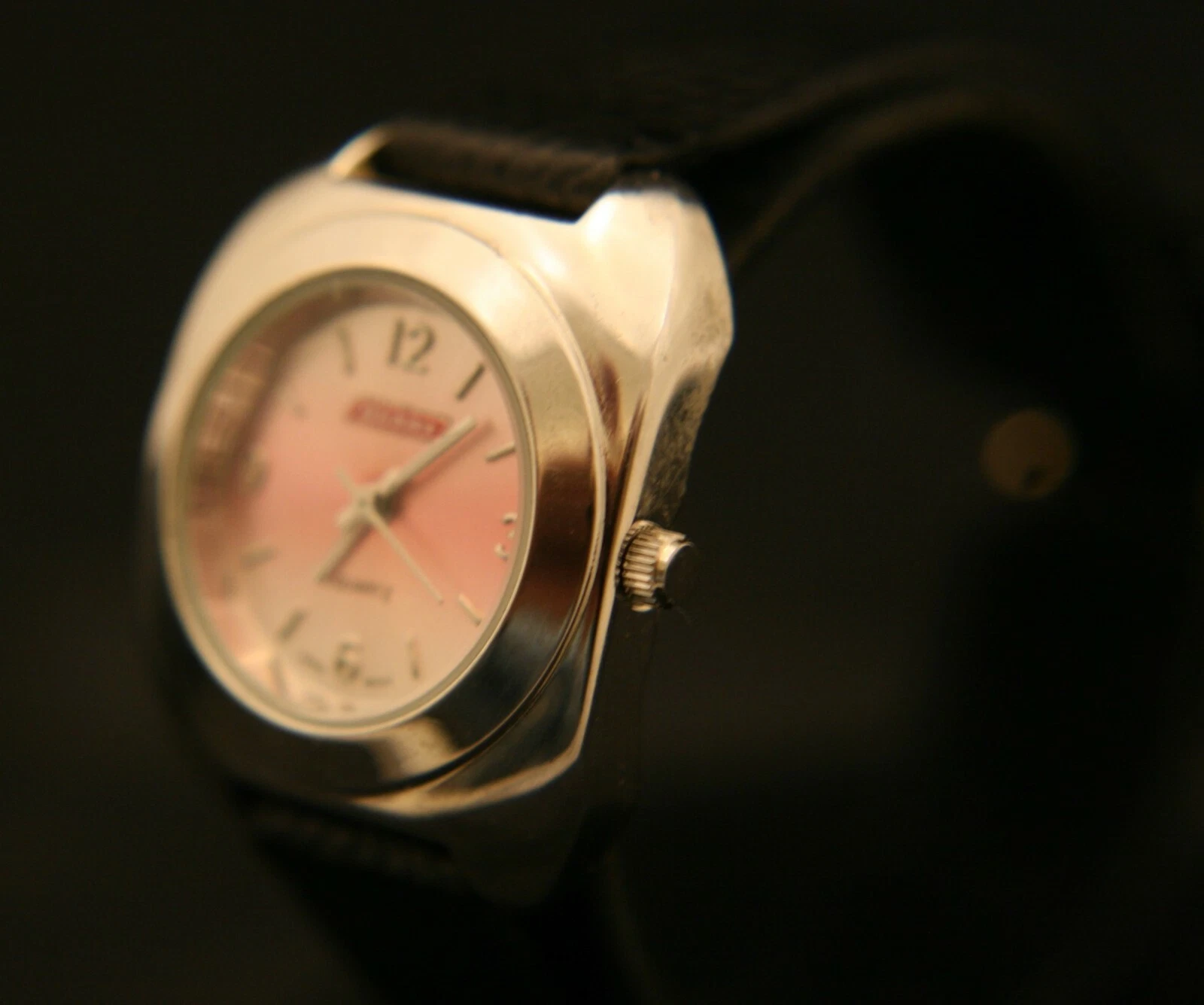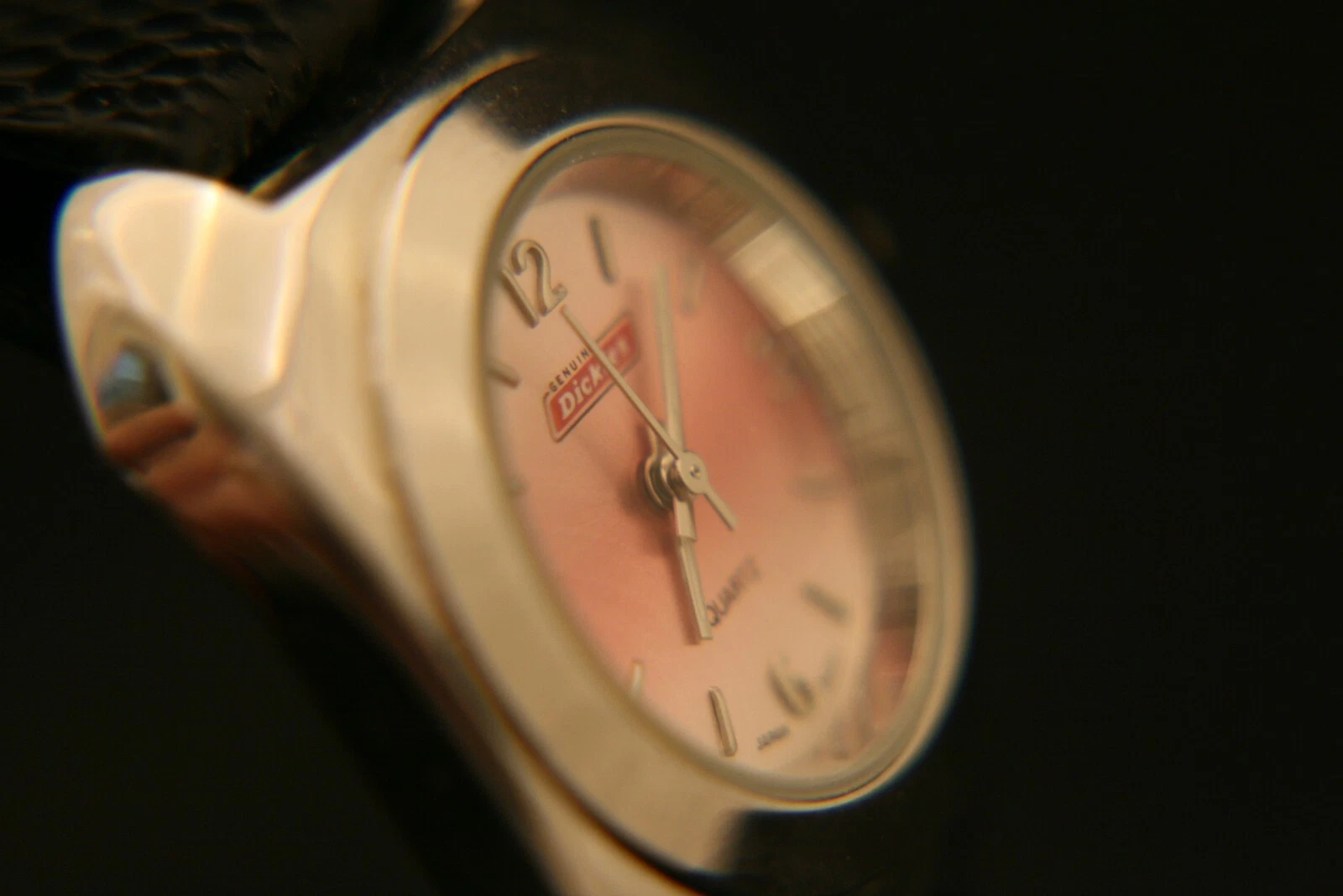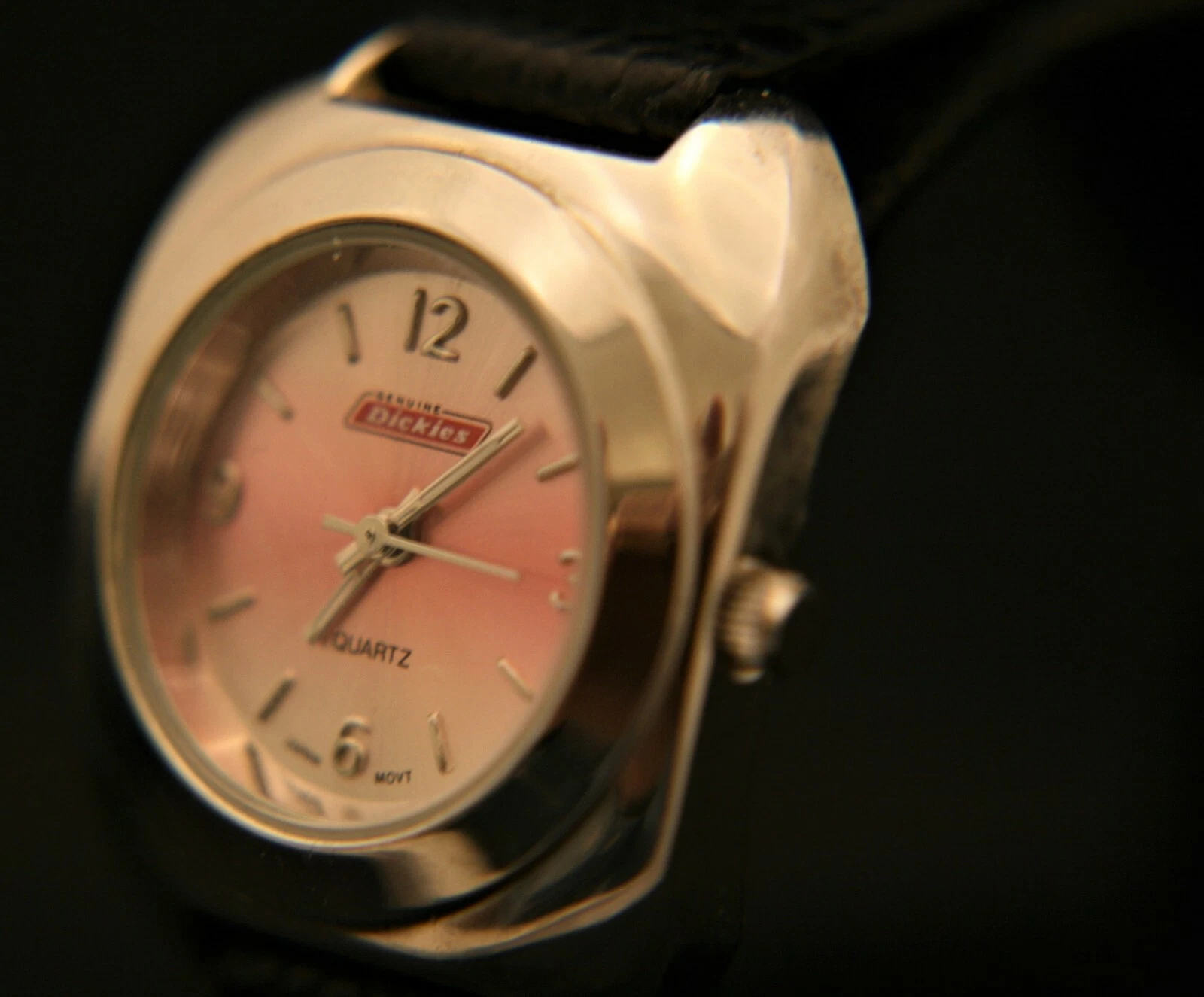 New ladies' genuine Dickies light pink dial Japanese quartz wristwatch, leather