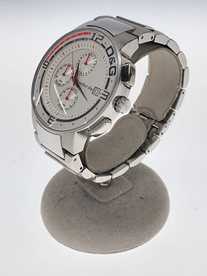 D&G Quartz Analog White Silver Stainless Steel Near Mint JAPAN