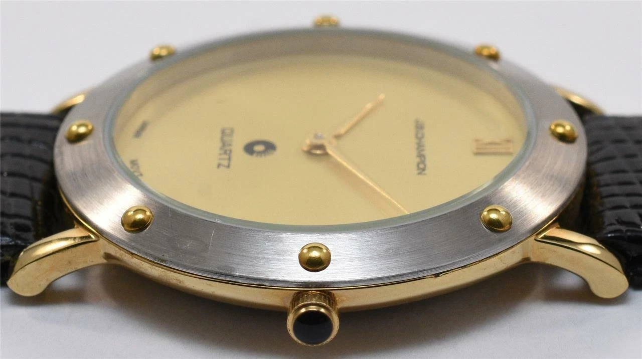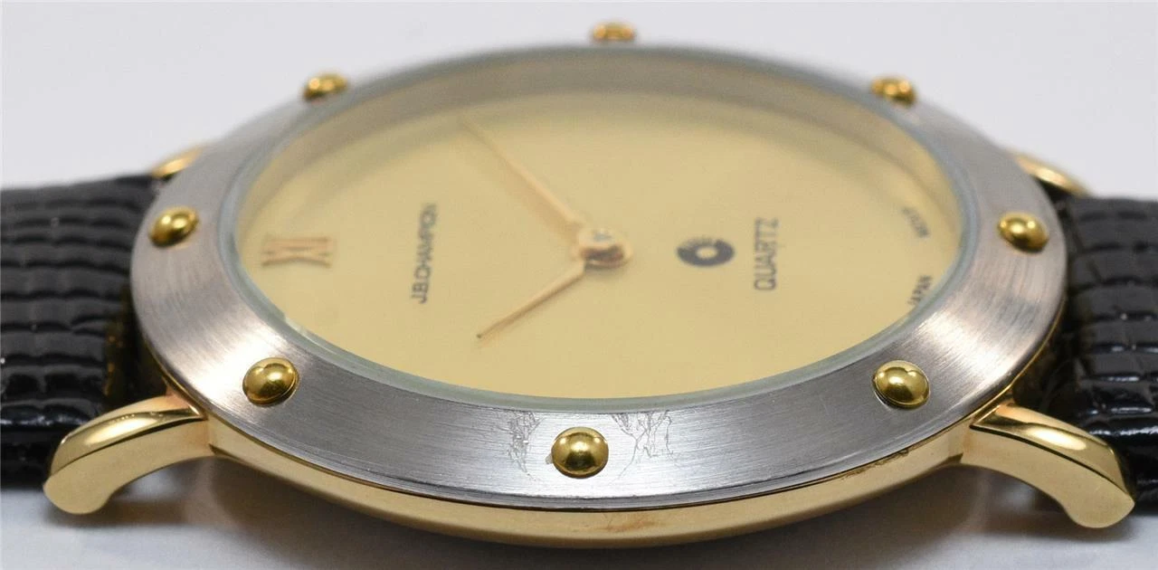 NOS 33mm Mens JB Champion Two Tone SERVICED Watch Gold Dial Lizard Calf Strap
