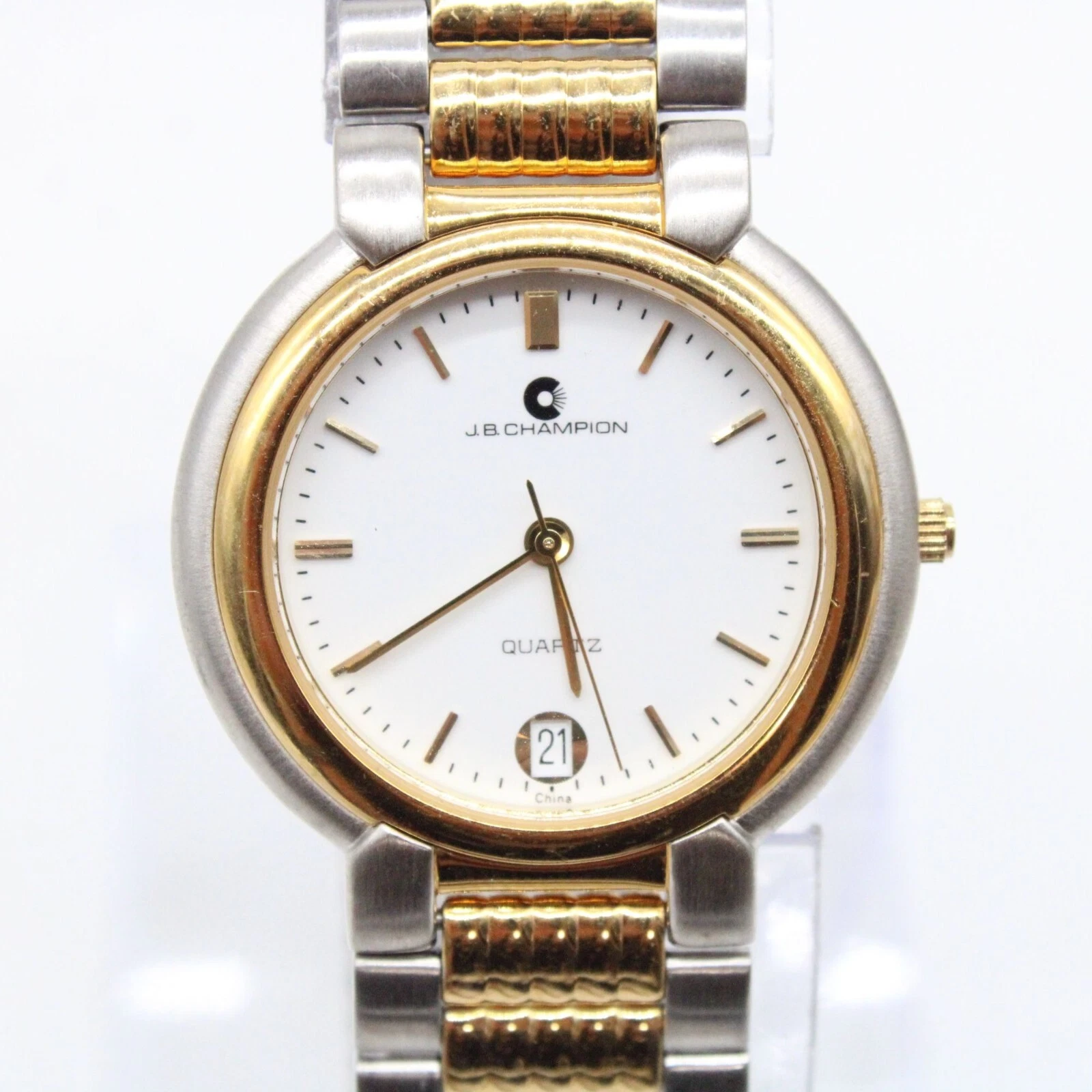 J.B Champion Watch Mens Mult-Tone Stainless Steel Quartz Classic White Dial