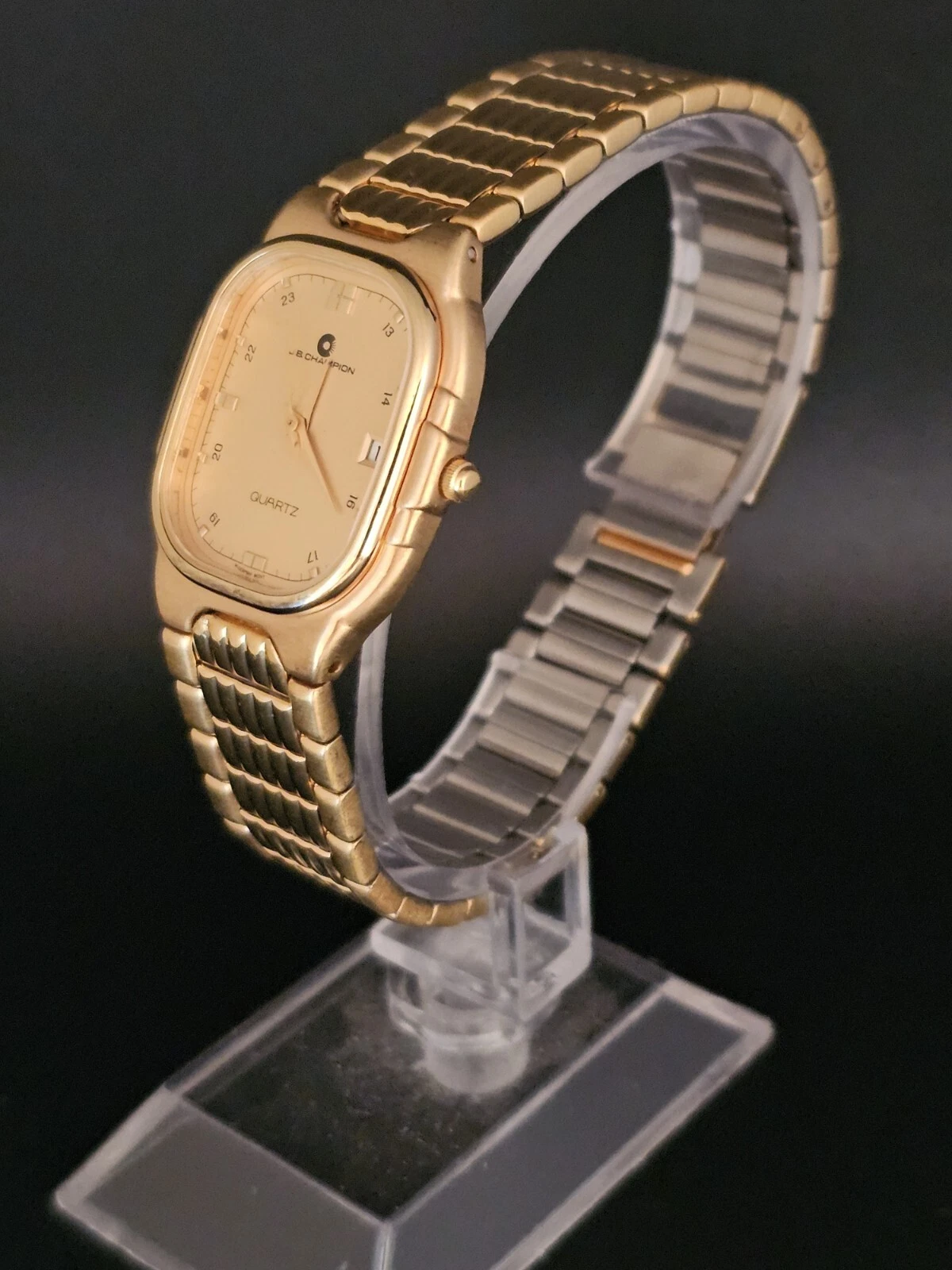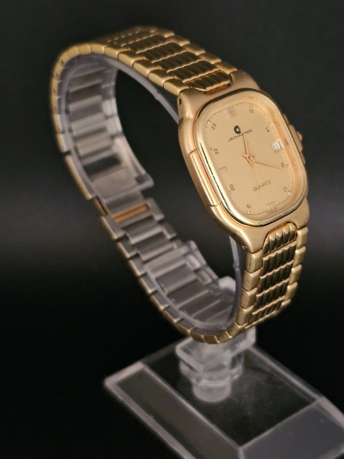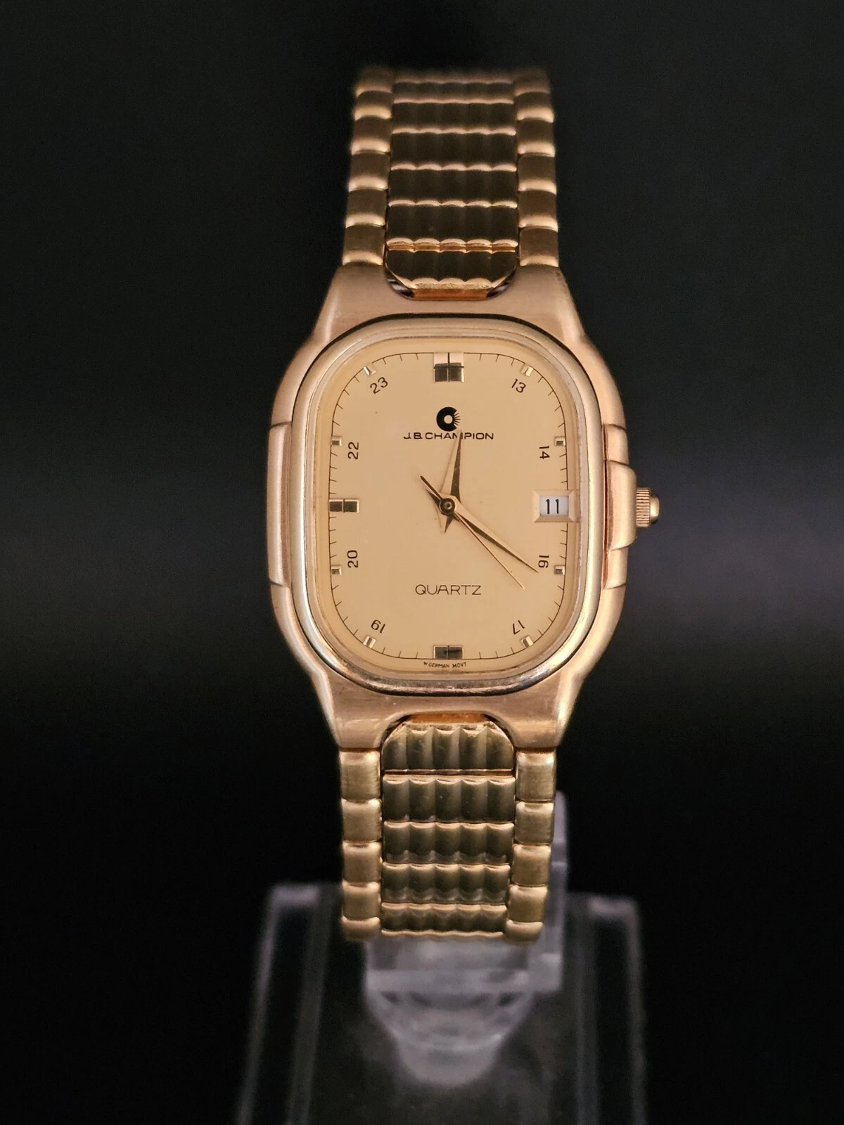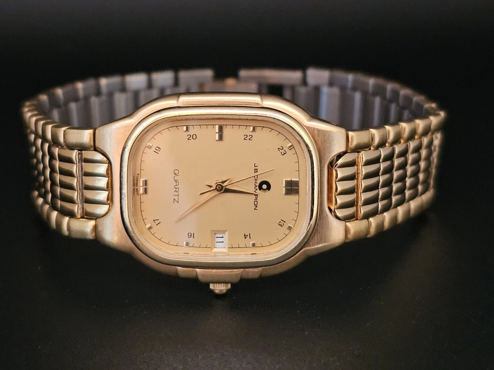 Vintage 90s JB. Champion Mens Classic Goldtone Date Watch Stainless Steel Band