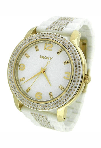 NEW DKNY CRYSTAL GOLD TONE PLASTIC LADIES WATCH NY8528