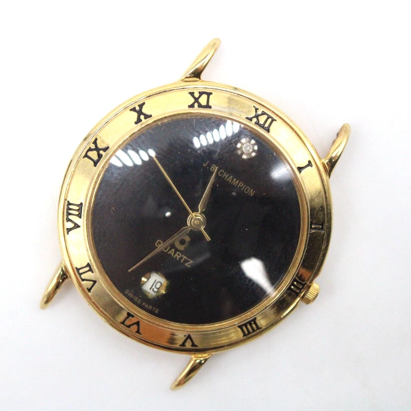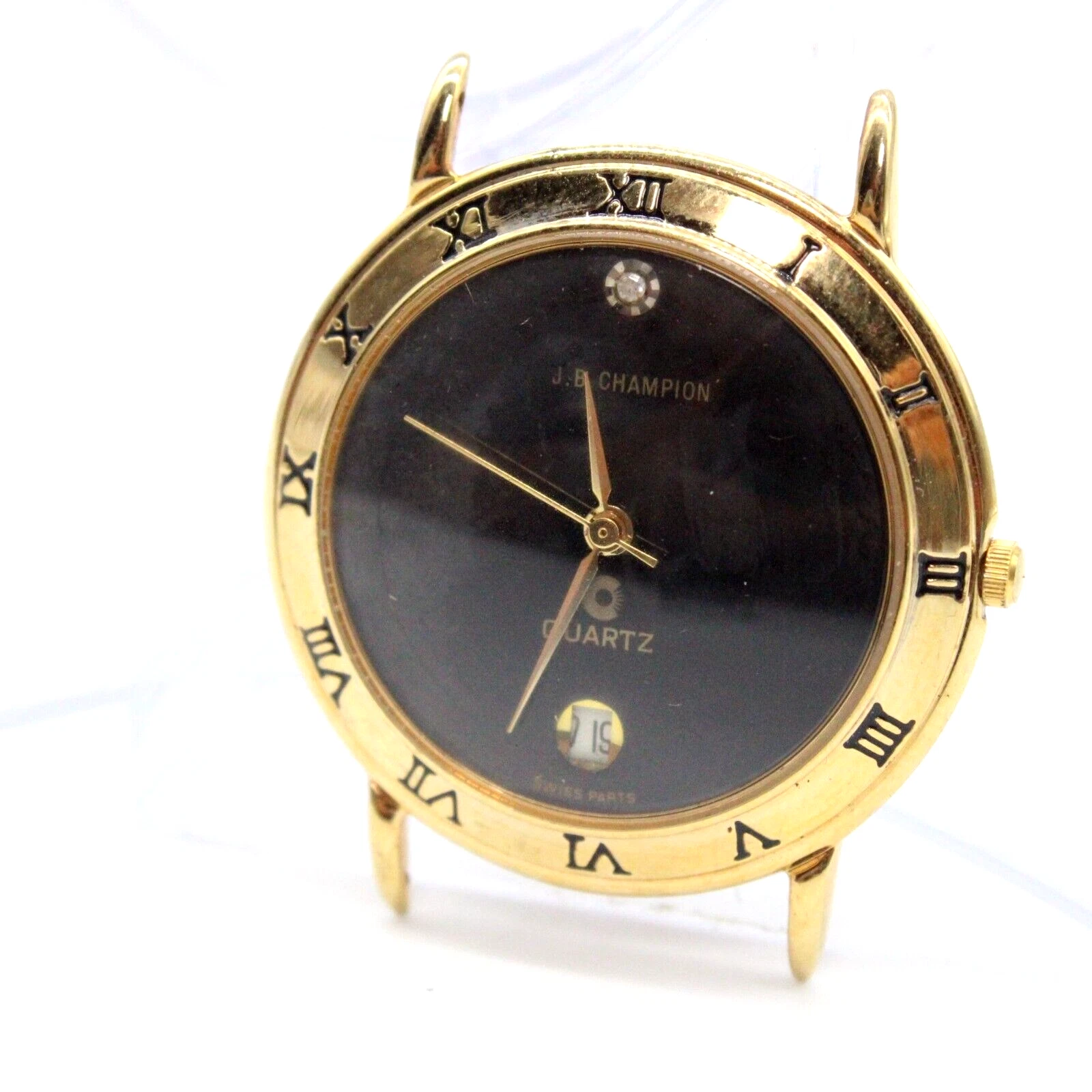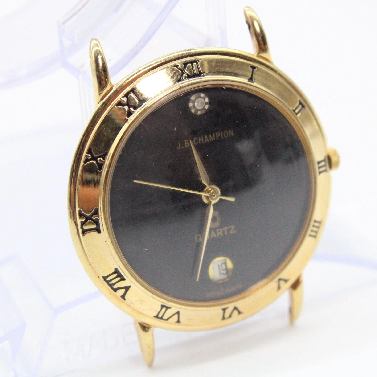 Vintage J.B Champion Watch Unisex Gold Tone Stainless Steel Classic Black Dial