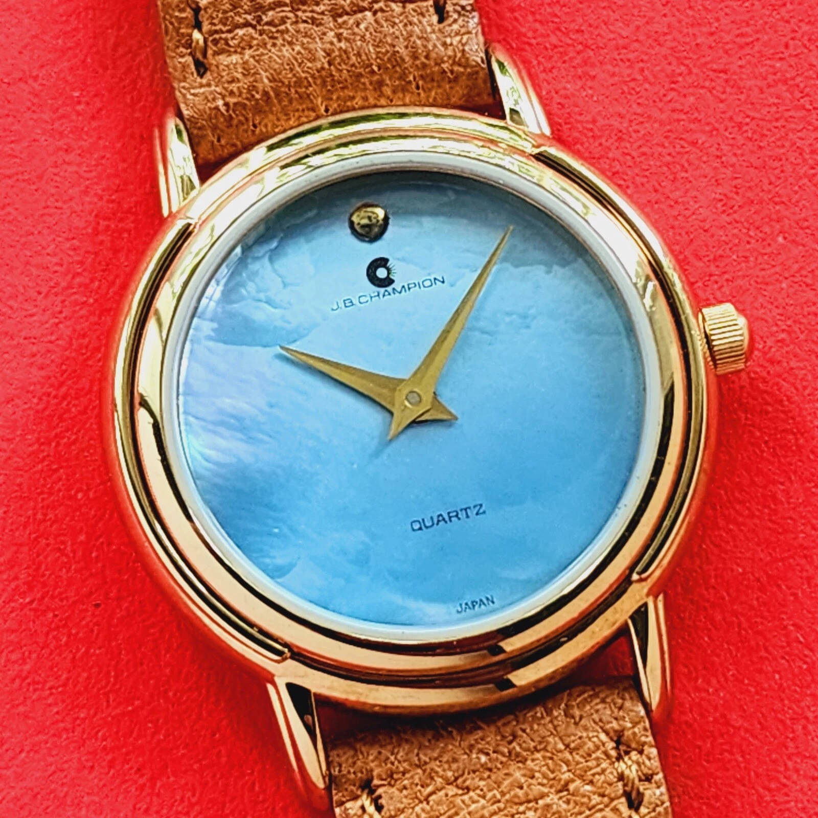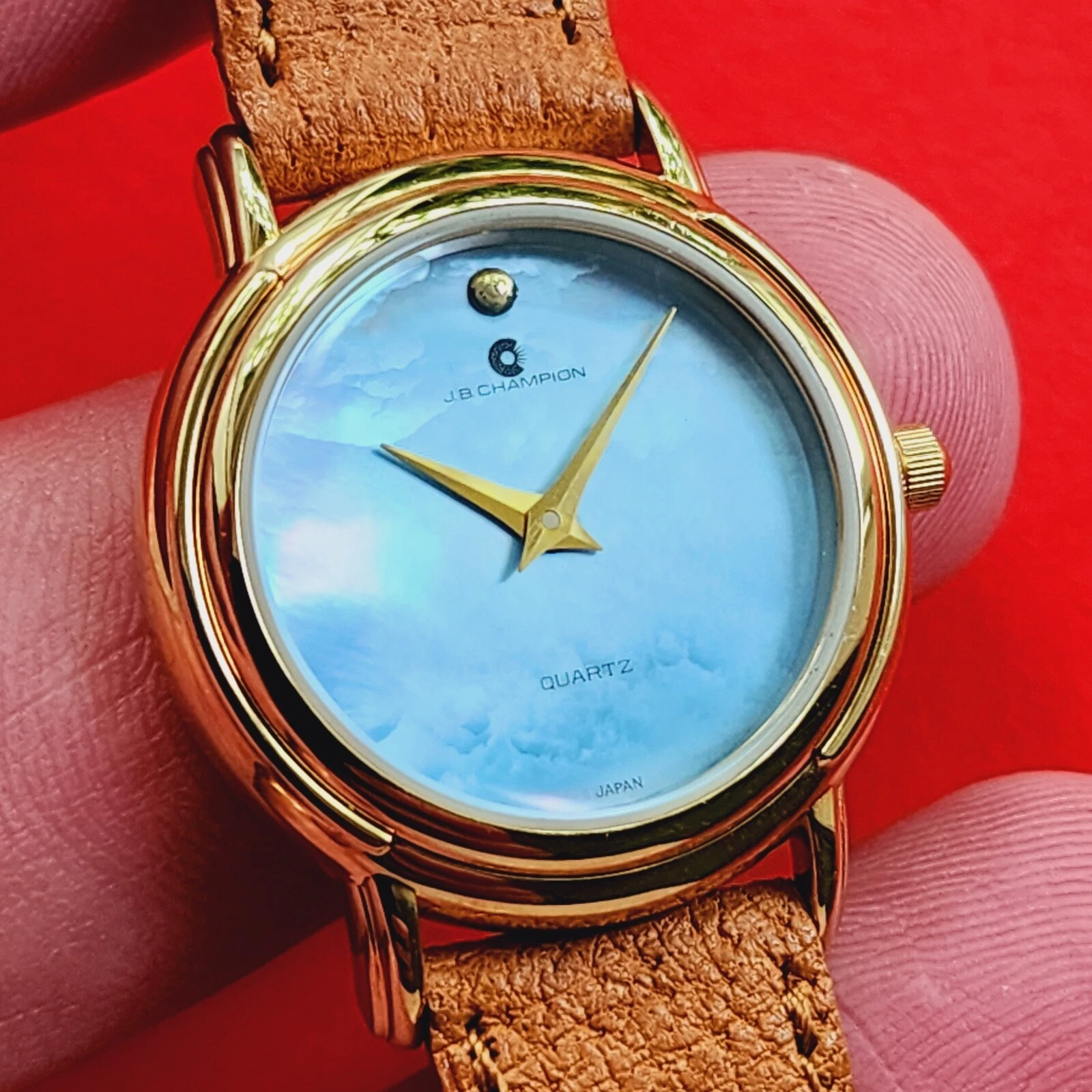 JB Champion Mother Of Pearl Ladies Watch Leather Band Vintage MOP Rare