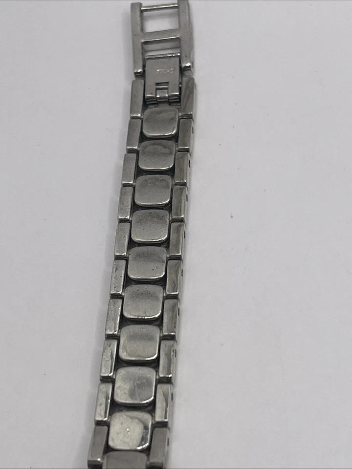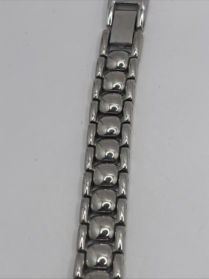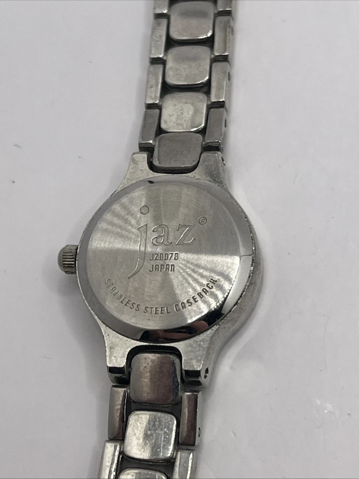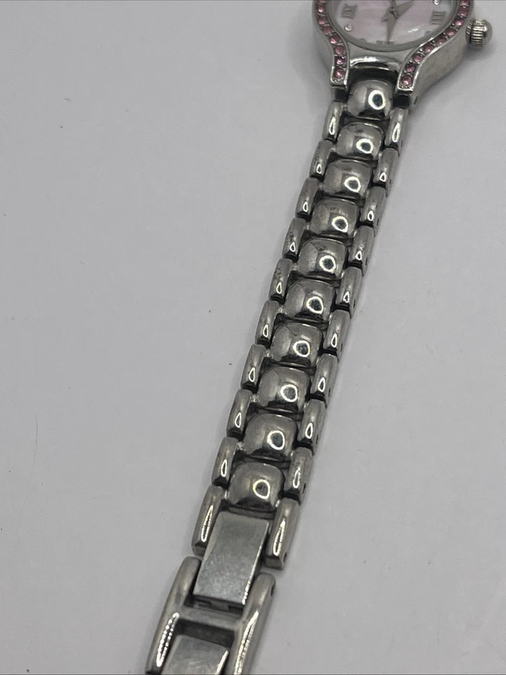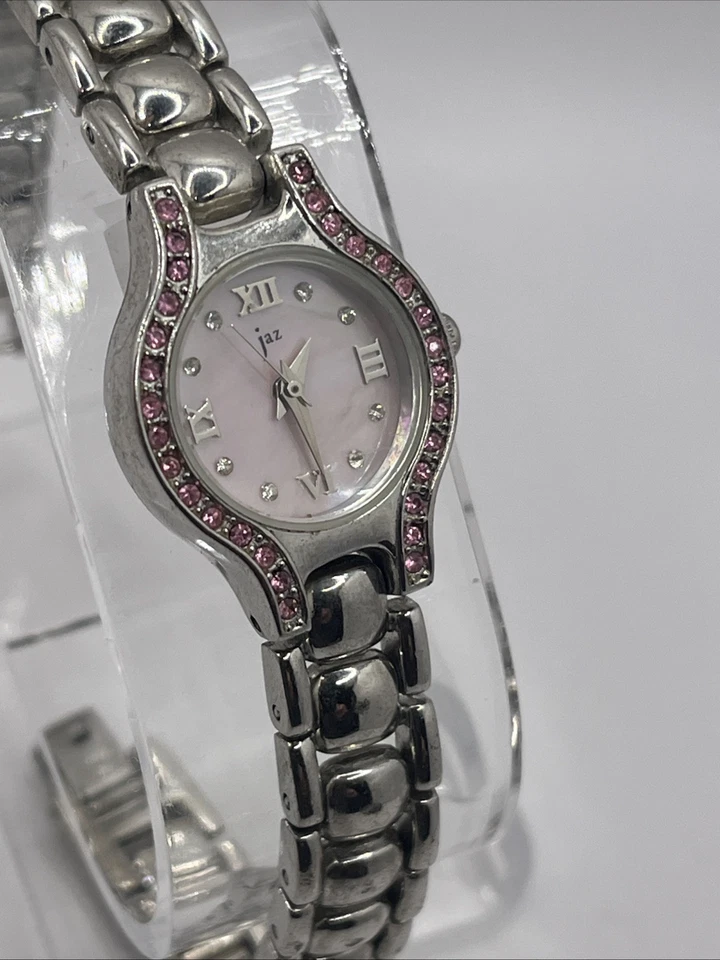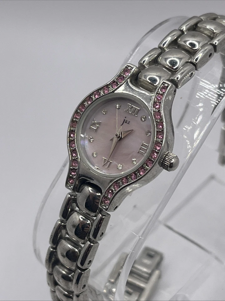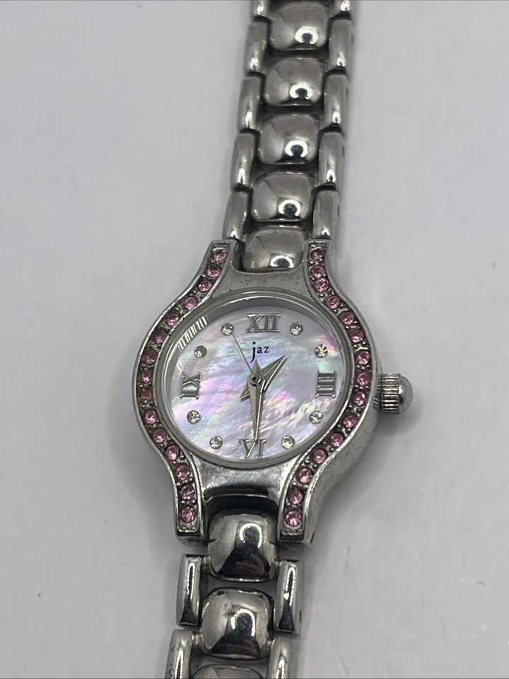 Jaz Women's Quartz Watch Silver 7.75" Band Pink MOP Dial- New Battery