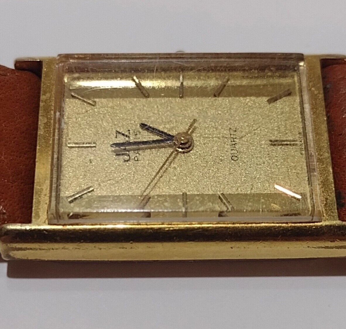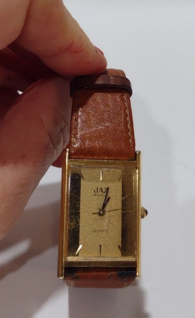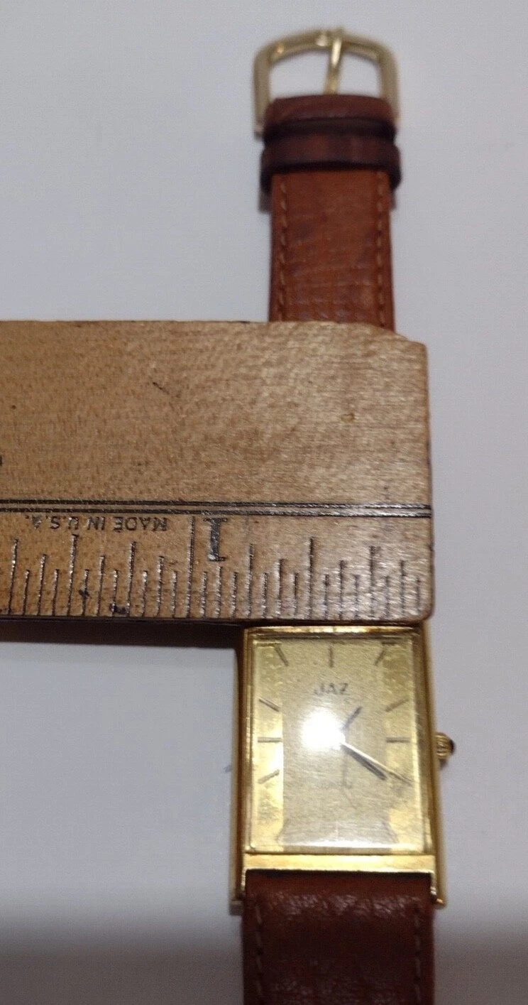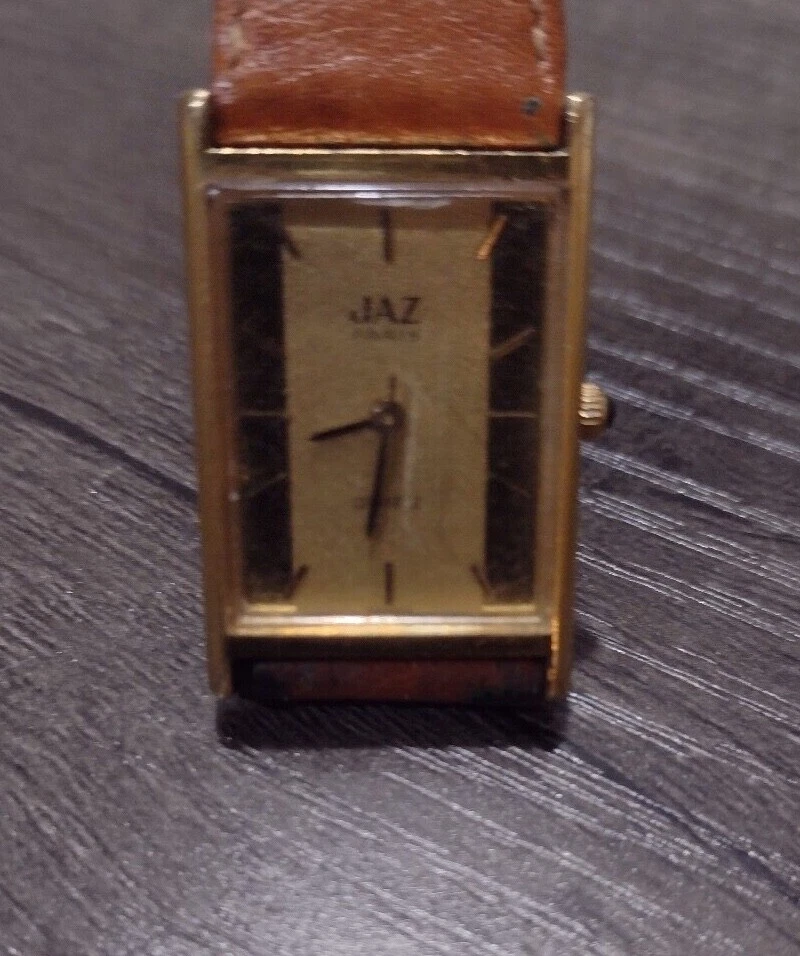VINTAGE "JAZ PARIS" ELEGANT MENS/UNISEX  GOLD FACE BROWN LEATHER STRAP NEW BTRY