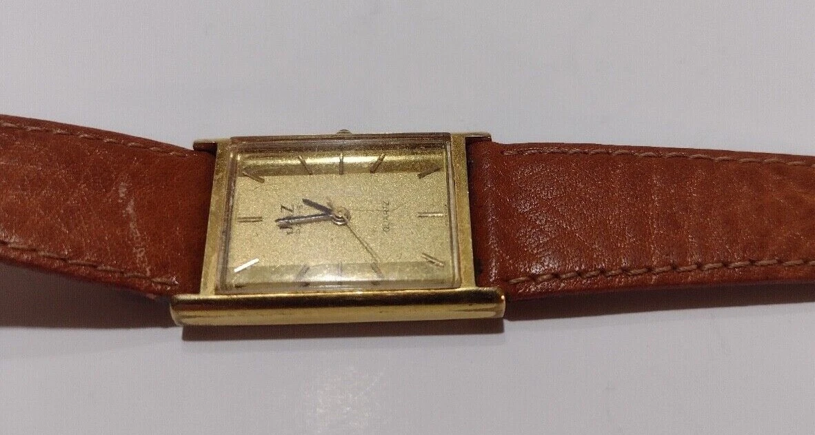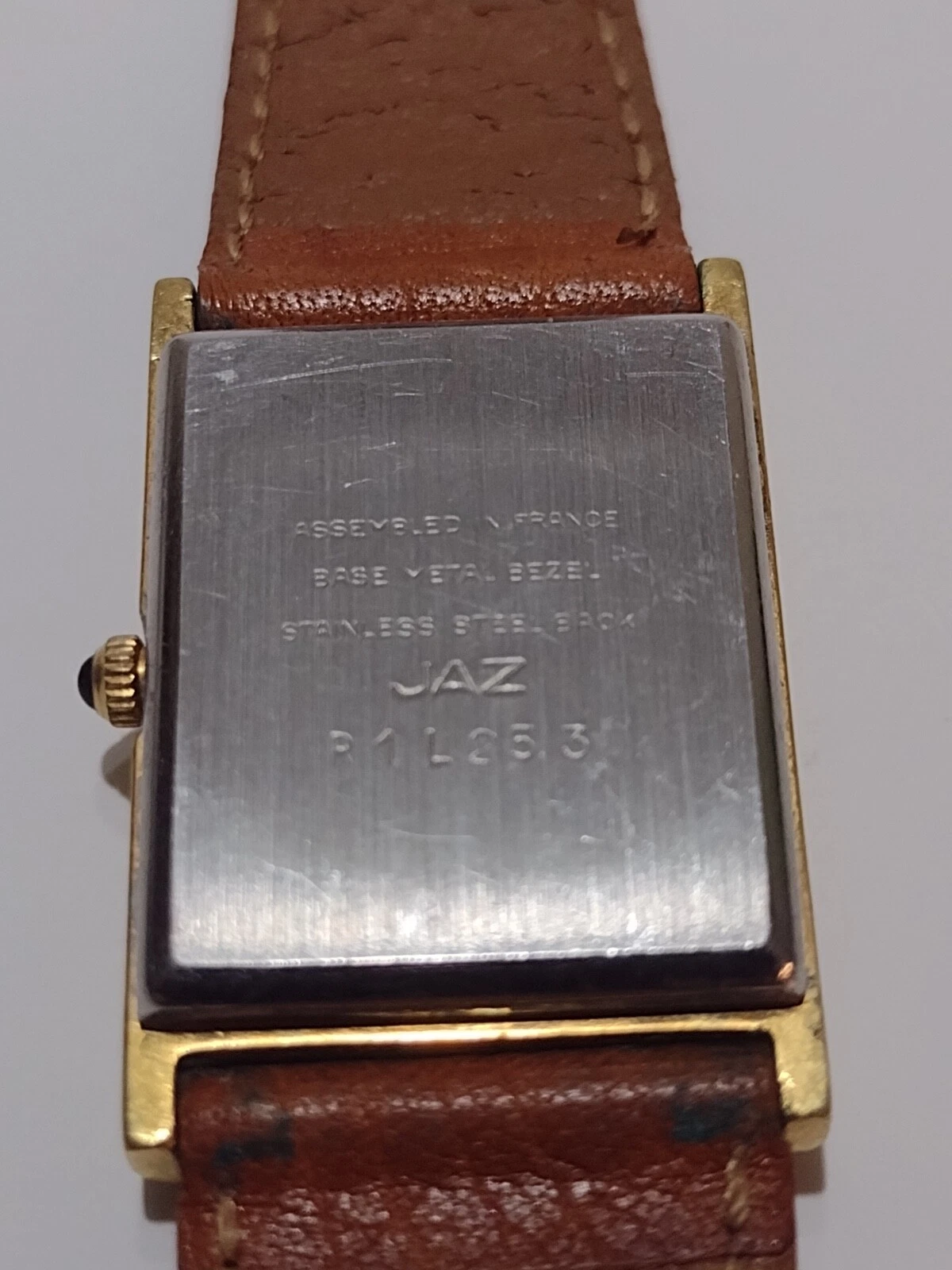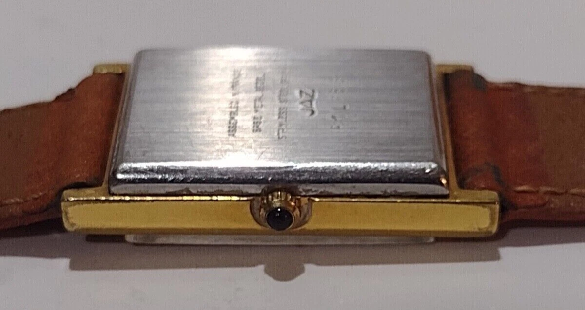 VINTAGE "JAZ PARIS" ELEGANT MENS/UNISEX  GOLD FACE BROWN LEATHER STRAP NEW BTRY