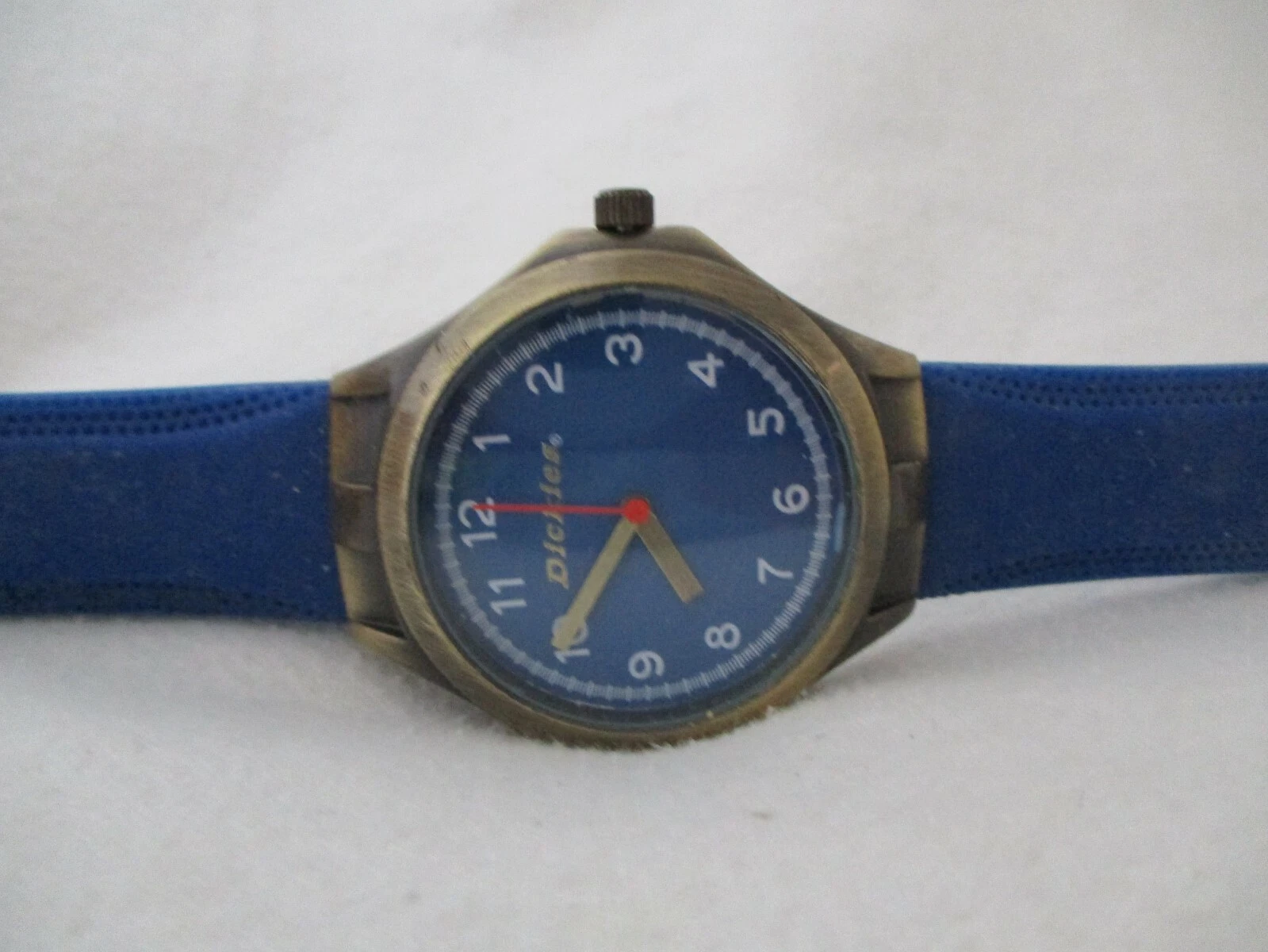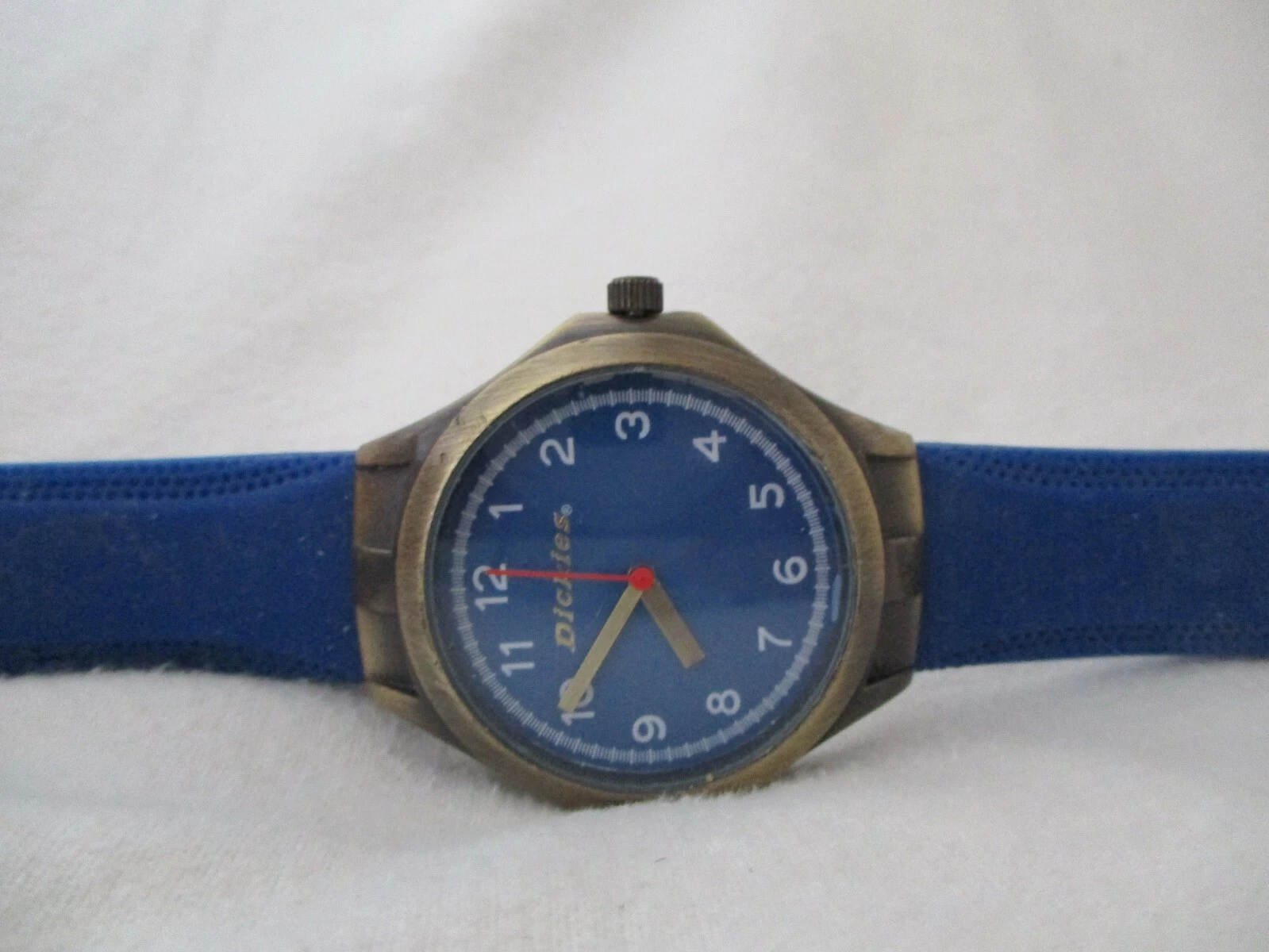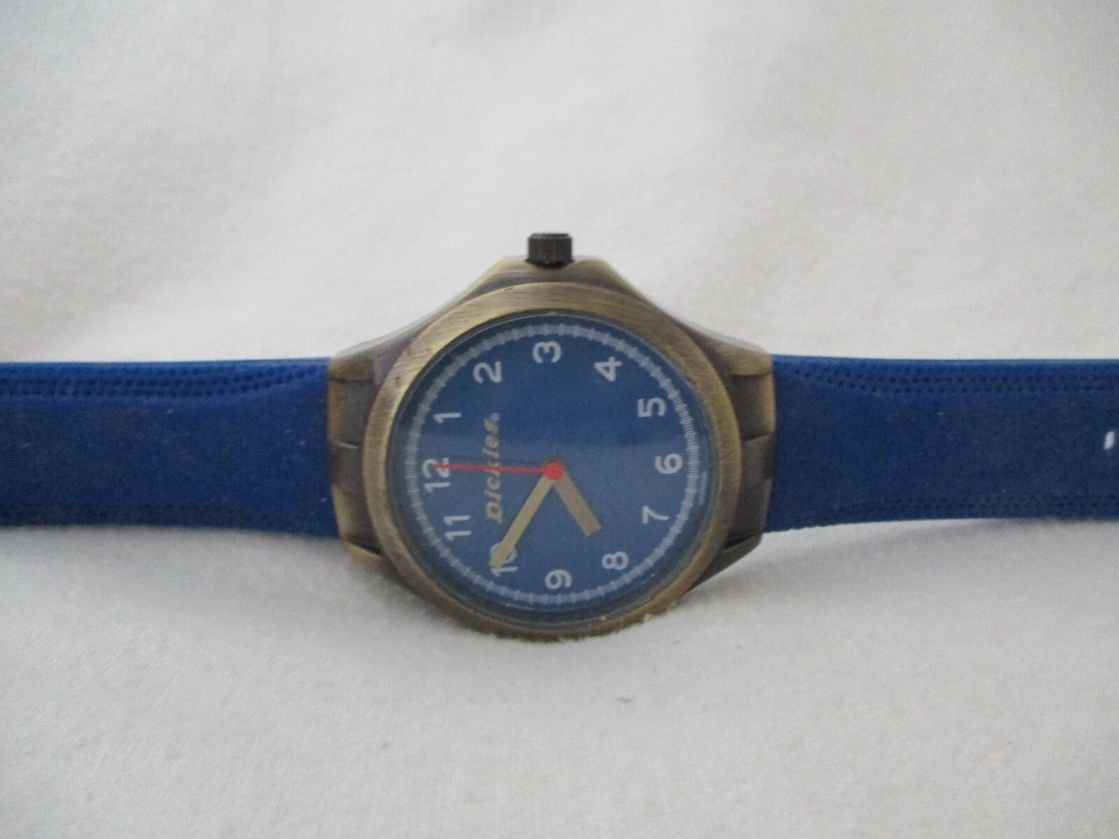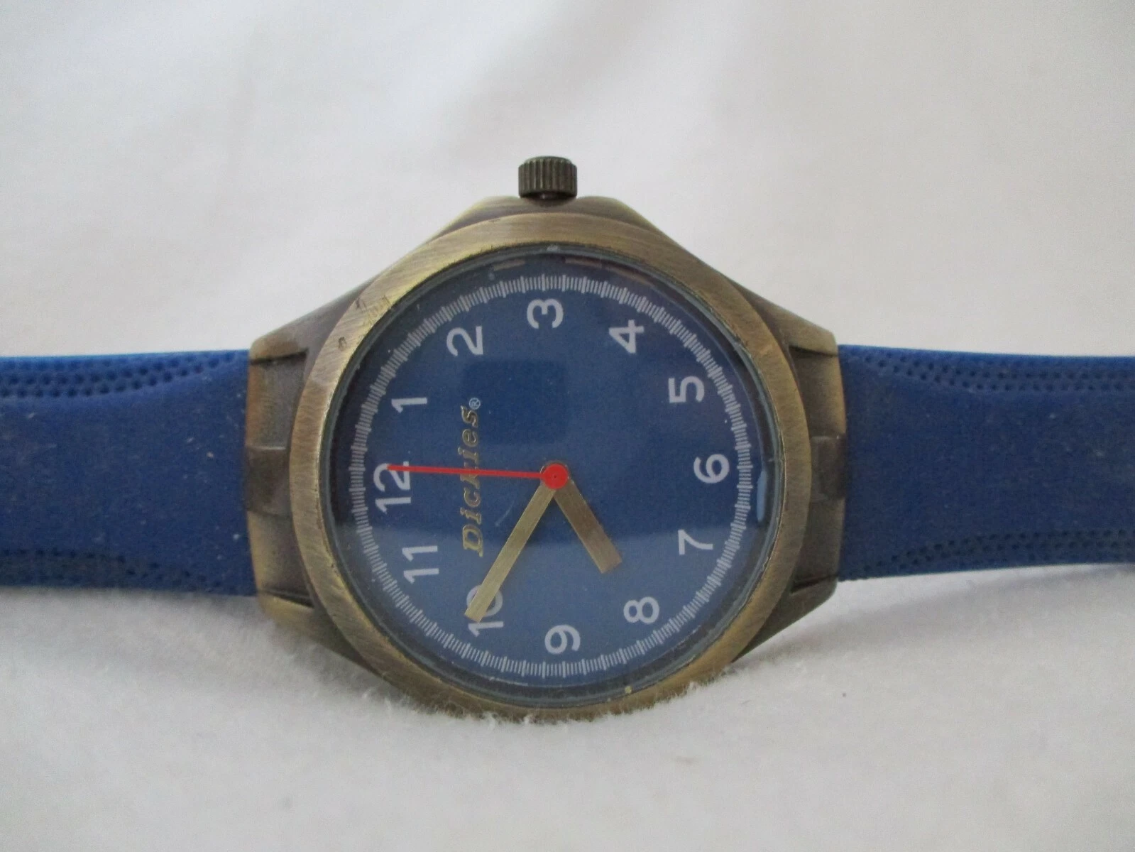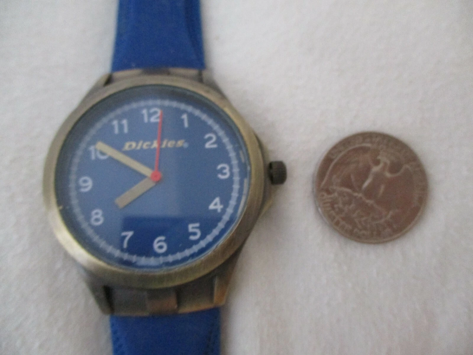 Dickies Watch Blue Buckle Band Silver Toned Round Face