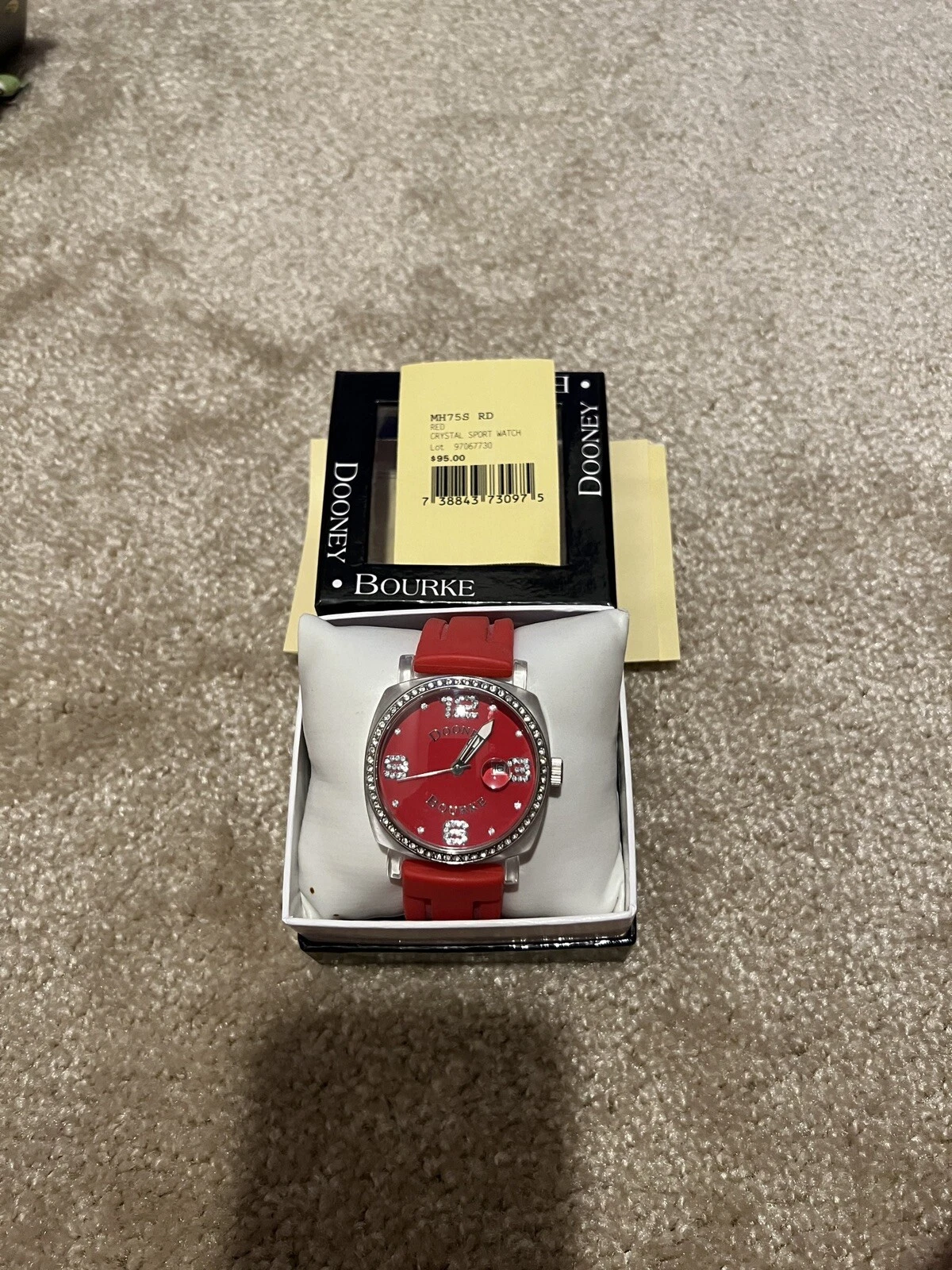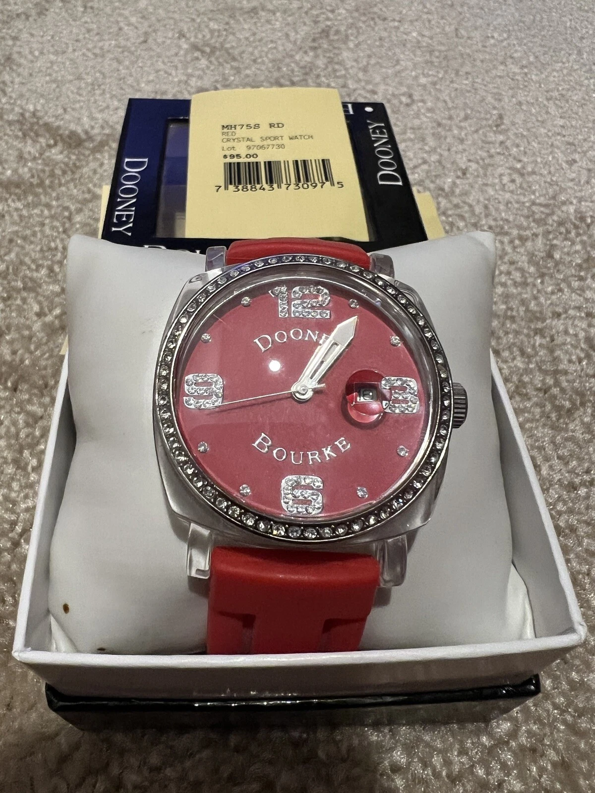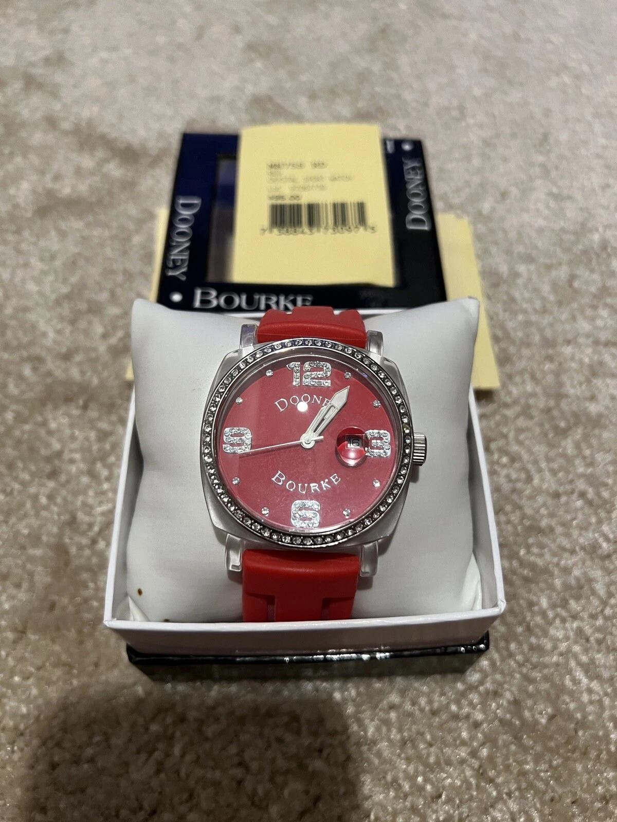 Dooney & Bourke Womens Red Crystal Sport Silicone Analog Watch