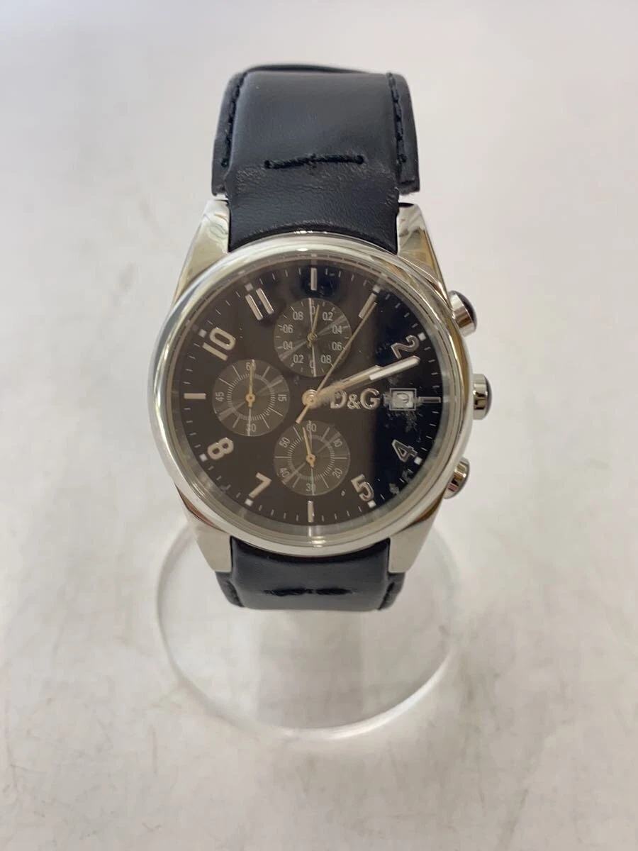 D&G Sandpiper Chronograph Quartz Analog Black Leather Excellent JAPAN
