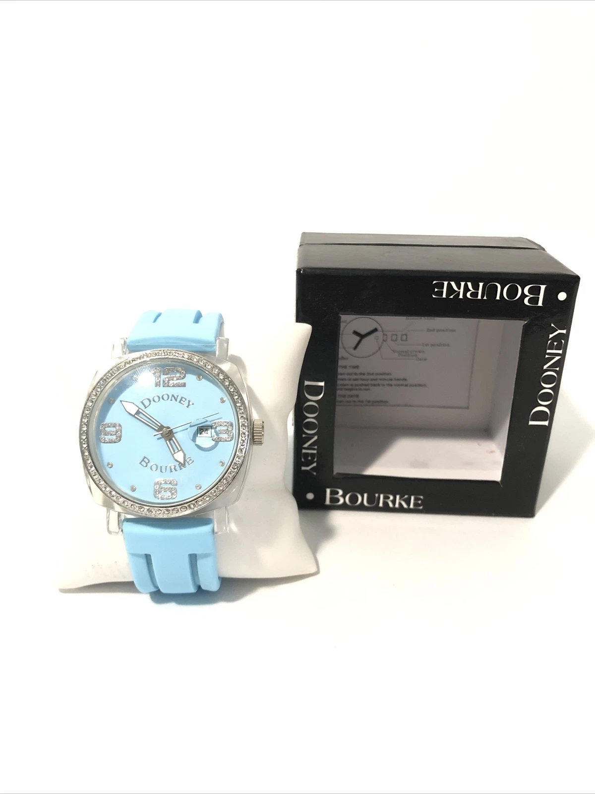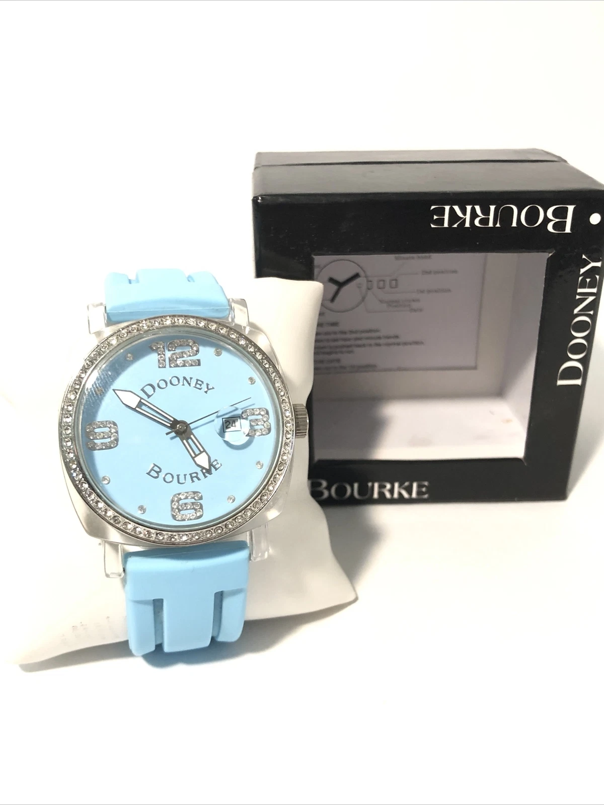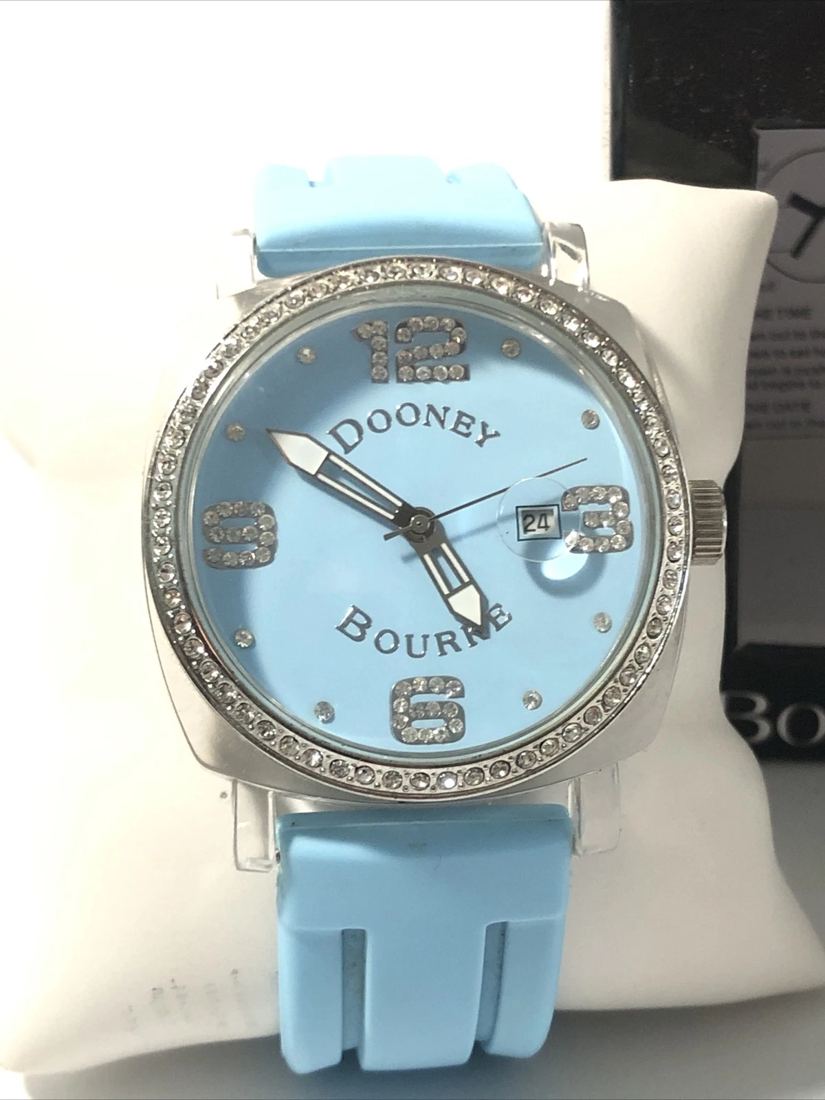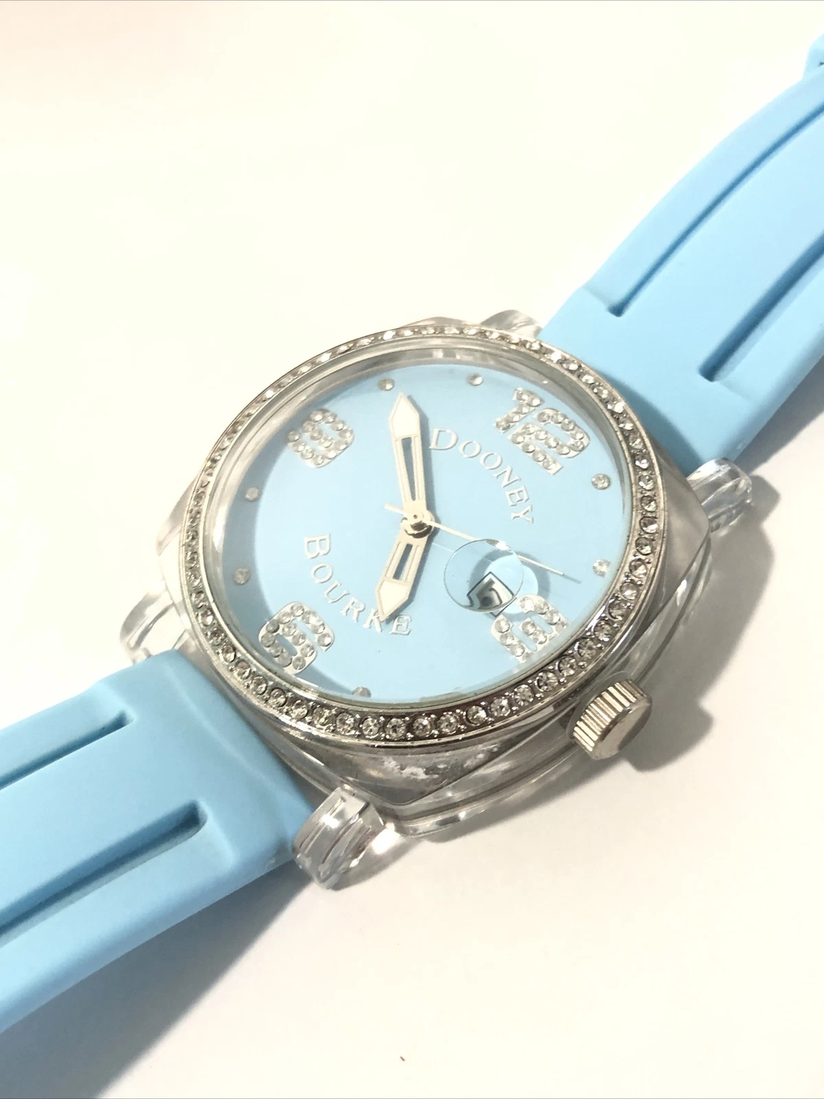 Dooney & Bourke Womens Wrist Watch-Teal Blue Rubber Band, Crystal Bezel-New Batt