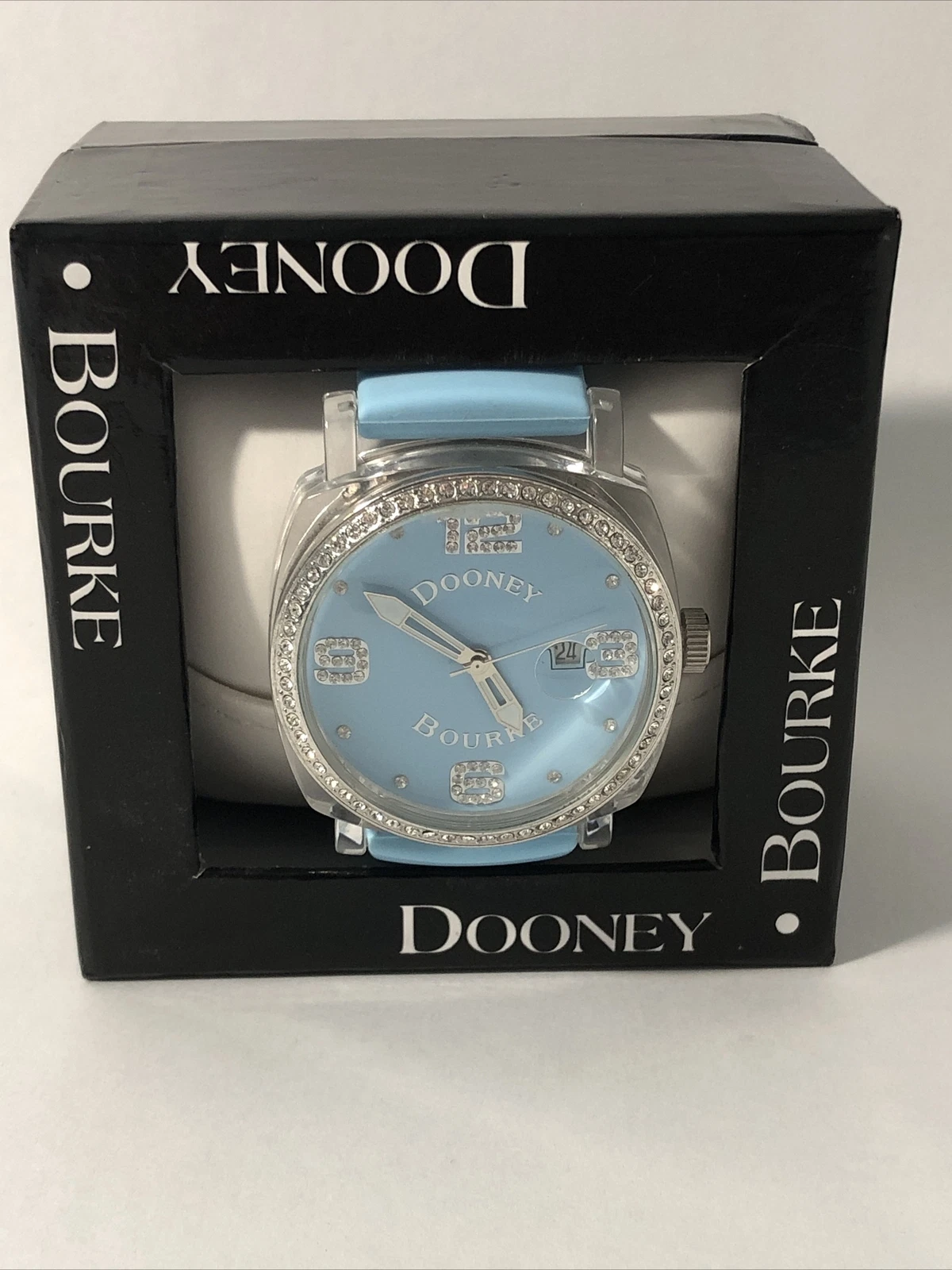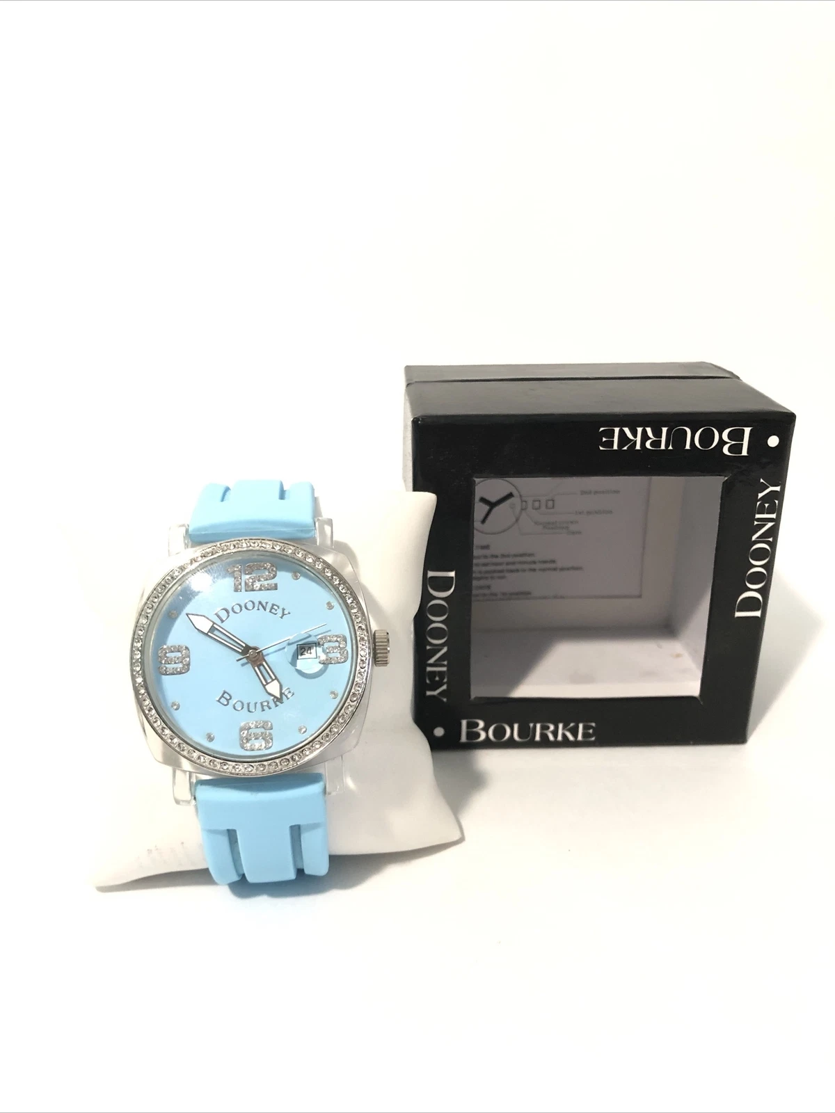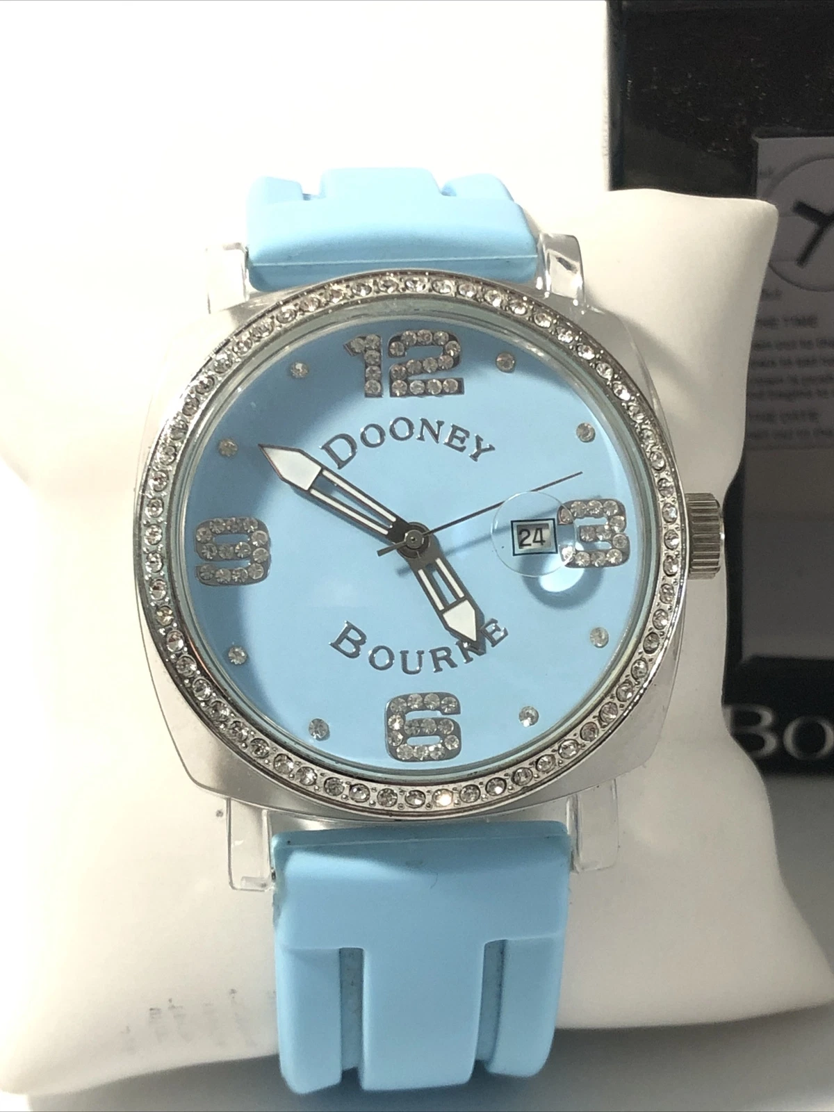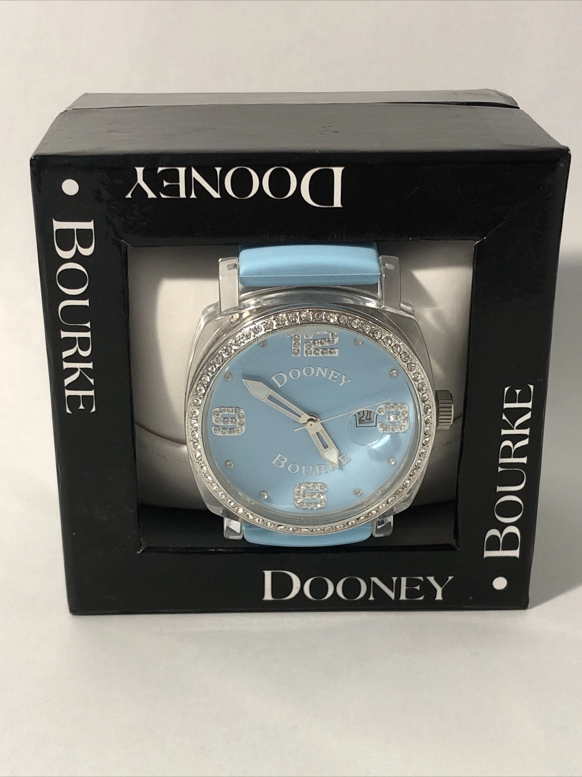 Dooney & Bourke Womens Wrist Watch-Teal Blue Rubber Band, Crystal Bezel-New Batt