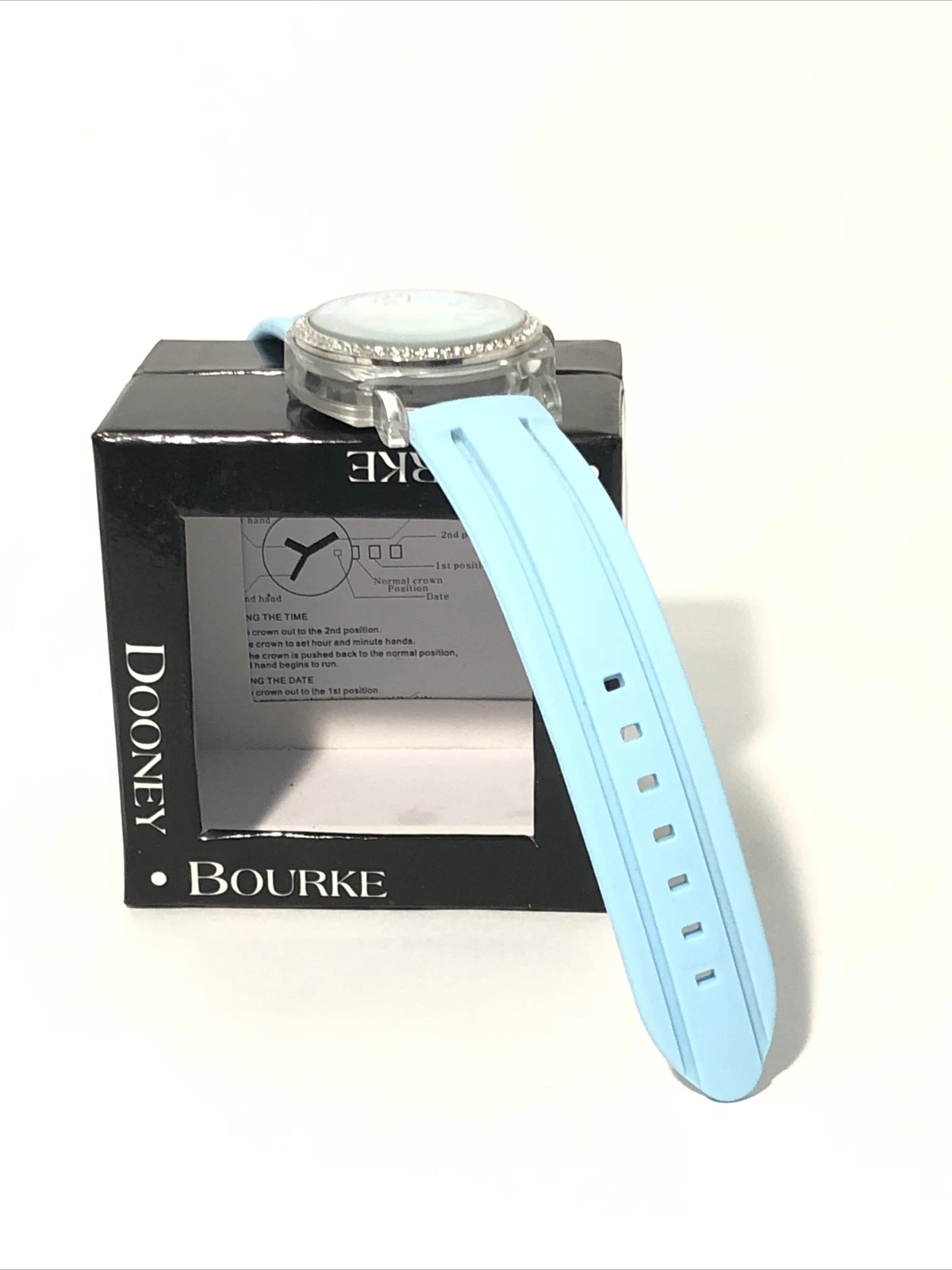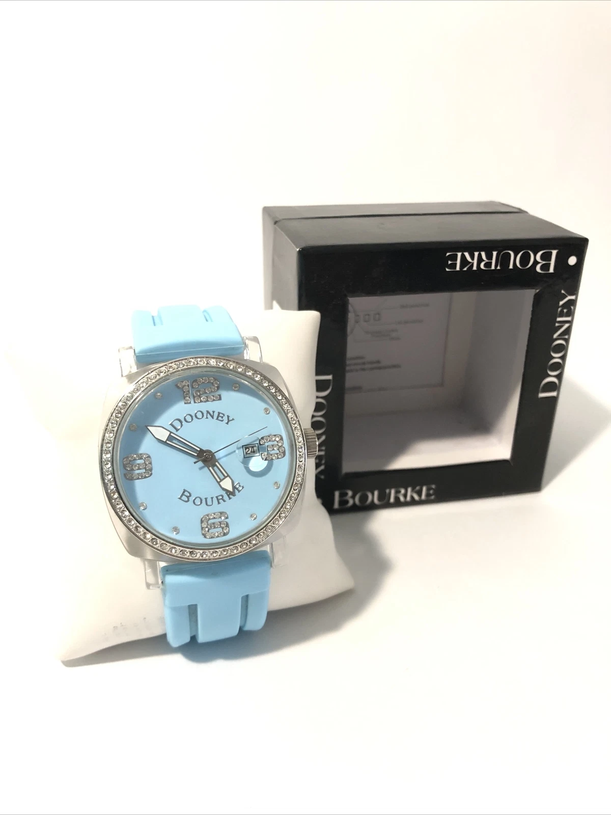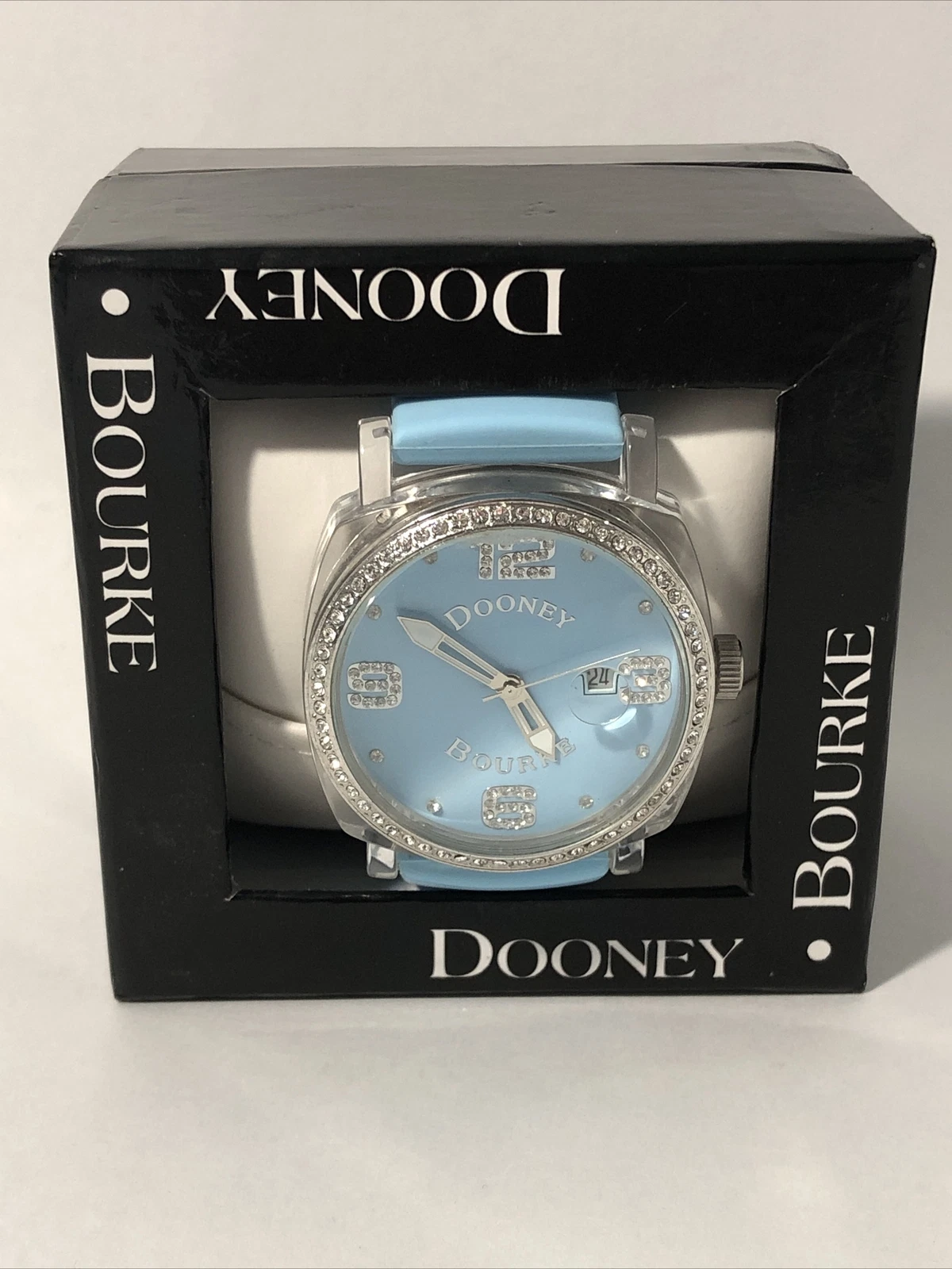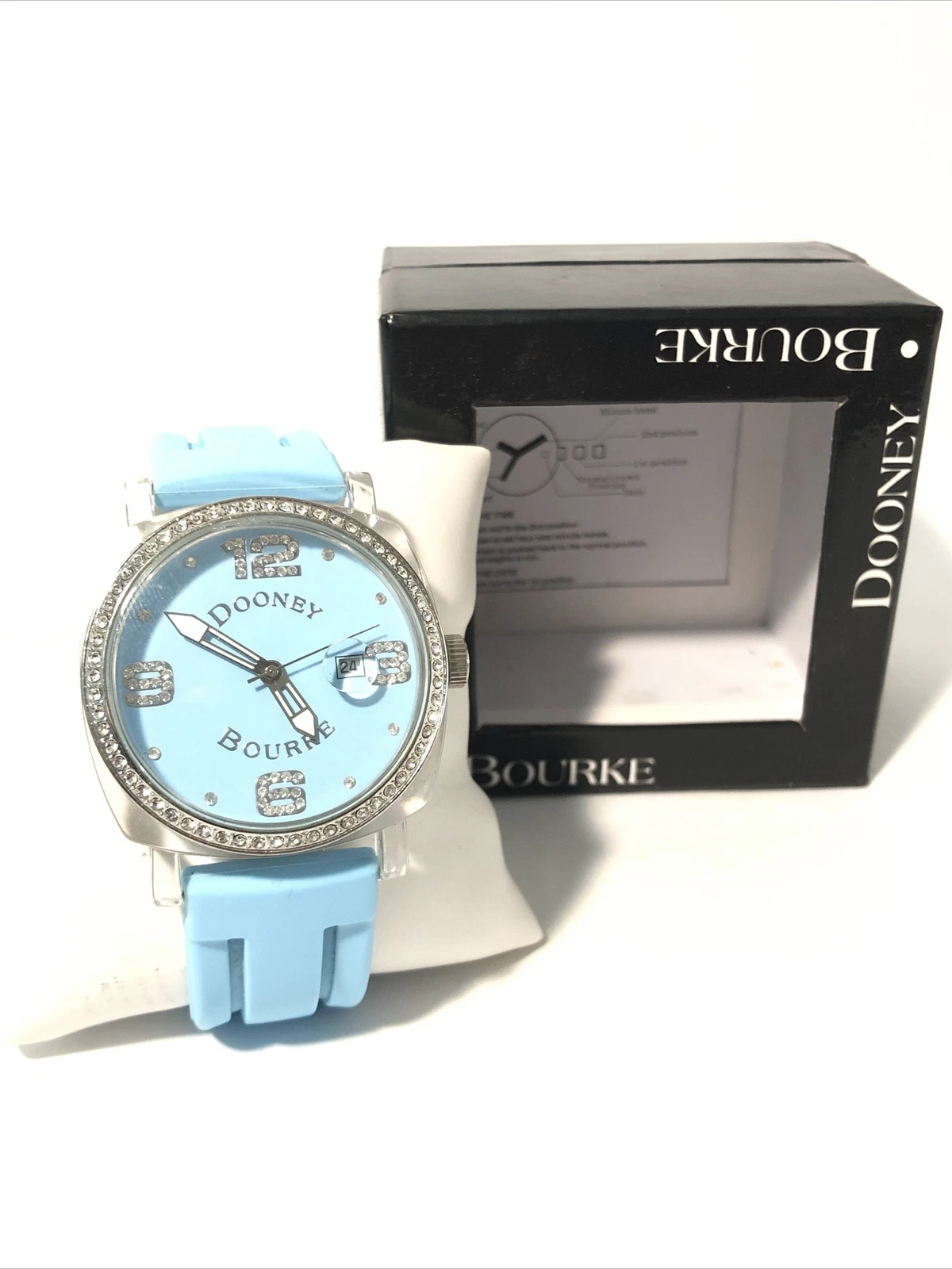 Dooney & Bourke Womens Wrist Watch-Teal Blue Rubber Band, Crystal Bezel-New Batt