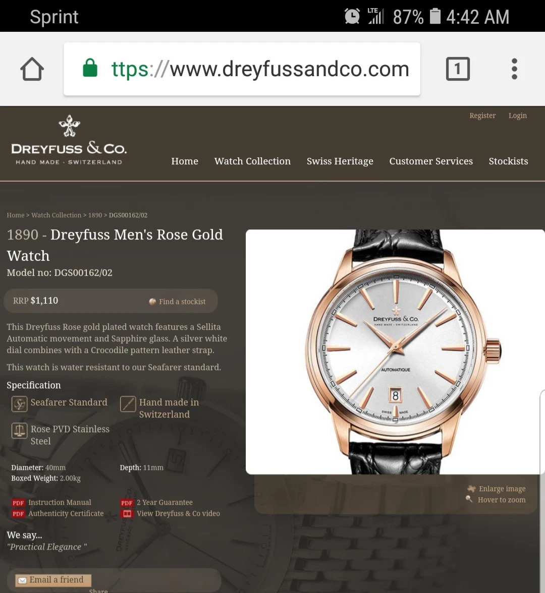Mens Dreyfuss Co. 1890 Rose Gold Plated