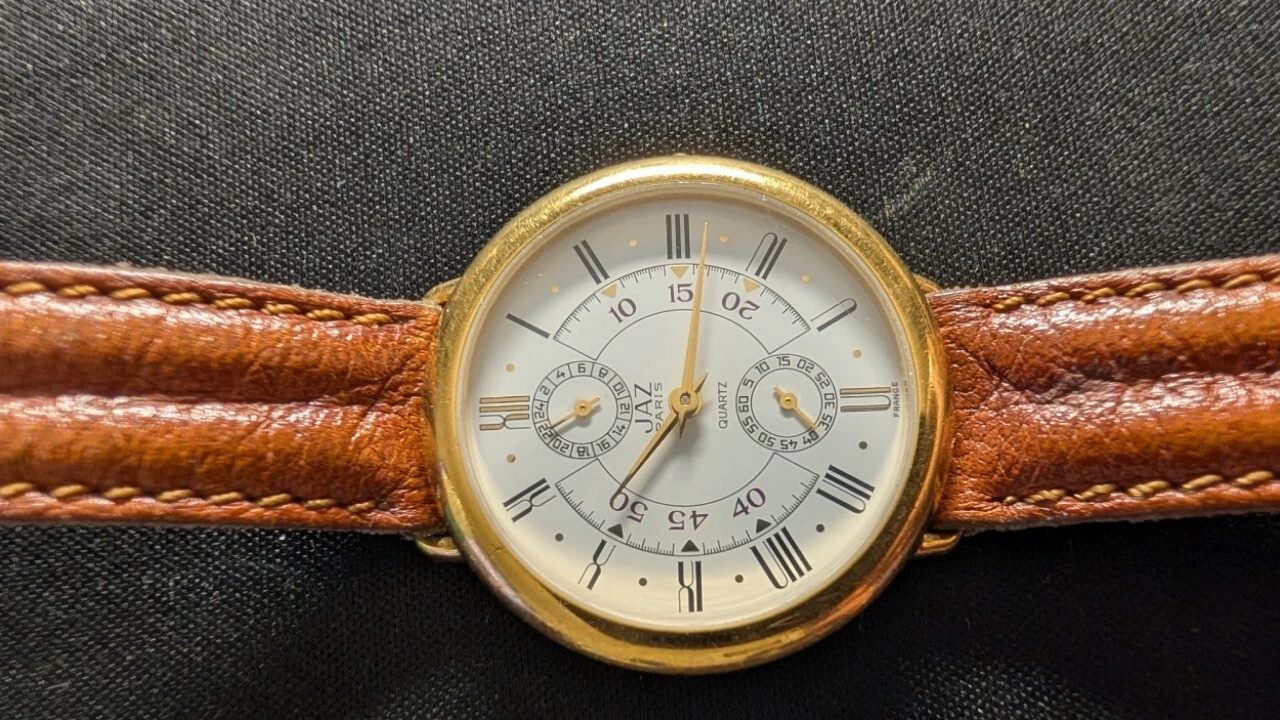 Vintage Jaz Paris Dual Moons Roman Dial,New Crystal & New JB Band.