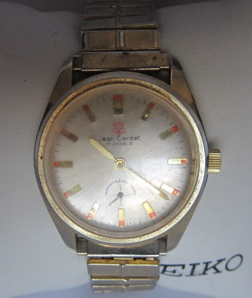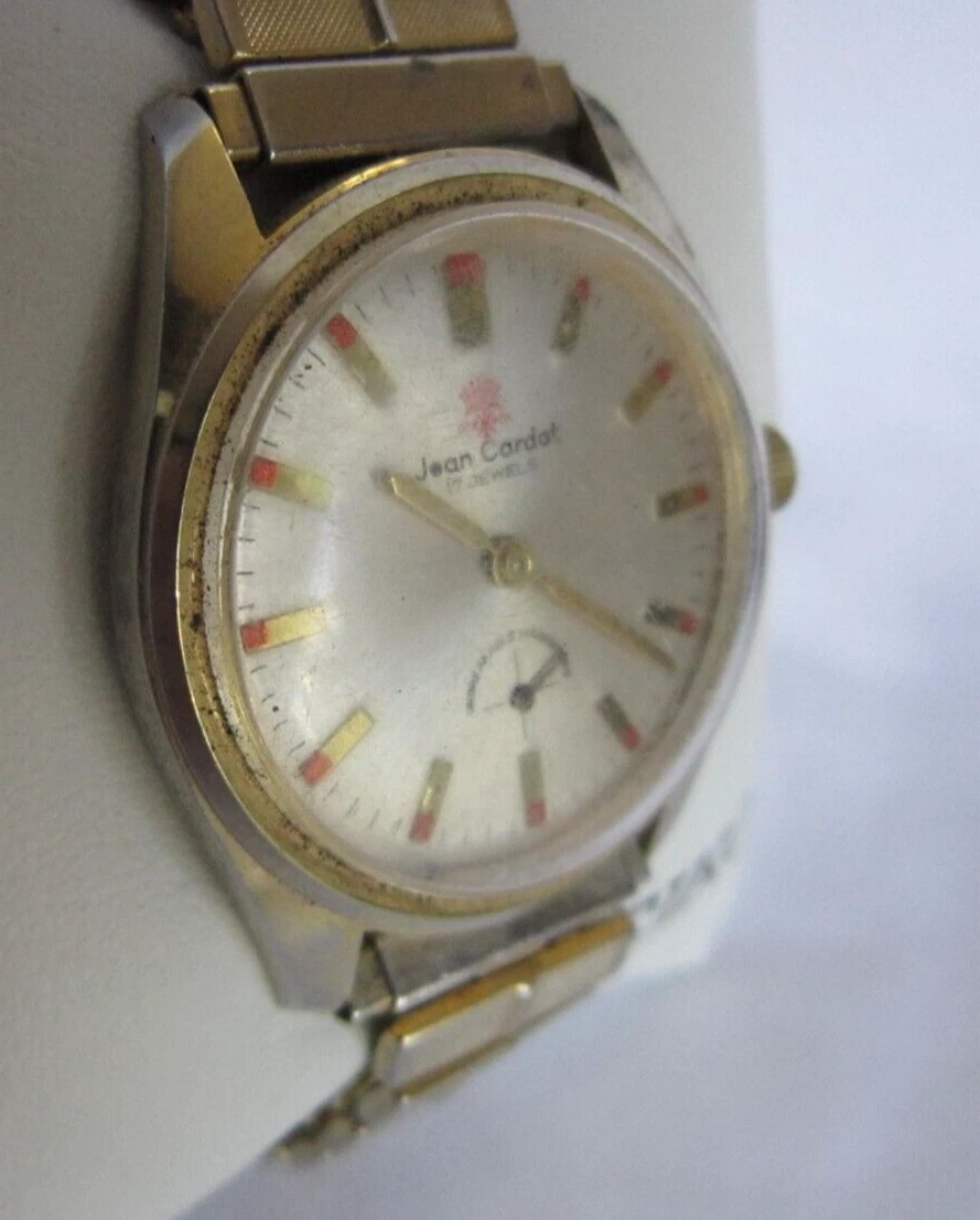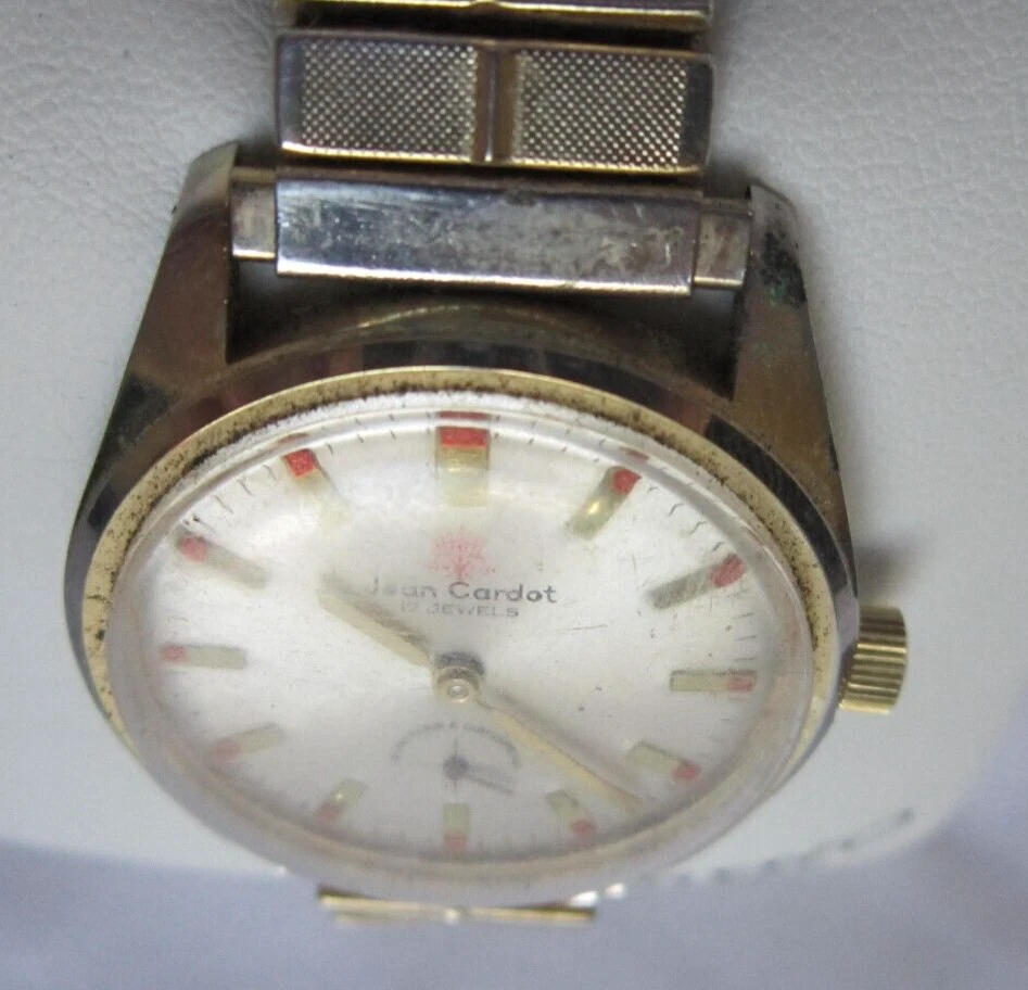 Vintage Jean Cardot Watch Mens Mechanical Wristwatch 17 Jewel Gold Tone Running