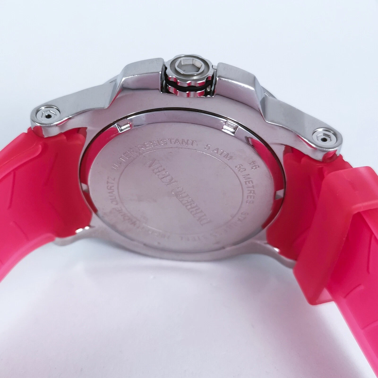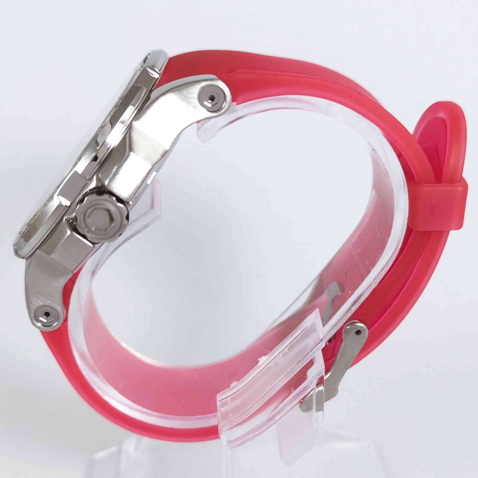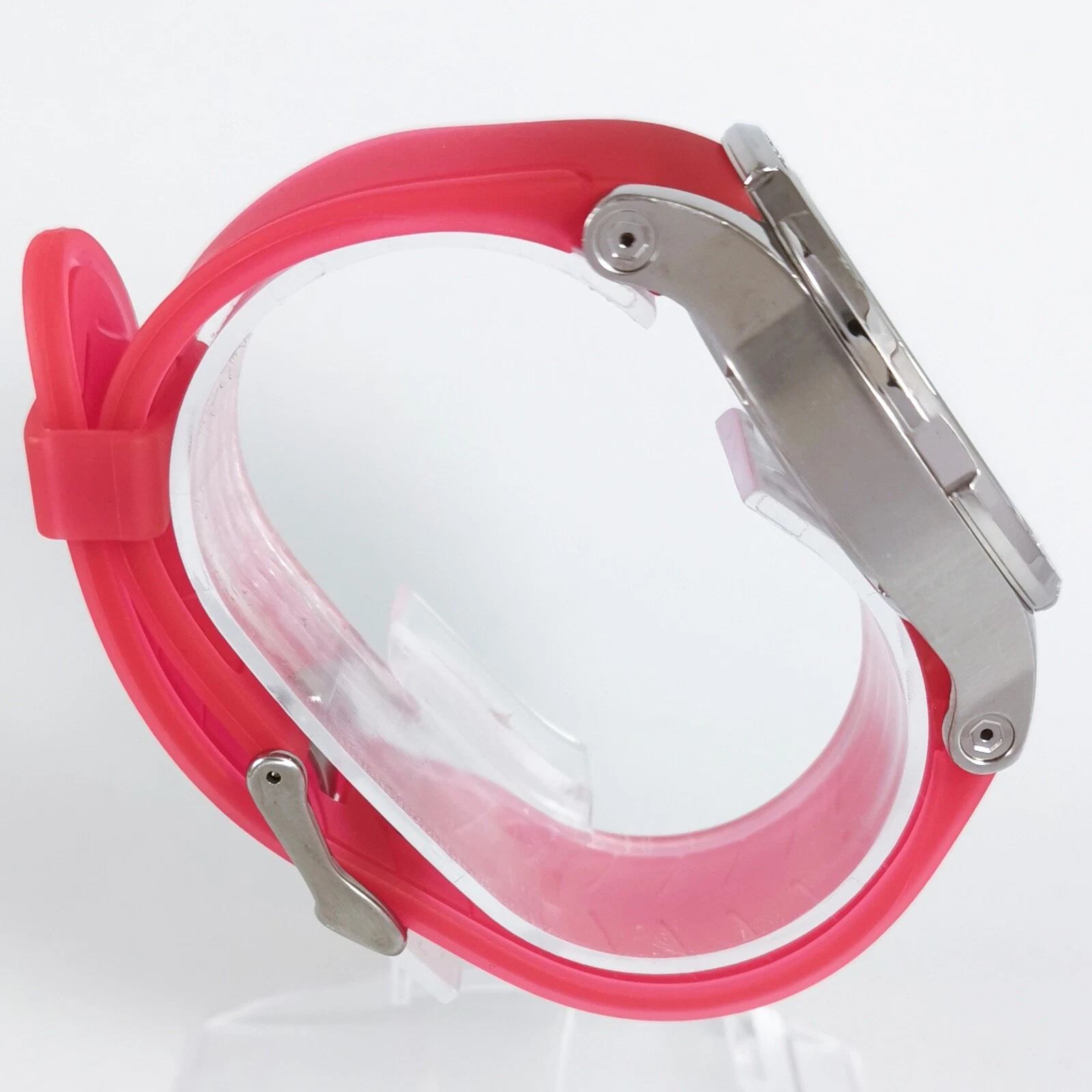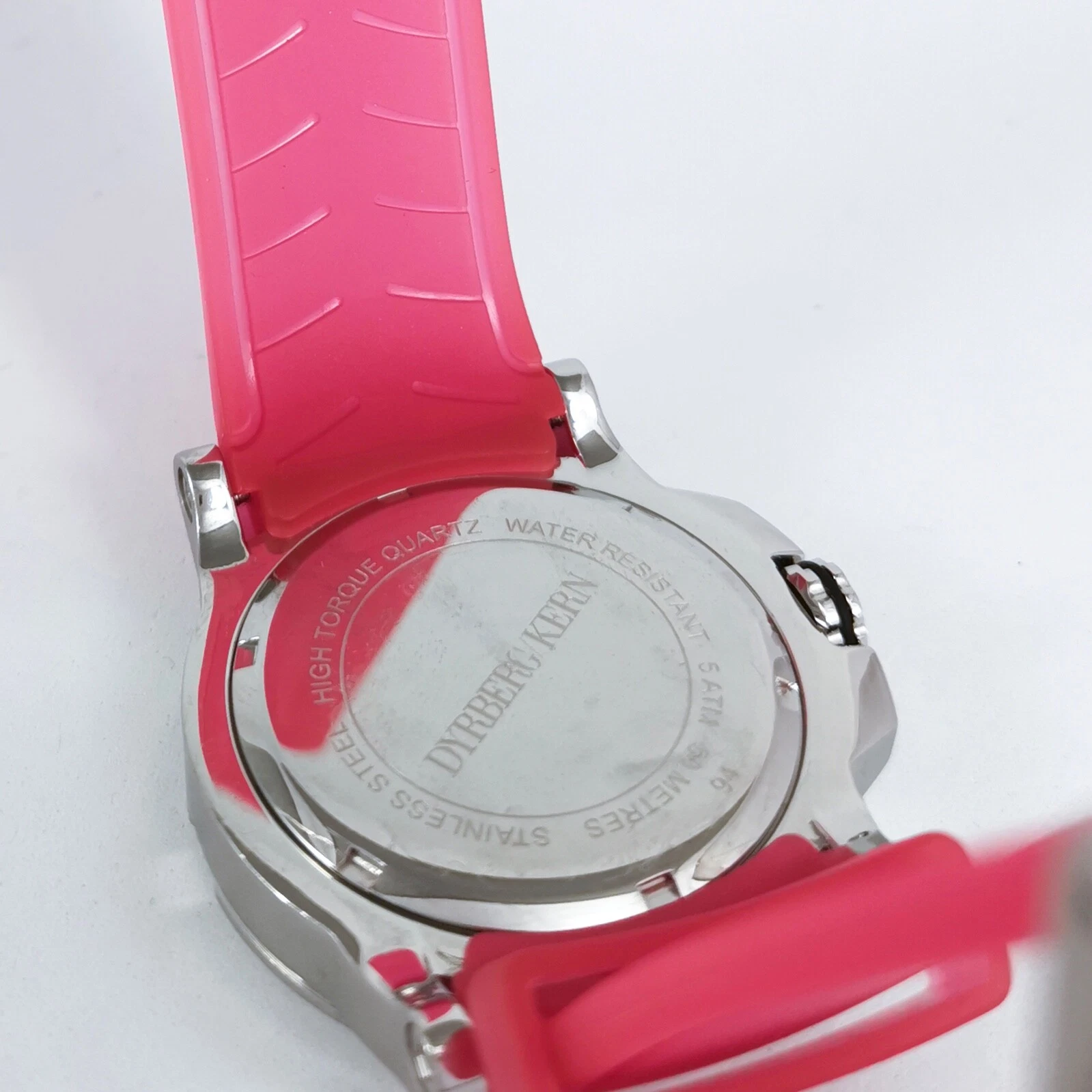 Dyrberg/Kern Silver Pink Rubber Strap Diamonds Quartz Women's Wrist Watch