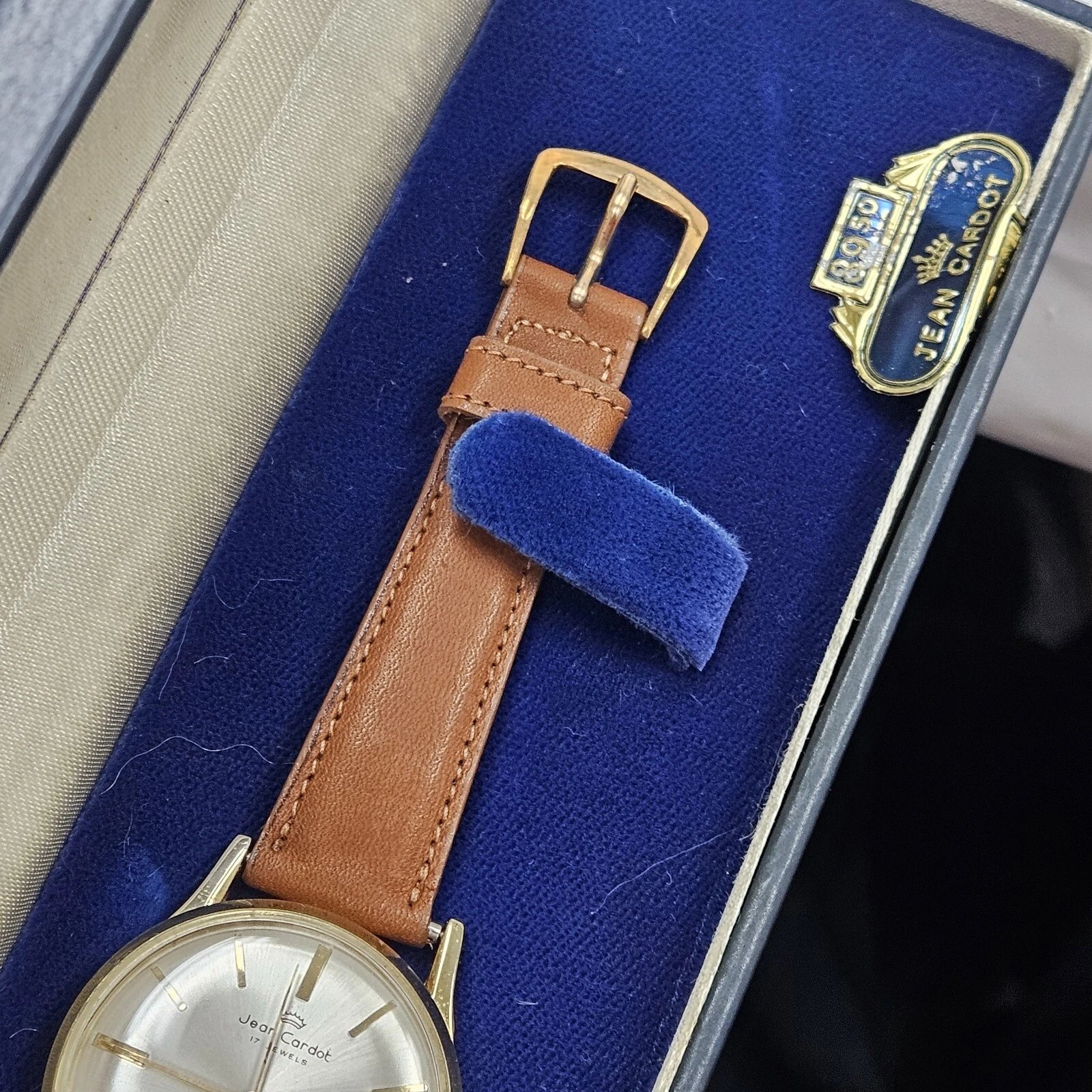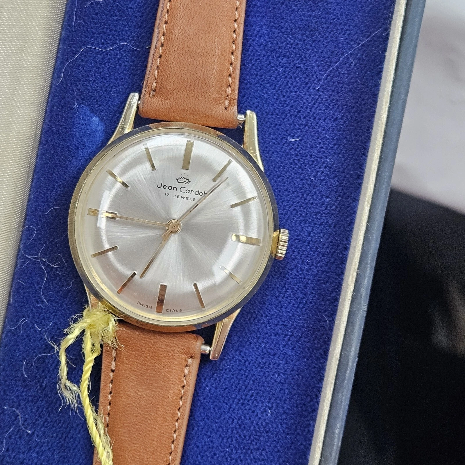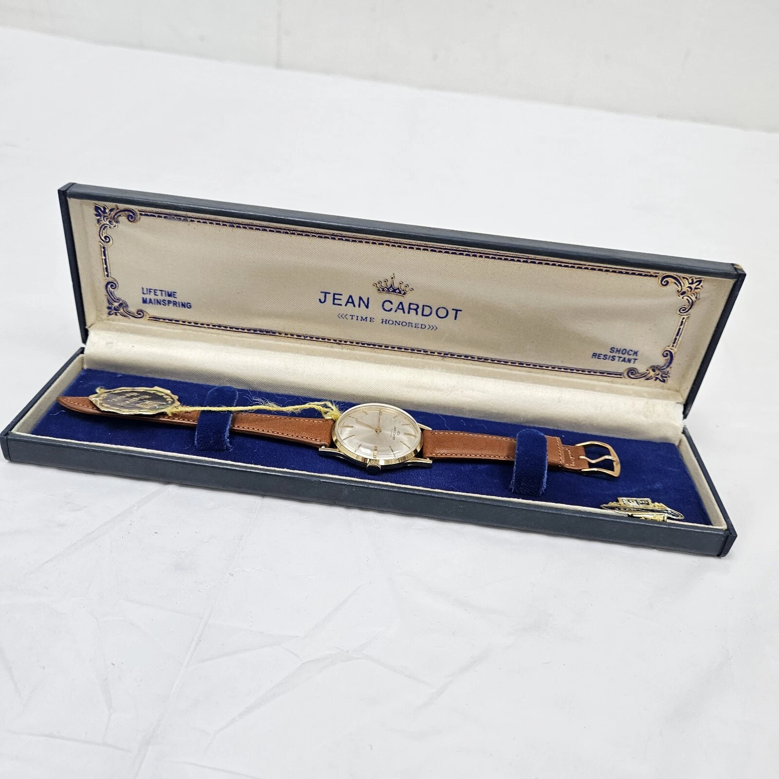 RARE Men's Vintage Wrist Watch JEAN CARDOT 17 Jewels Manual Wind W Box
