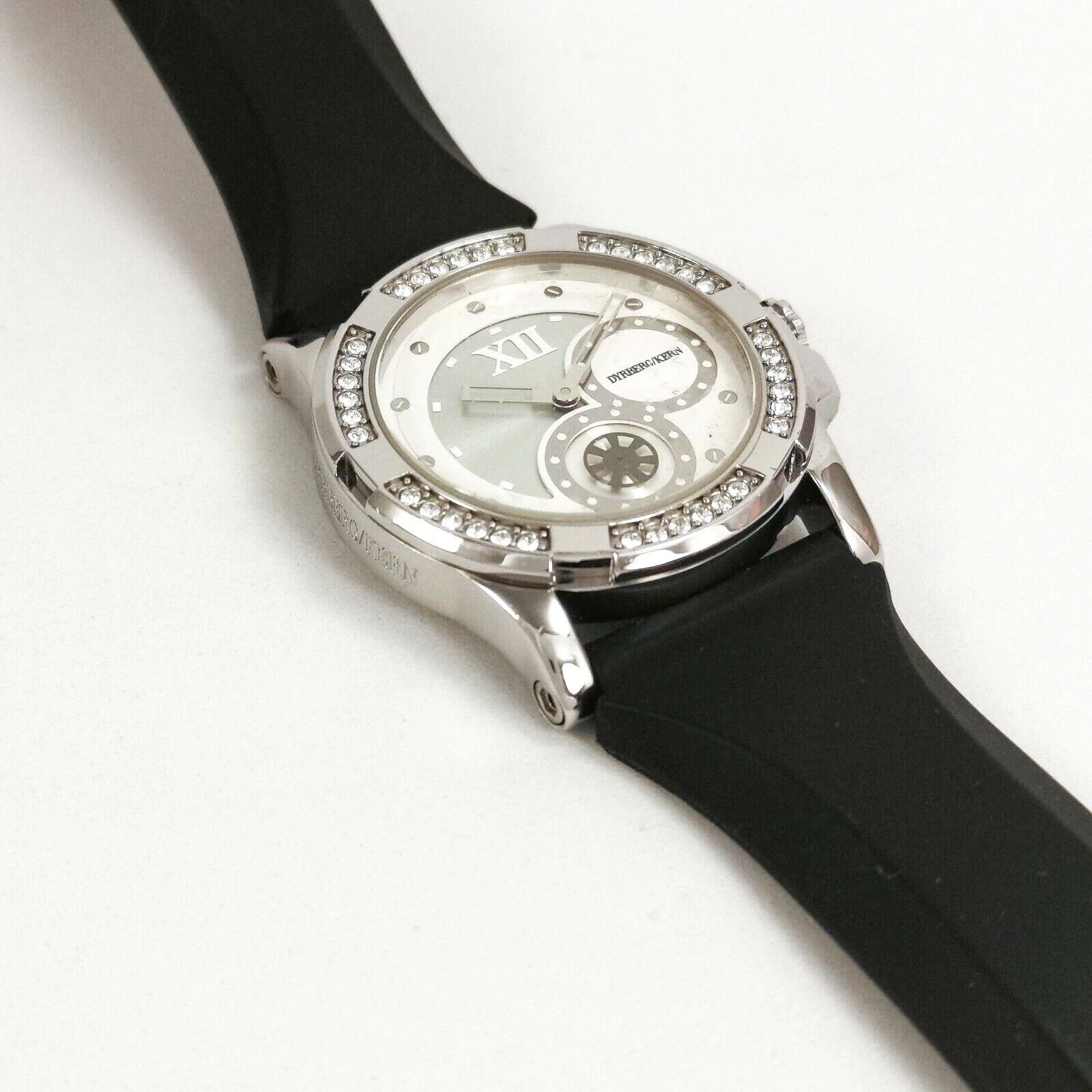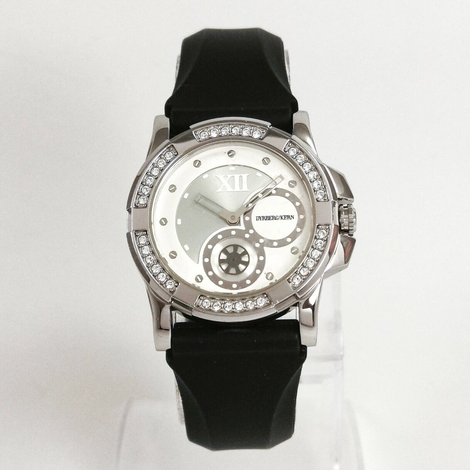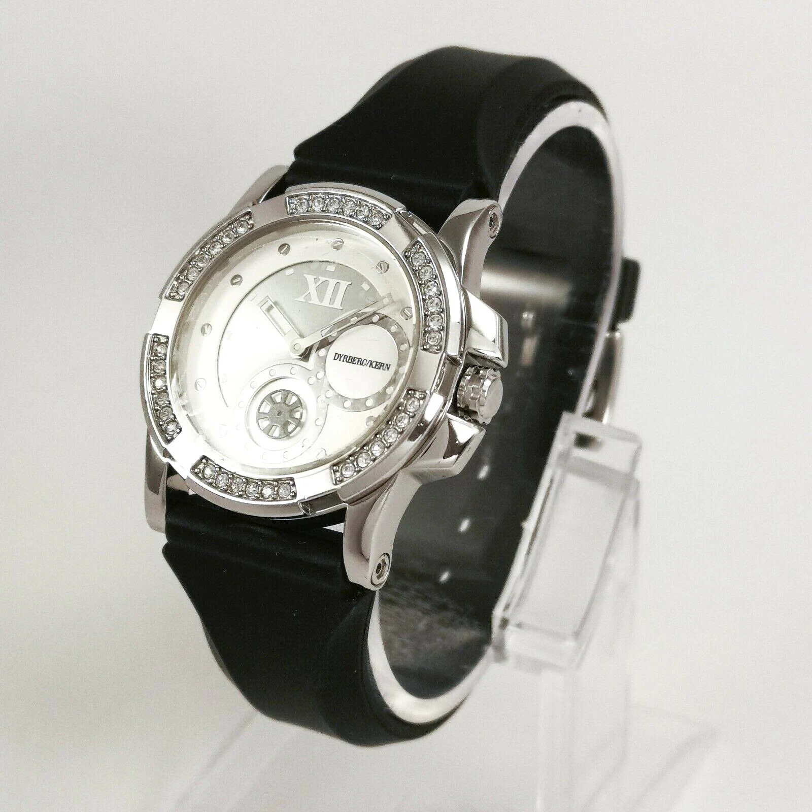 Dyrberg/Kern Silver Black Silicone Band Quartz Diamonds Women's Wrist Watch