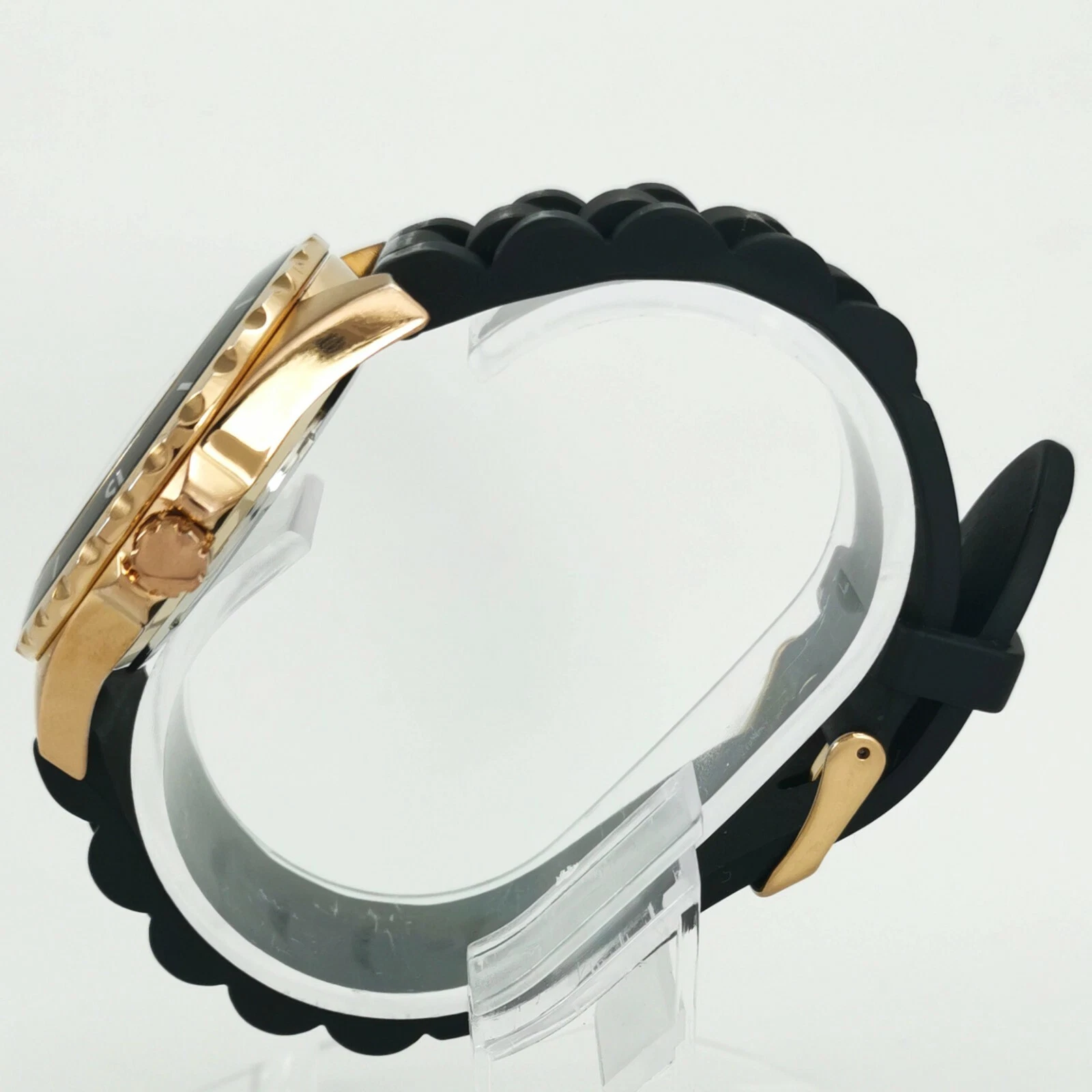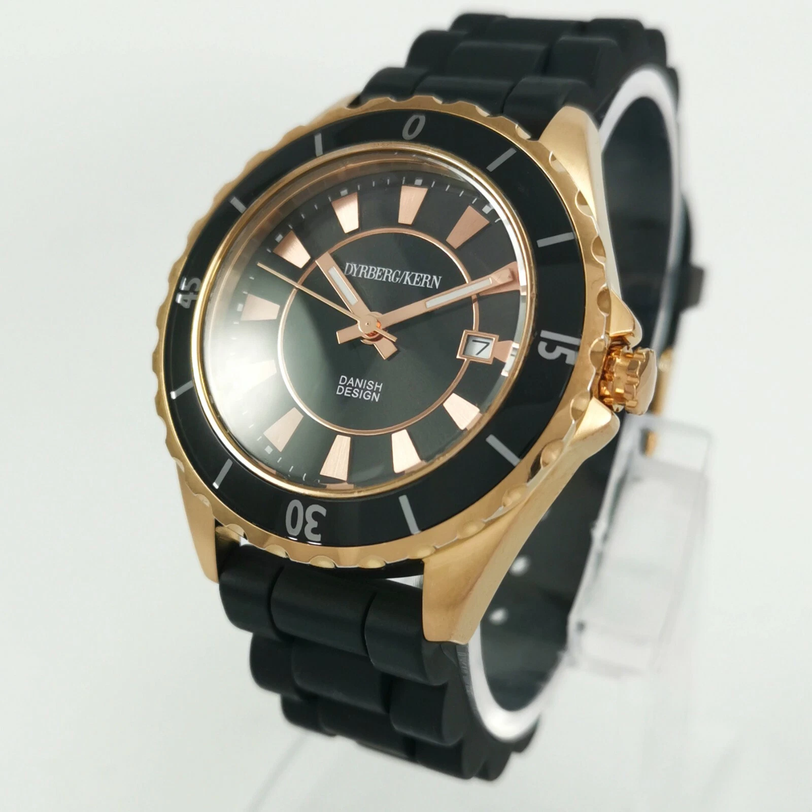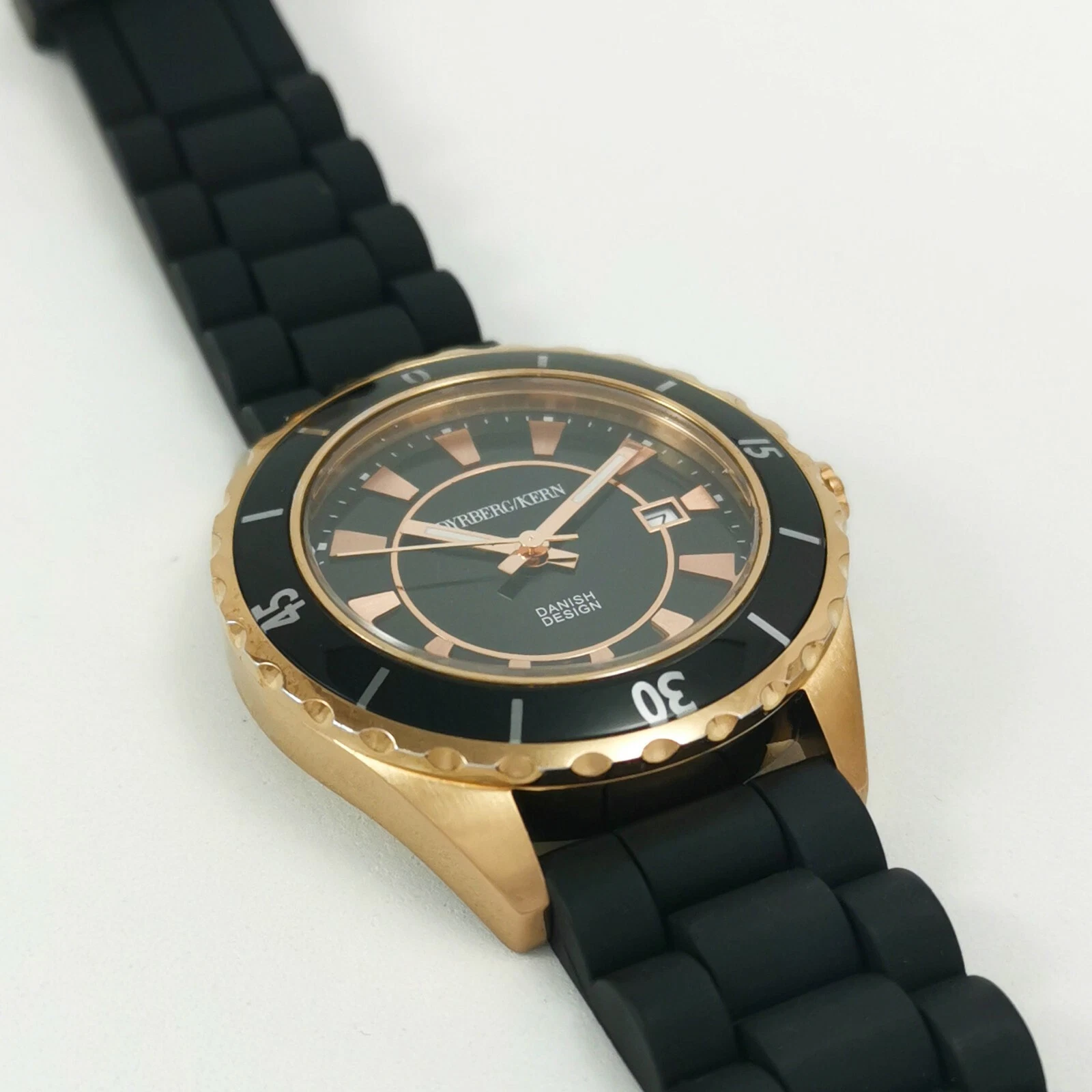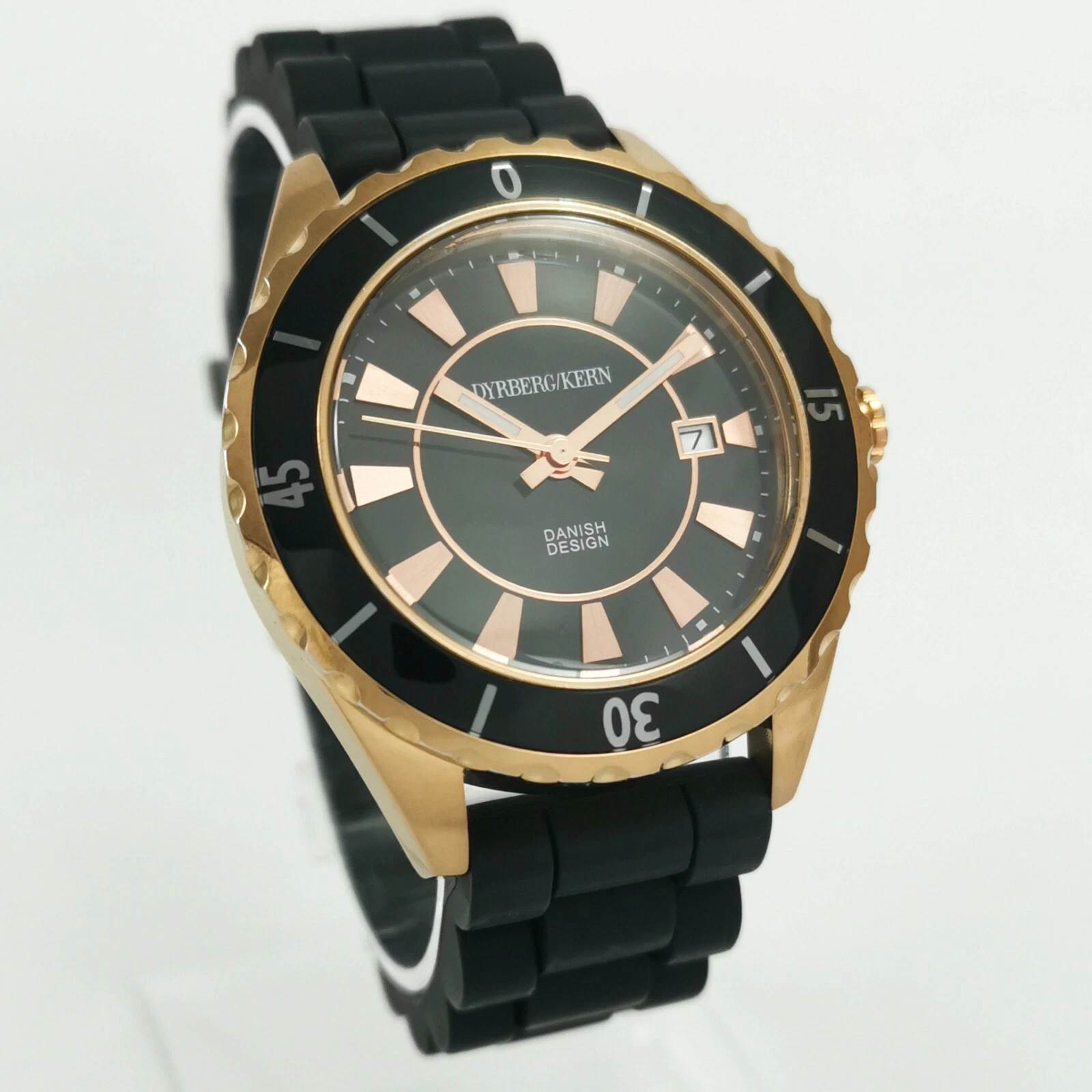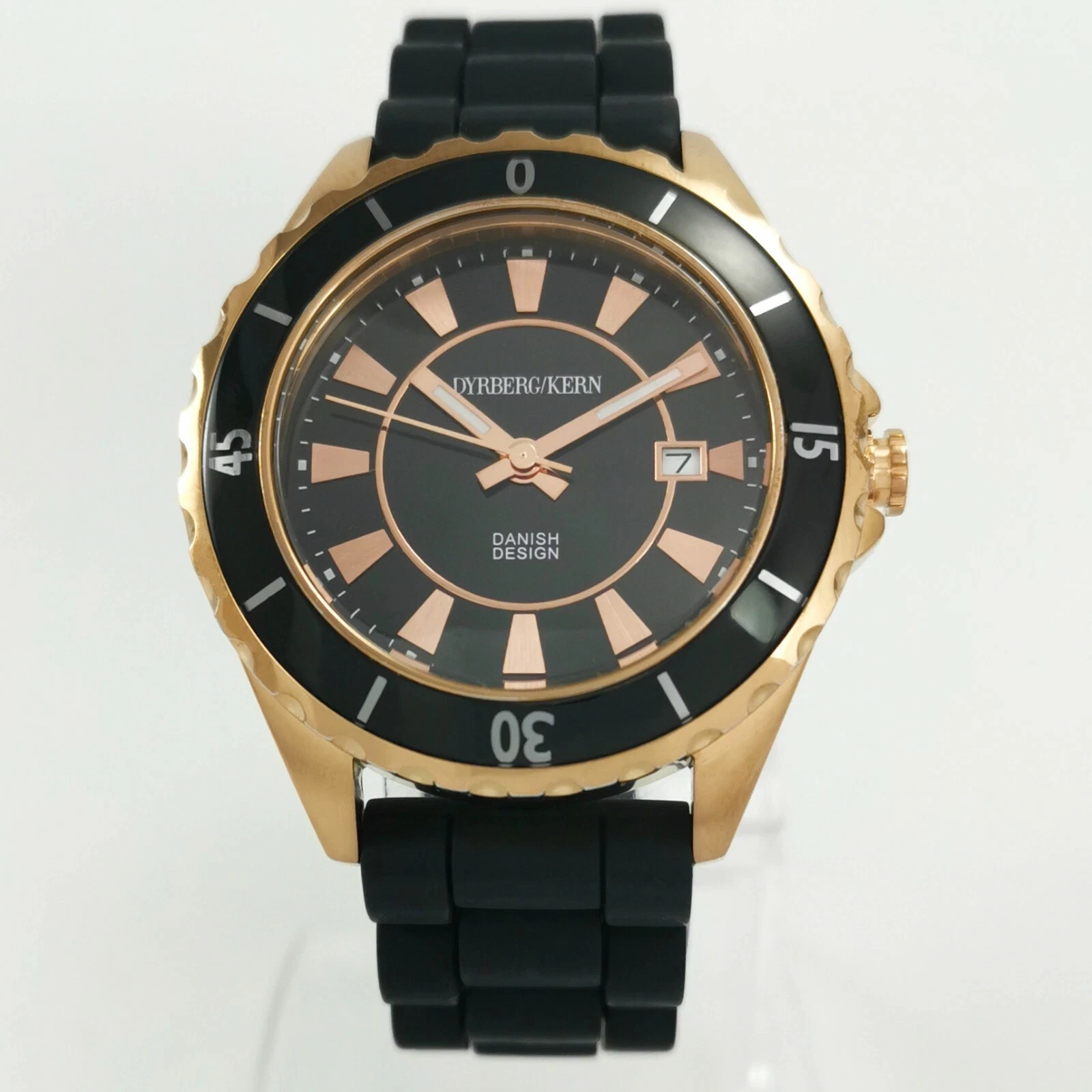 Dyrberg/Kern Rose Gold Black Silicone Rubber Band Quartz Women's Wrist Watch