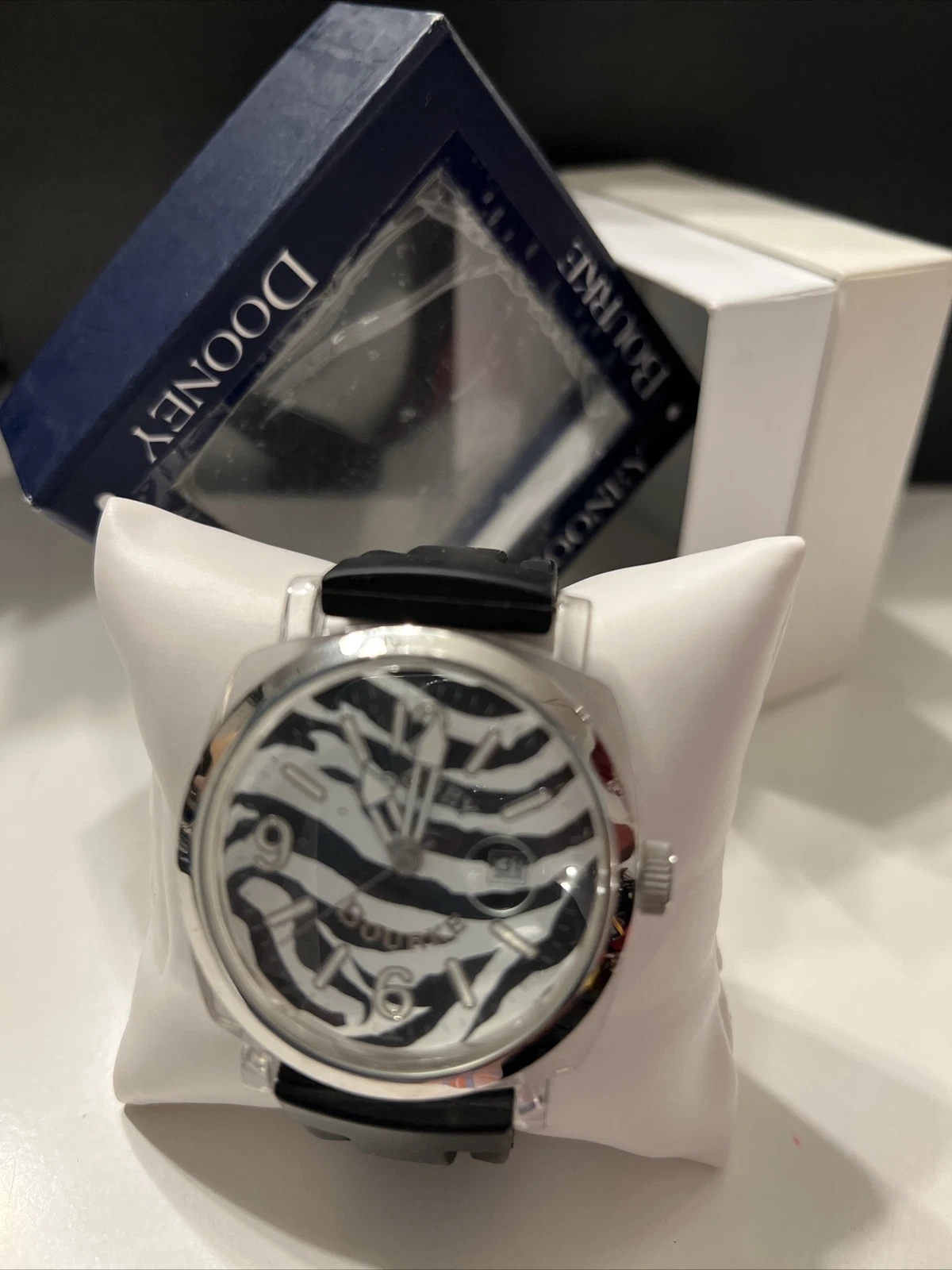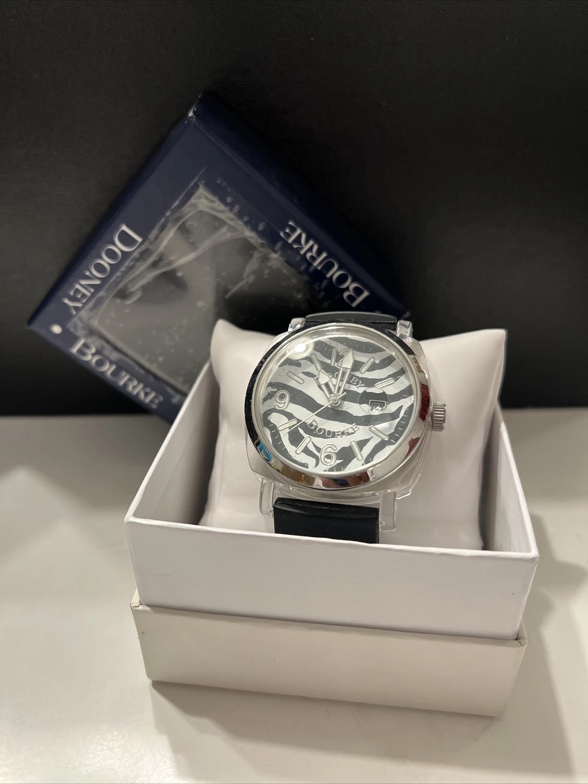 Dooney & Bourke WRISTWATCH ZEBRA PRINT HUGE FACE 1 3/4 INCHES RUBBER WATCH BAND