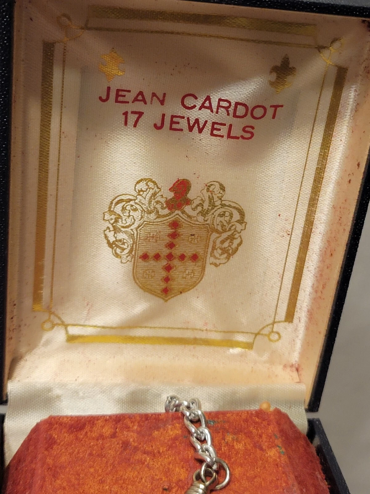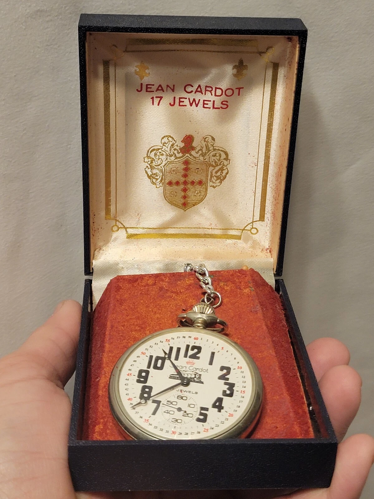 Vintage 30's Jean Cardot 17 Jewels Pocket Watch Working Box Pennsy Railroad