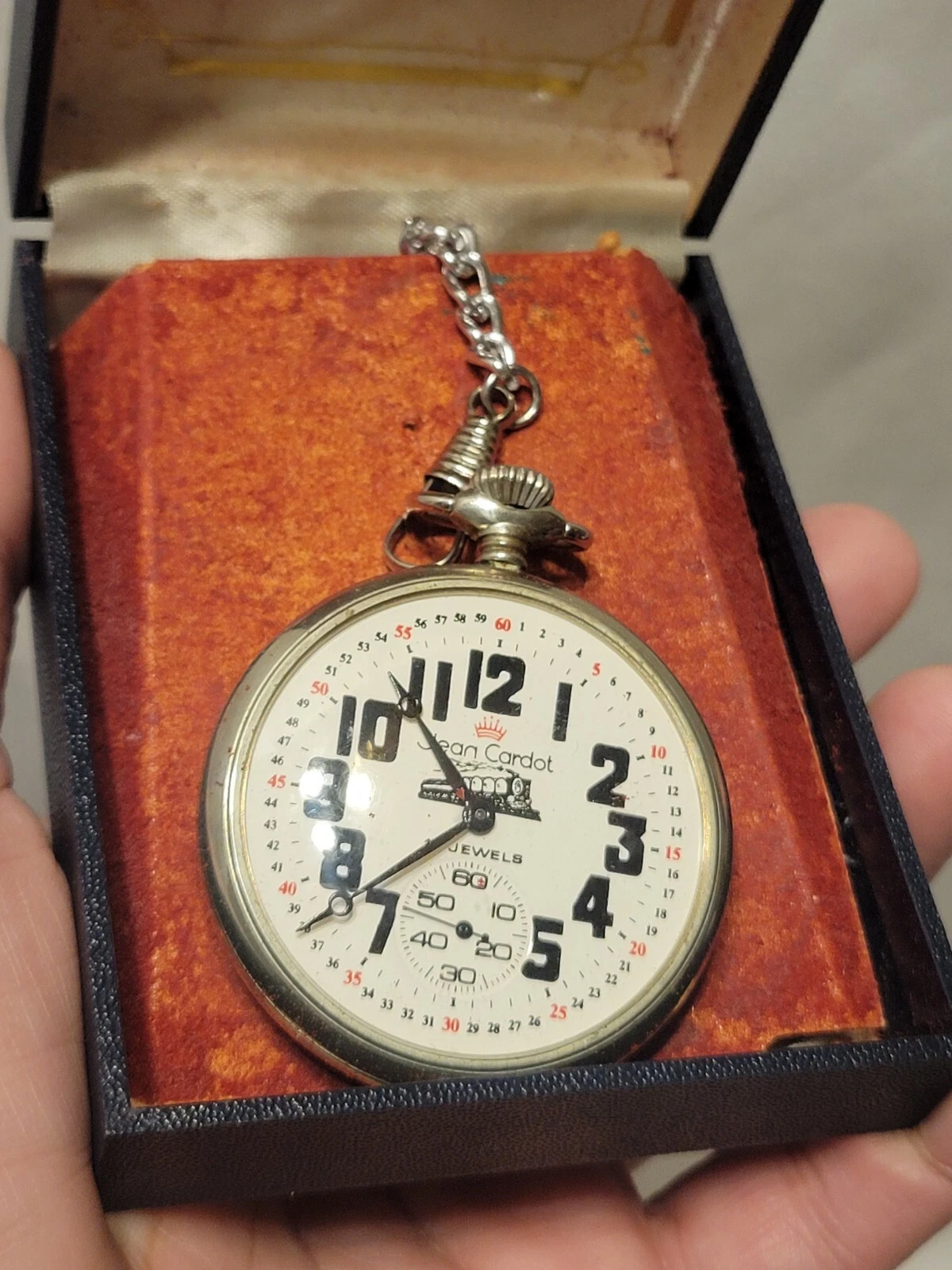 Vintage 30's Jean Cardot 17 Jewels Pocket Watch Working Box  Pennsy Railroad