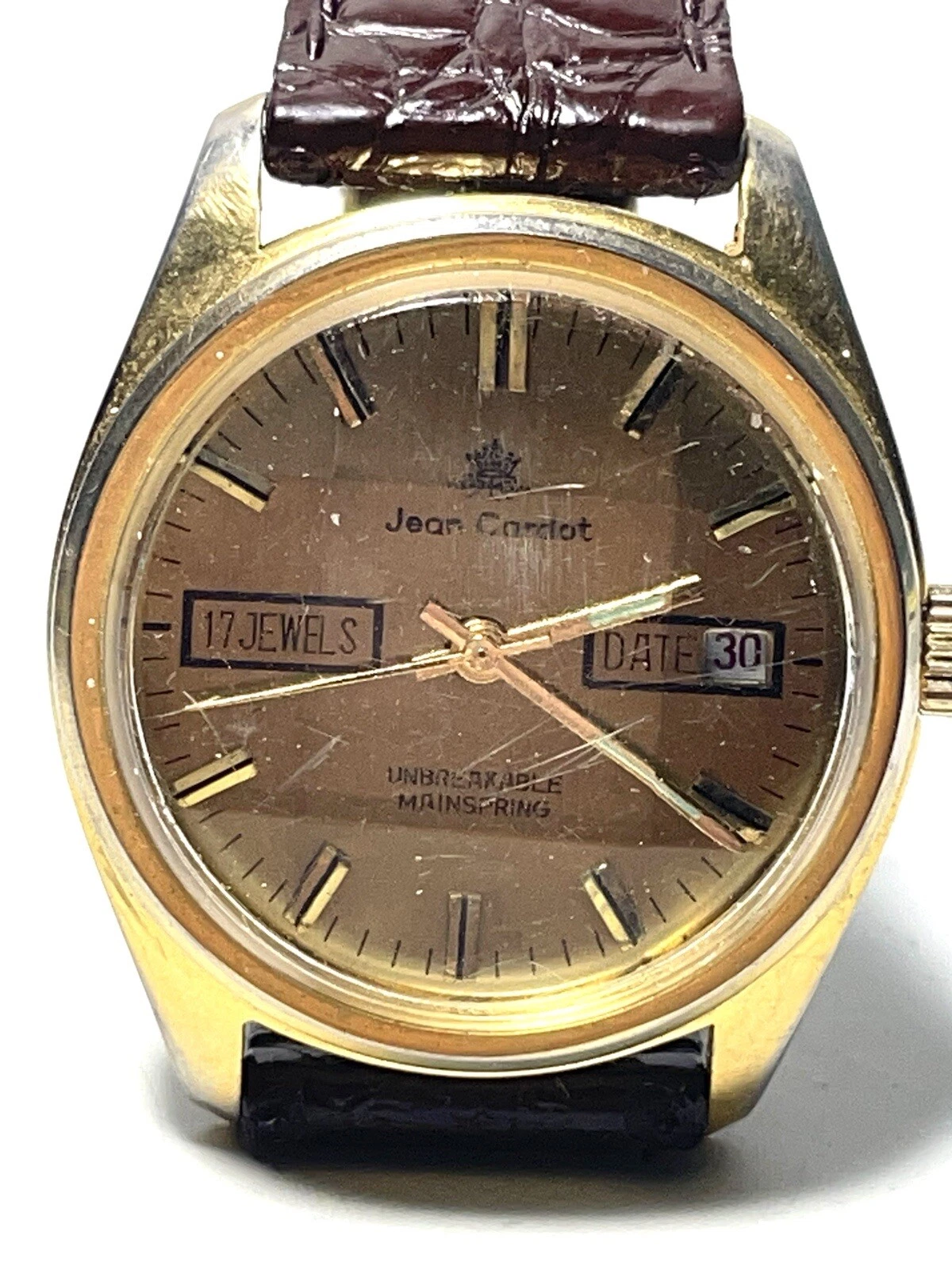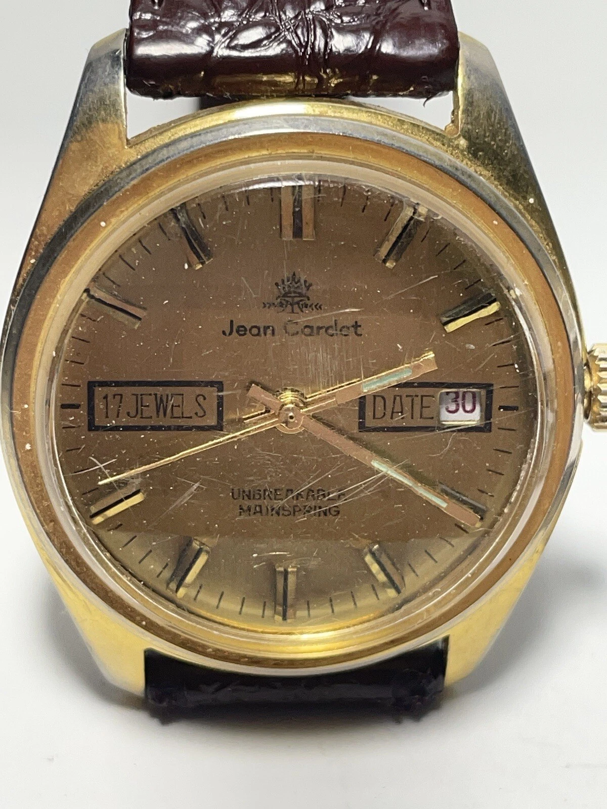 Vintage Jean Cardot Watch. Not Running. As Is. Parts Only. Brown Band.