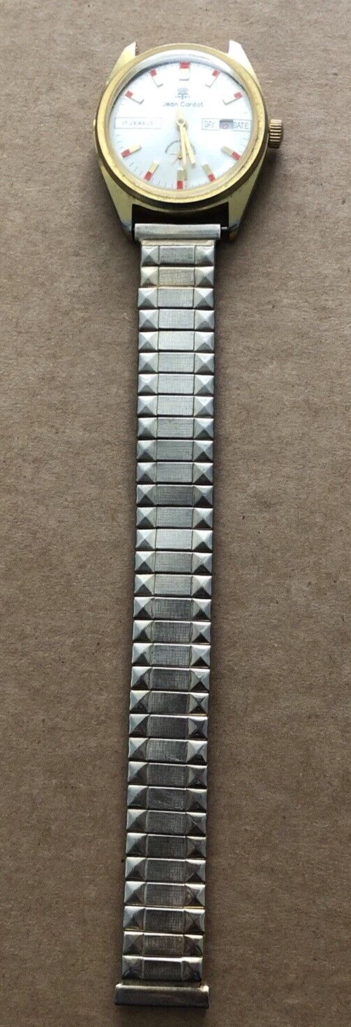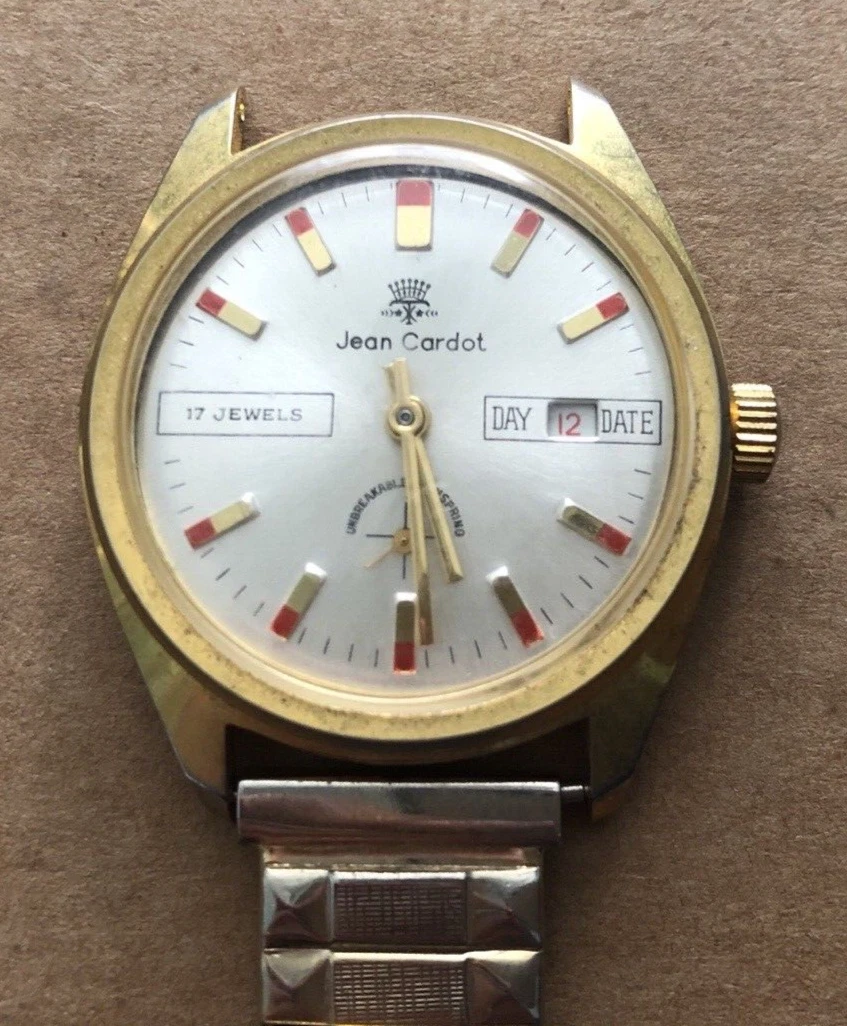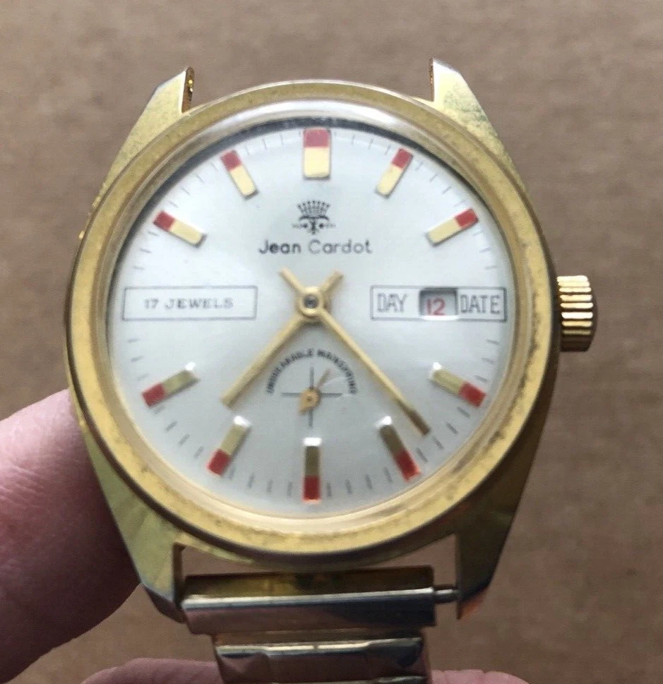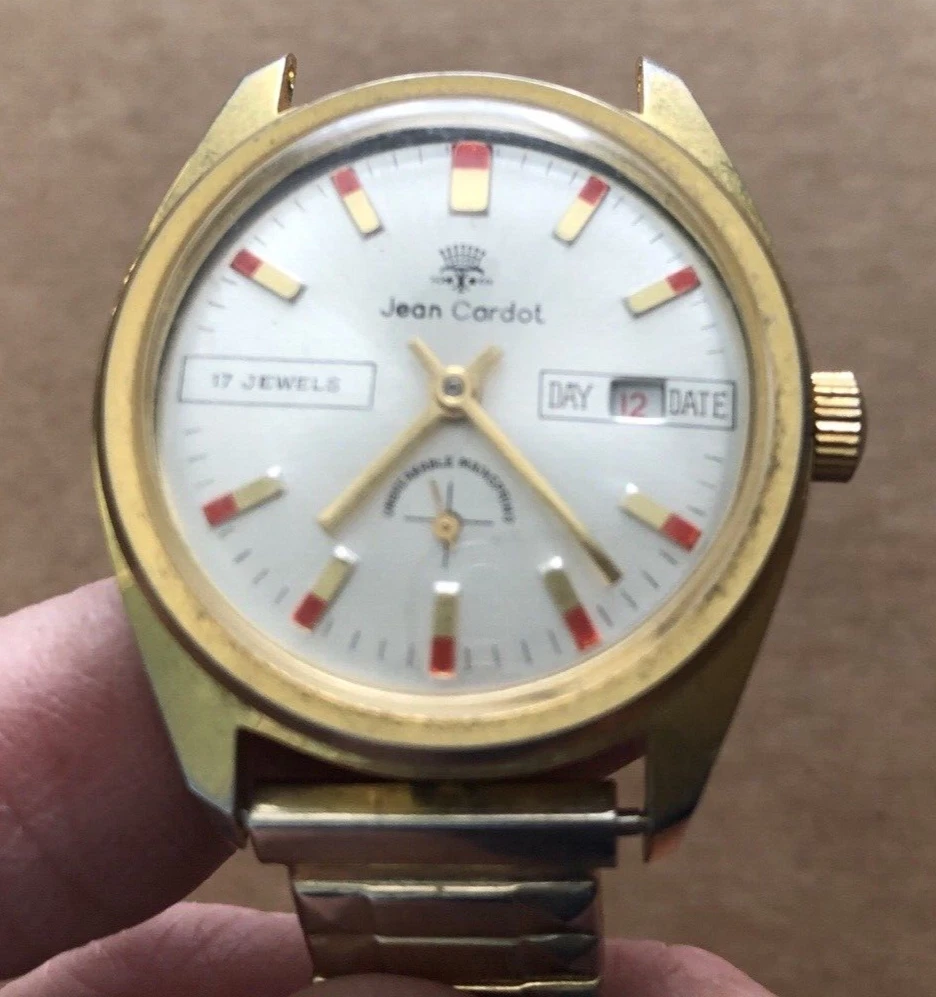 Vintage JEAN CARDOT 17 Jewels Men’s Wrist Watch GOLD RED