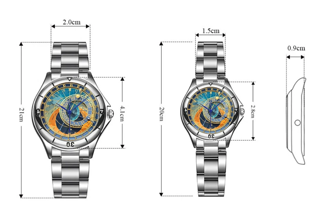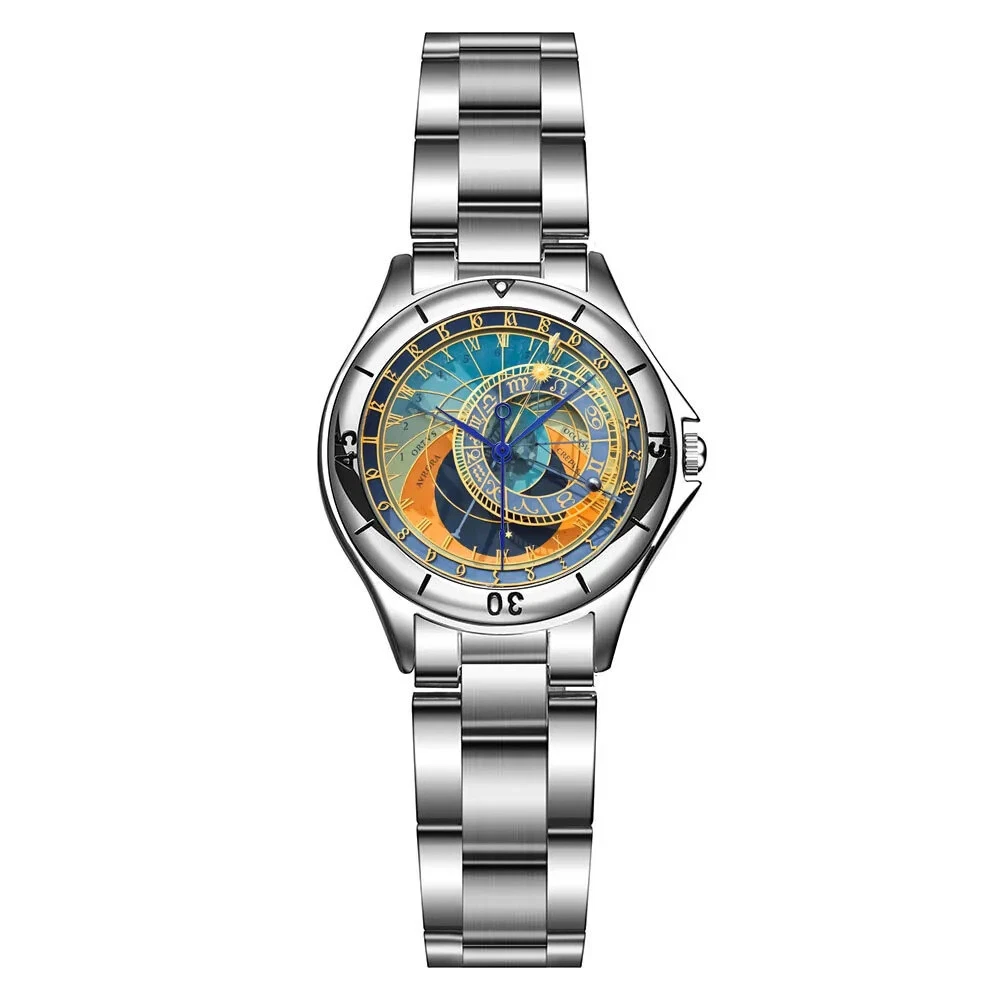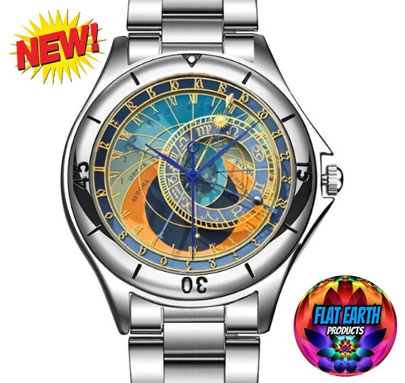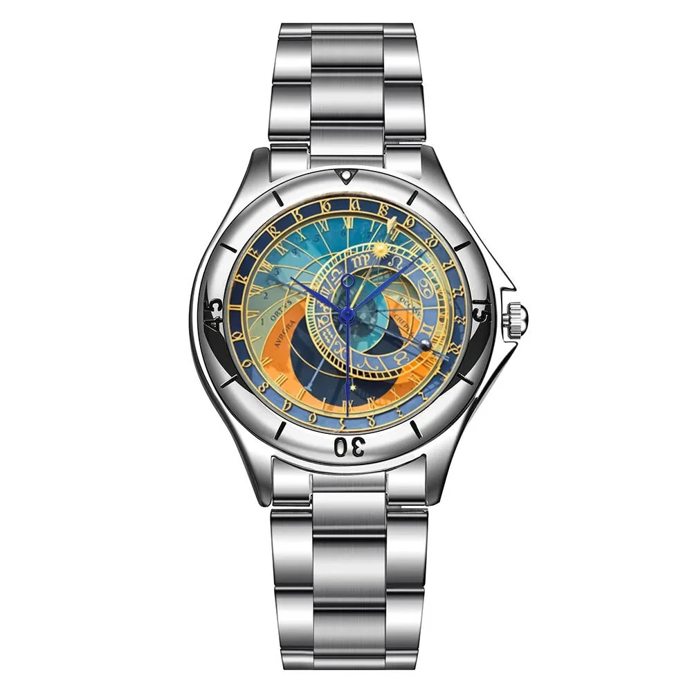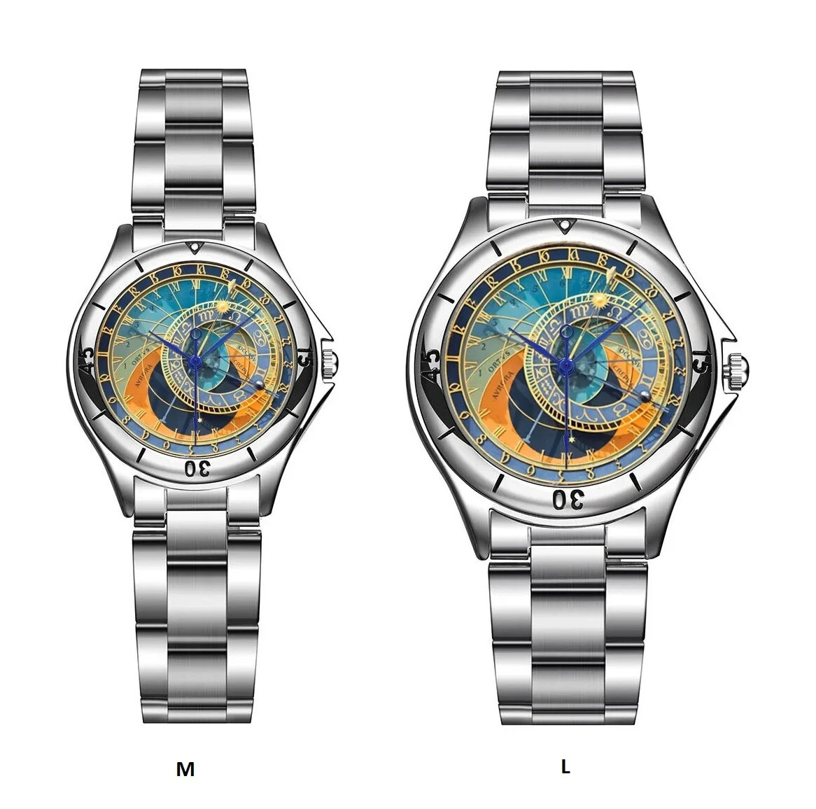 Luxury Silver Wristwatch Prague Astronomical Czech Tower V2 Map Flat Earth Watch