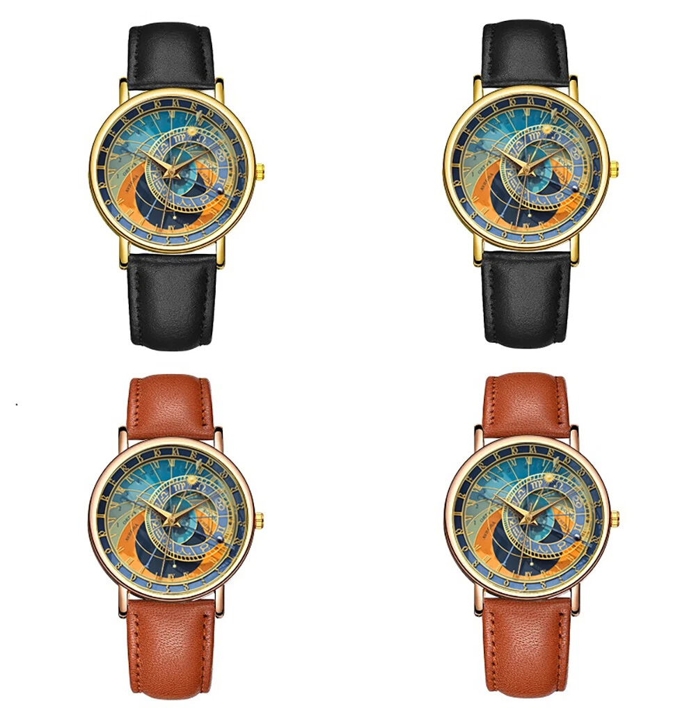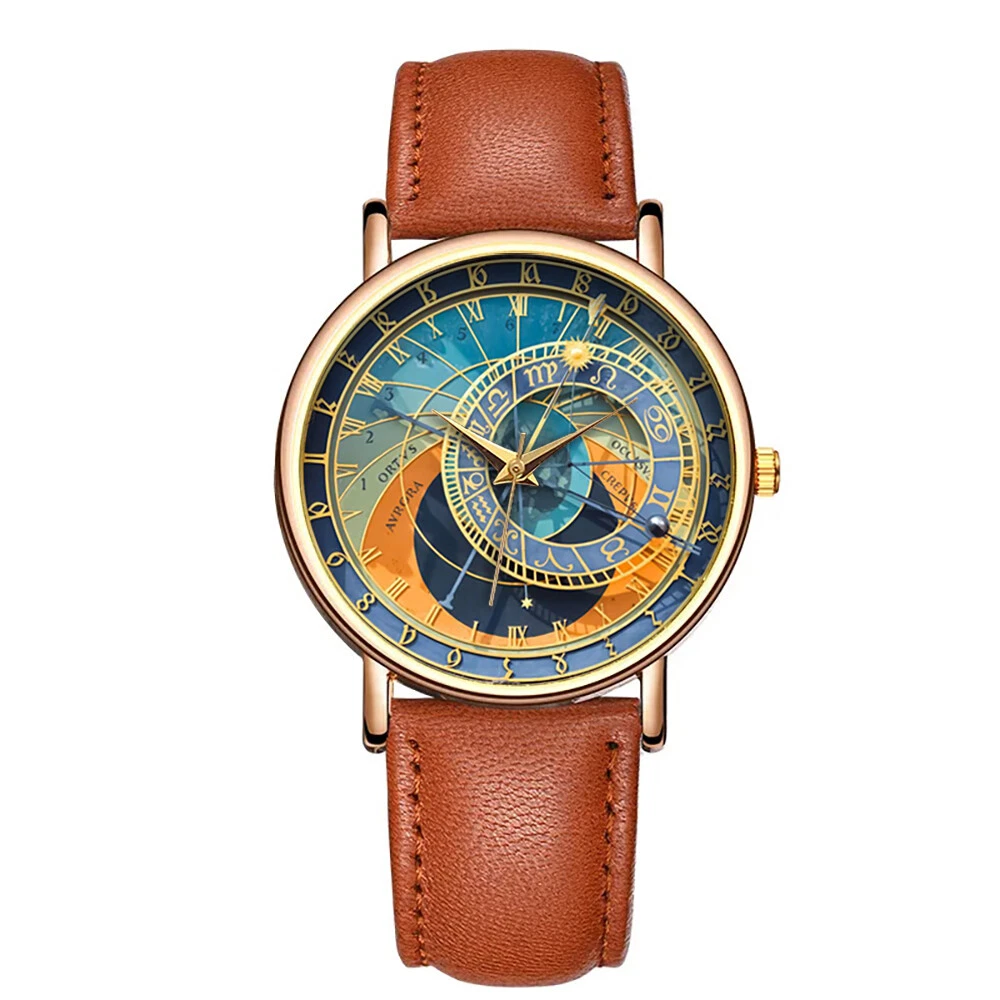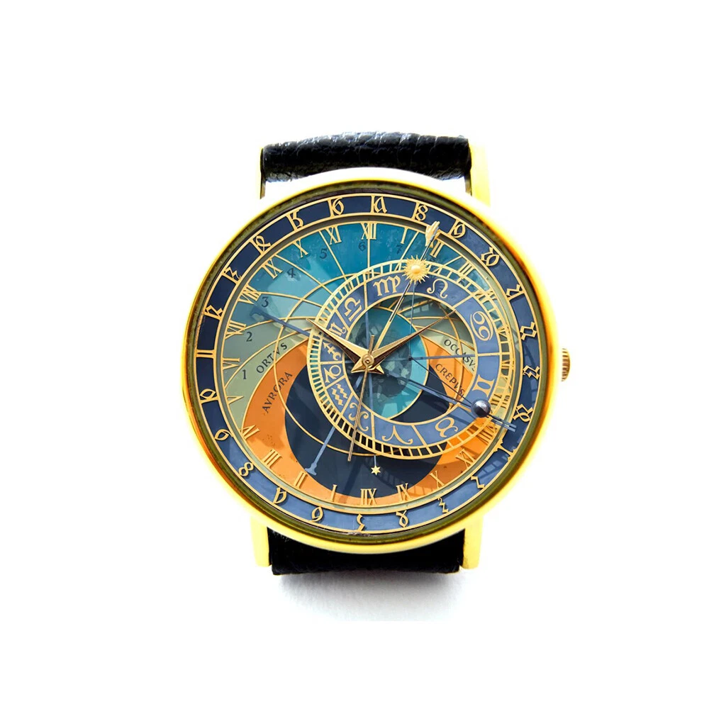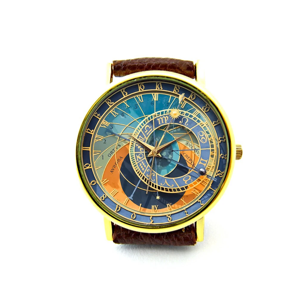 Town Hall Prague Astronomical Watch Orloj Black Brown Leather Czech Wristwatch Z