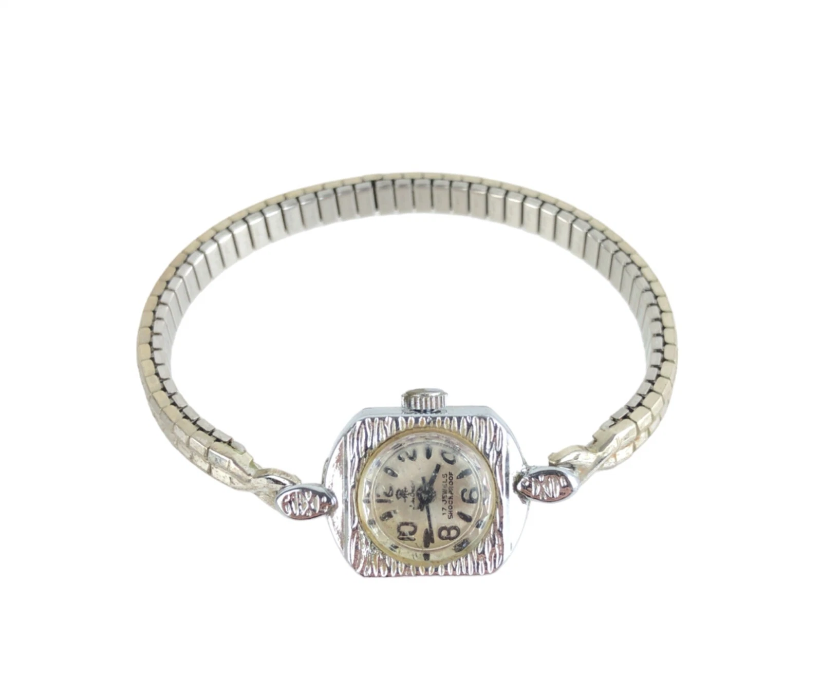 Vintage Jean Cardot 17 Jewel Shockproof Wrist Watch Silver Tone