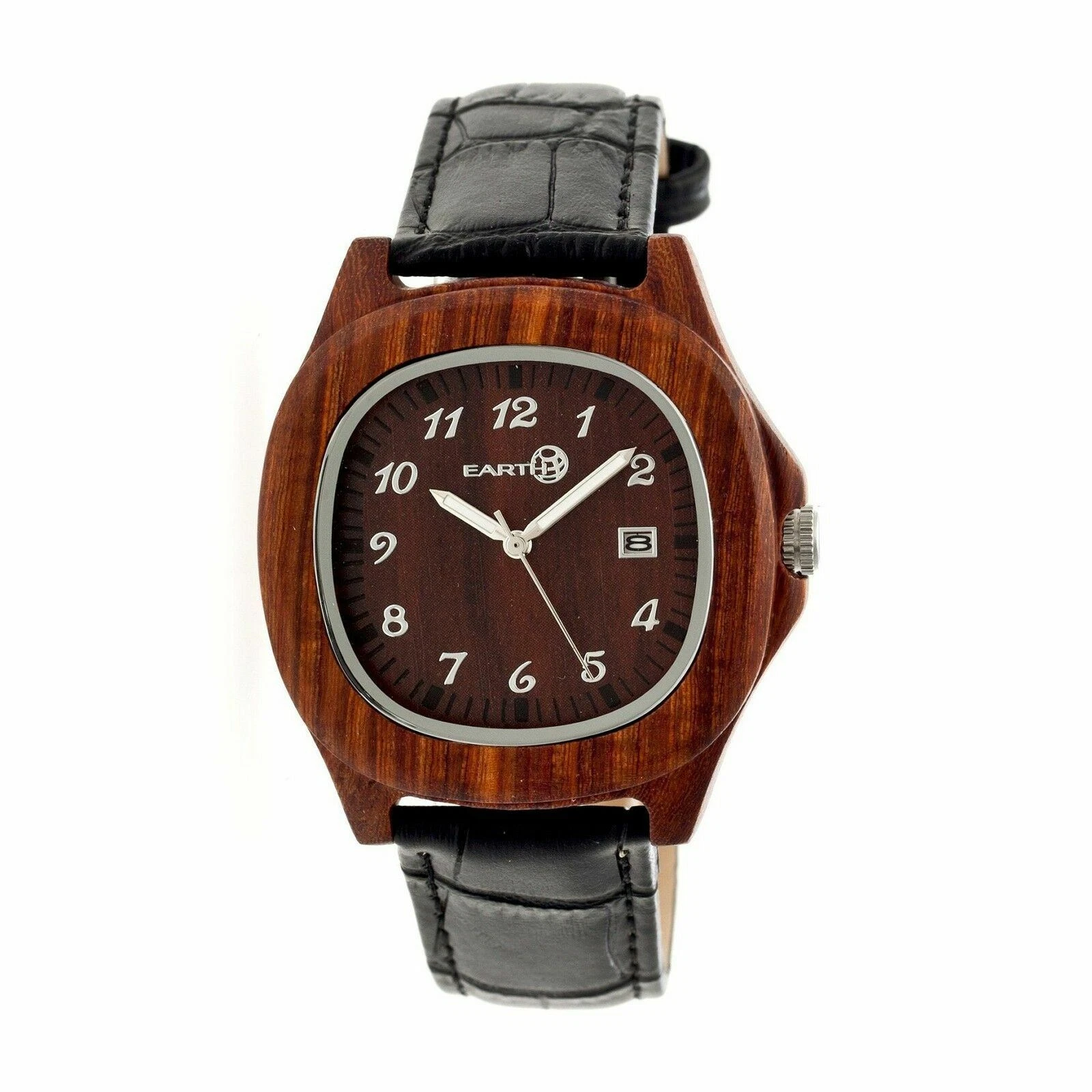 NEW Earth EW2703 Unisex Eco-Friendly Date Black Leather Sherwood Red Wood Watch