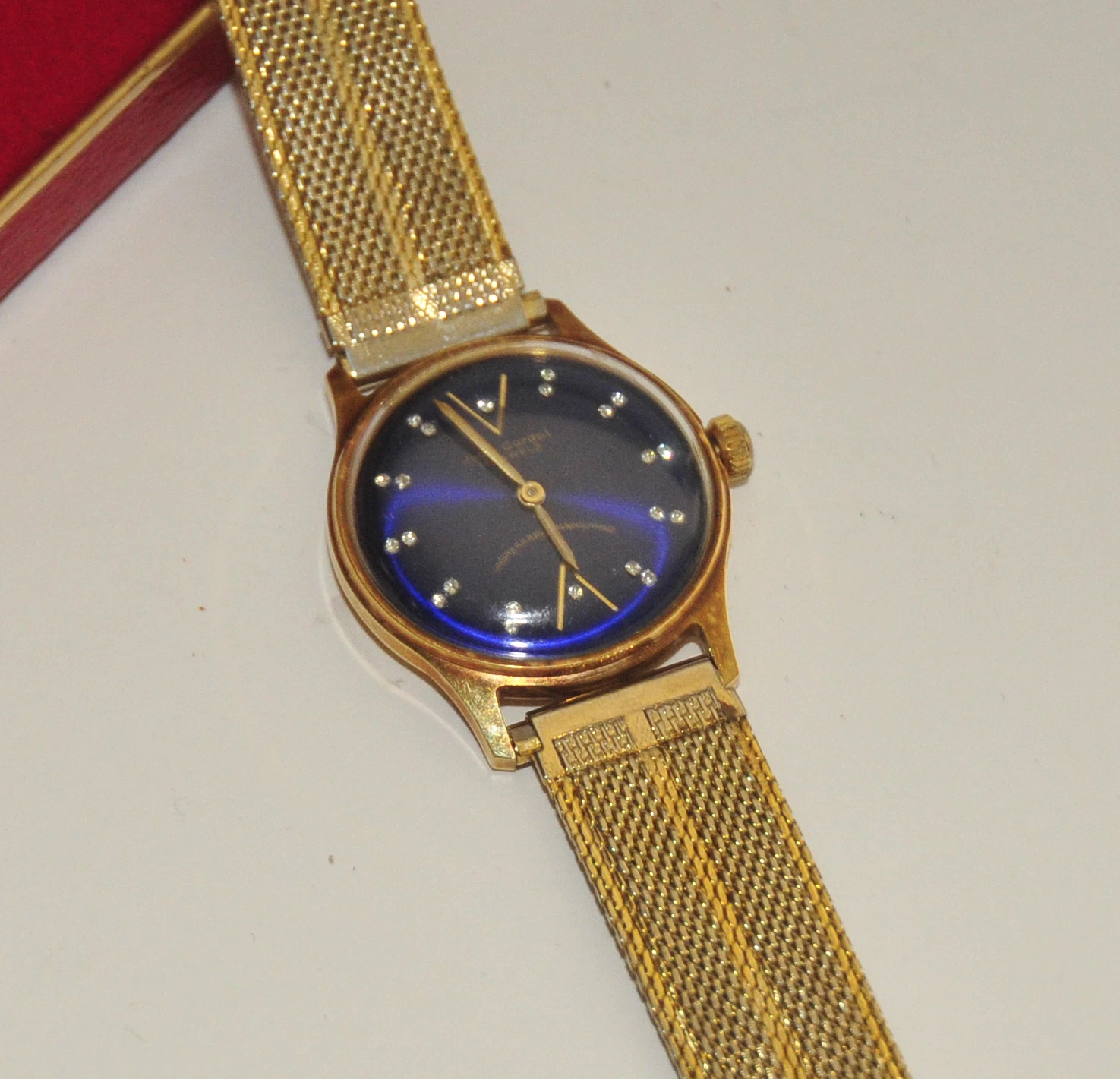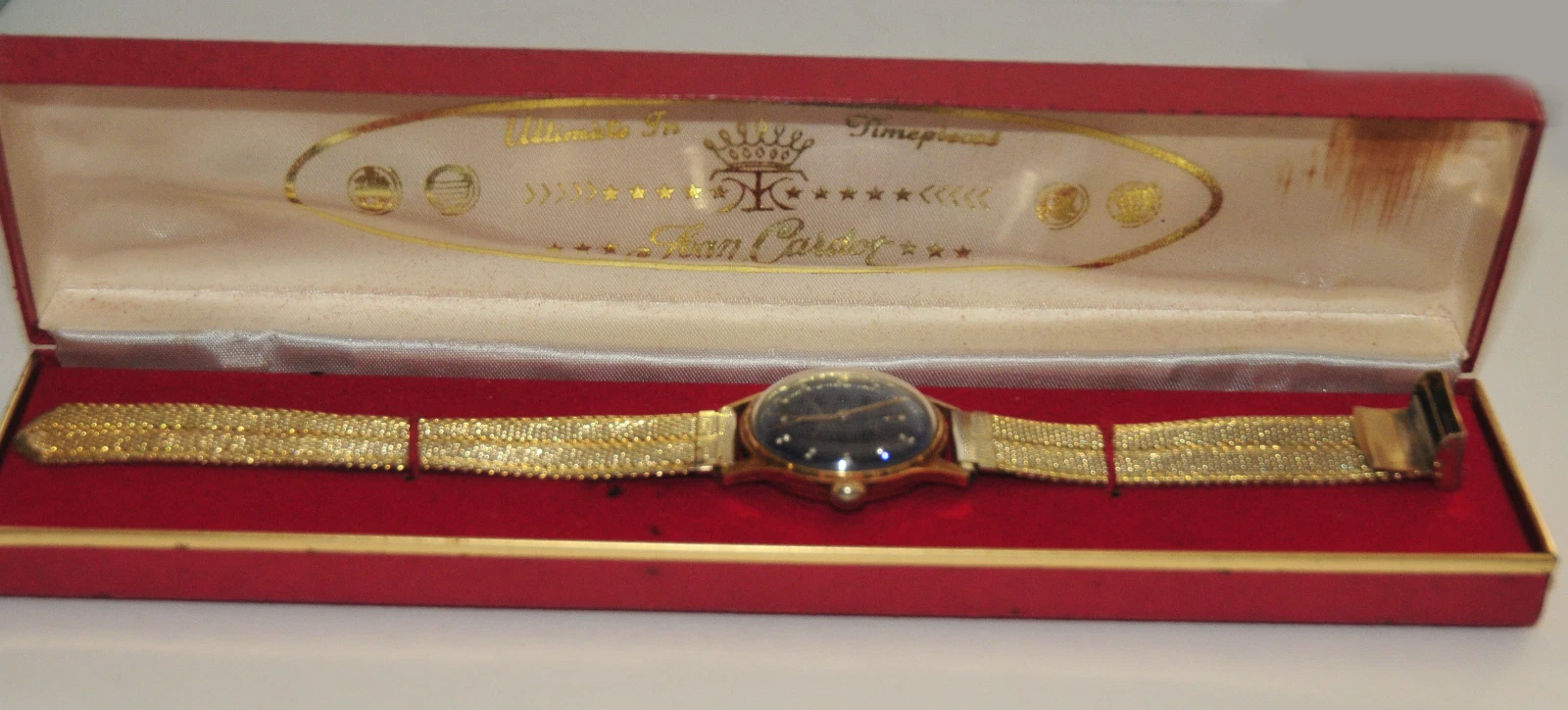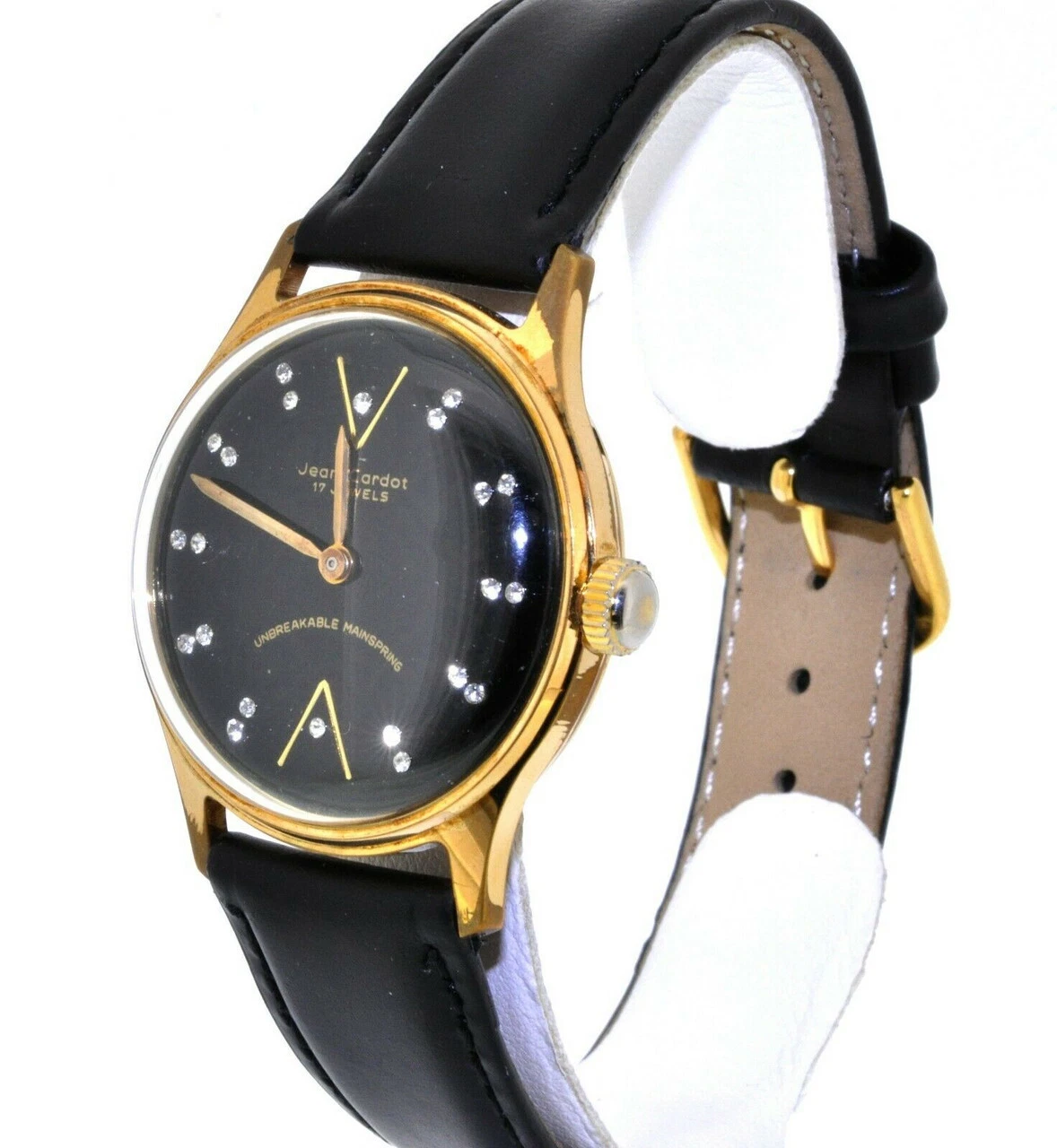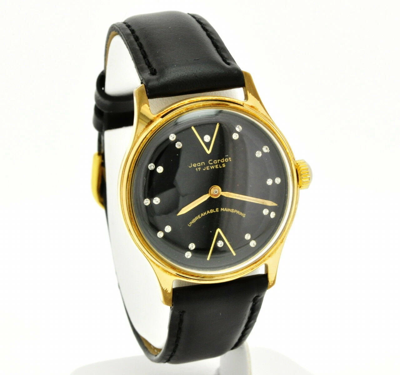 Jean Cardot watch blue face 17 jewels unbreakable mainspring timepiece mens
