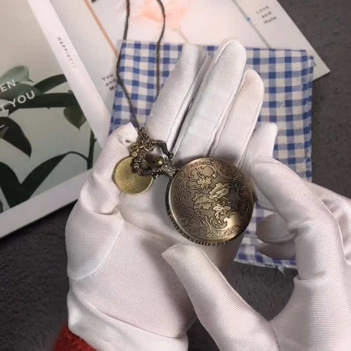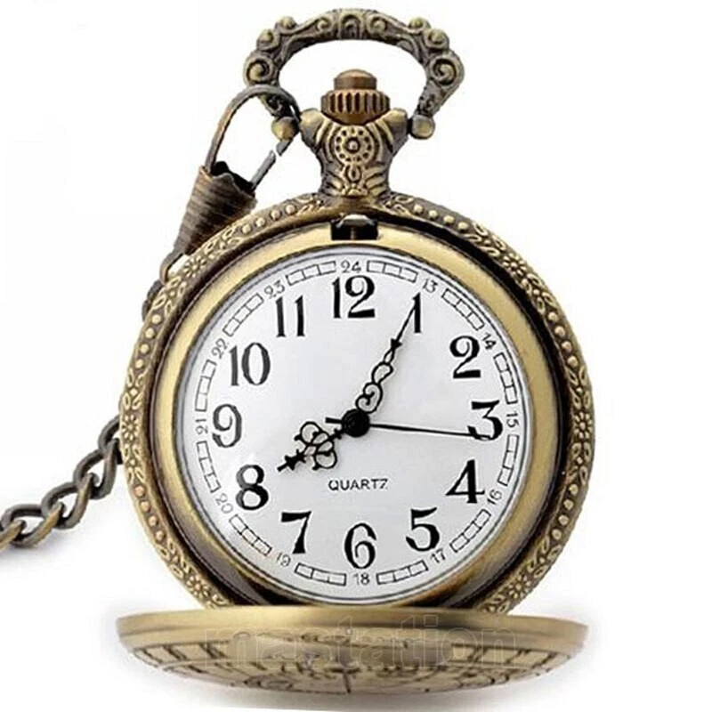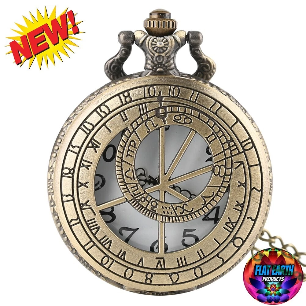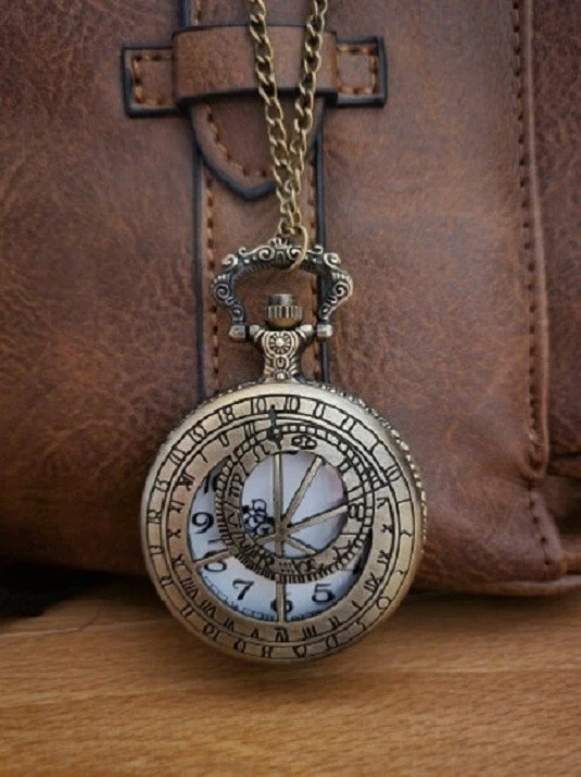 Prague Astronomical Pocket Watch Unisex Bronze Pendant Necklace Chain Vintage XL
