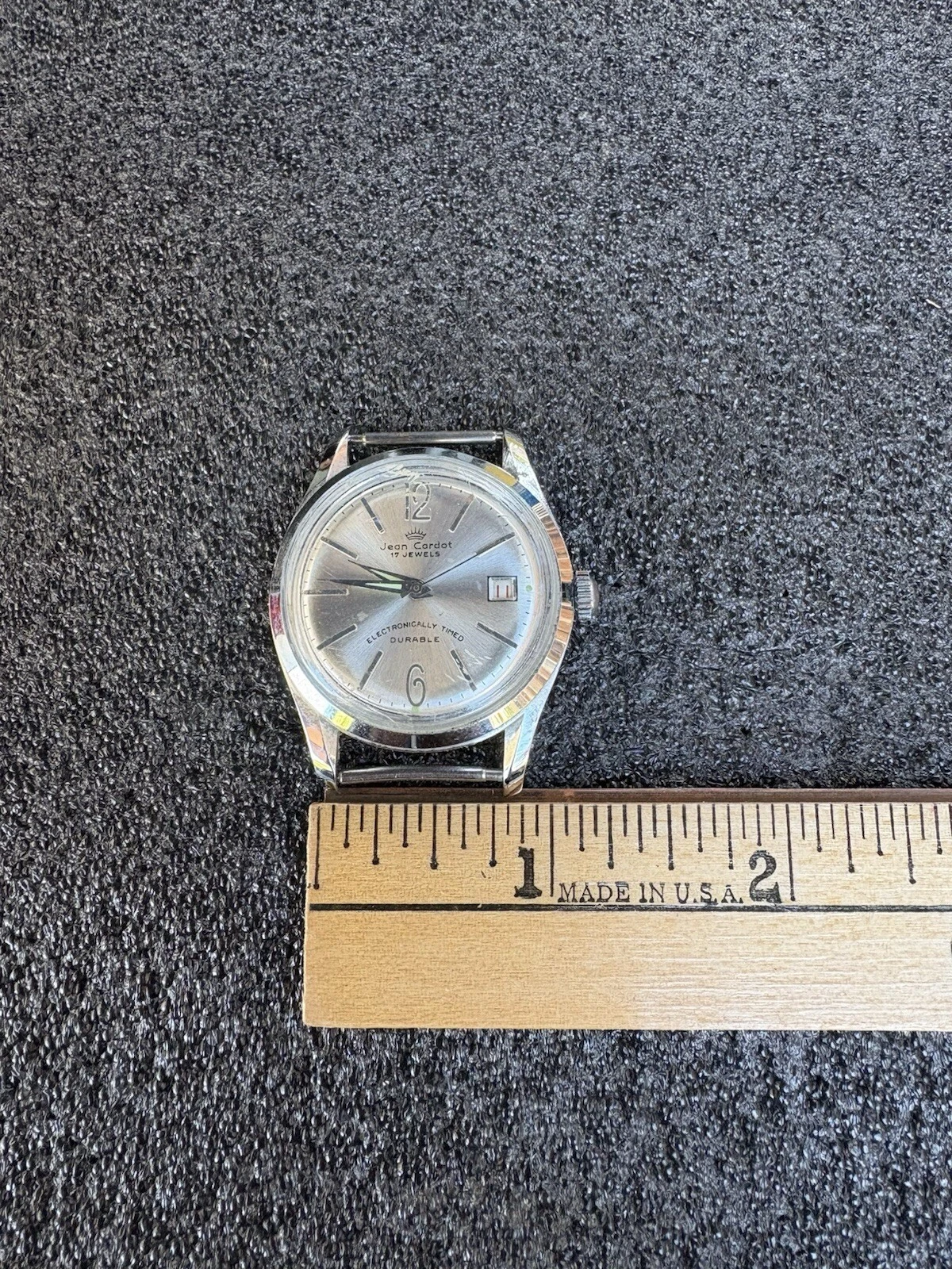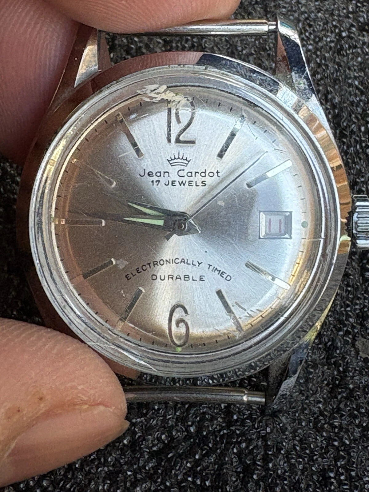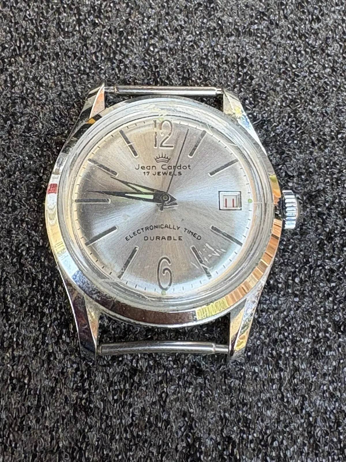 Vintage Jean Cardot Wind Watch 17 Jewels Diver Unbreakable Mainspring - RUNS -