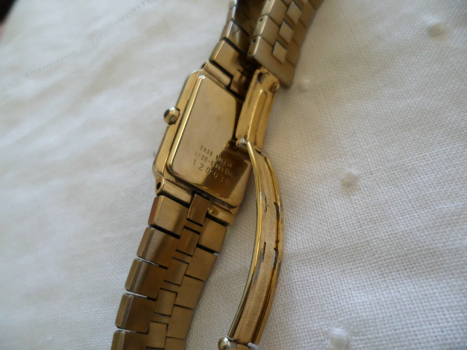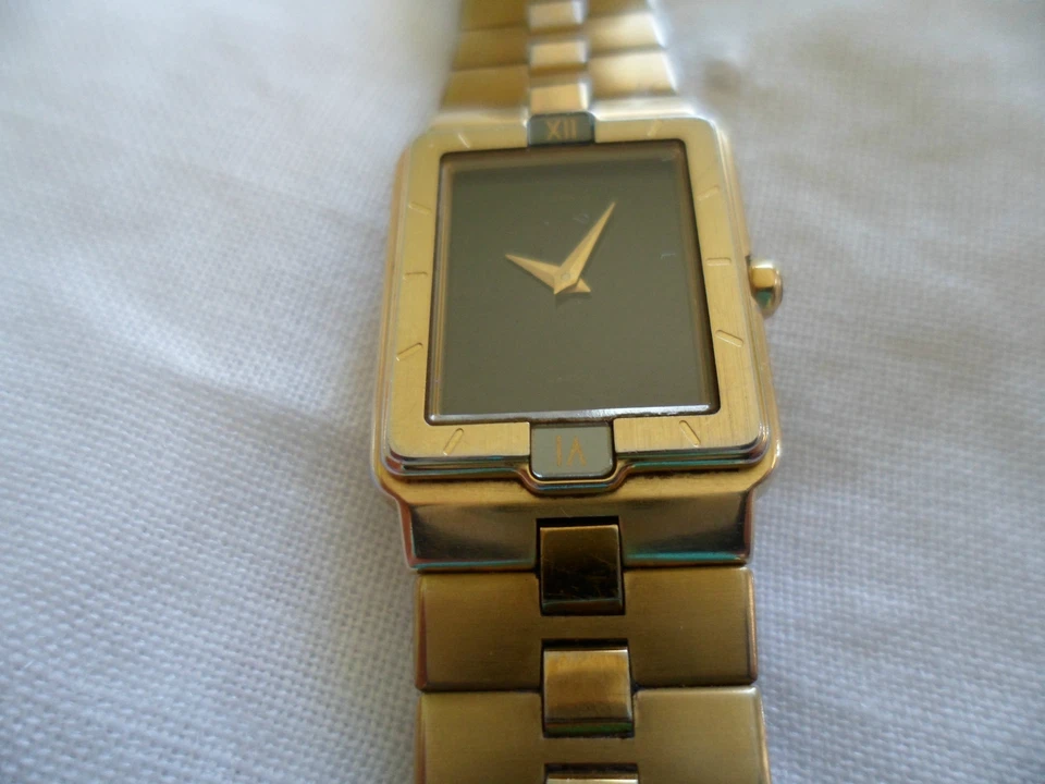 RETRO 1990s VINTAGE ORIGINAL LASSALE LADIES GOLD WATCH BLACK FACE ROMAN NUMERAL