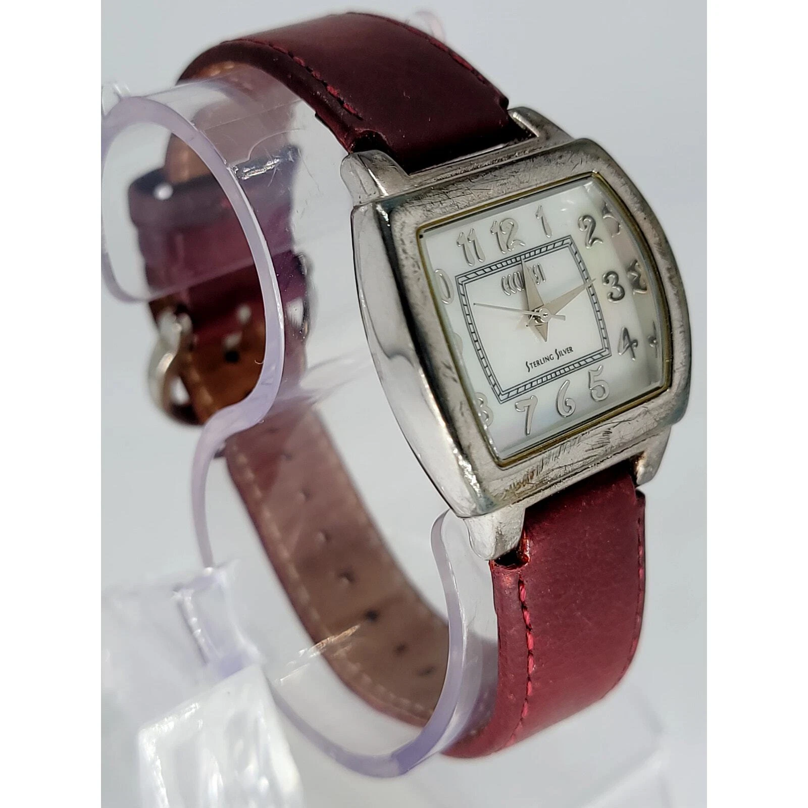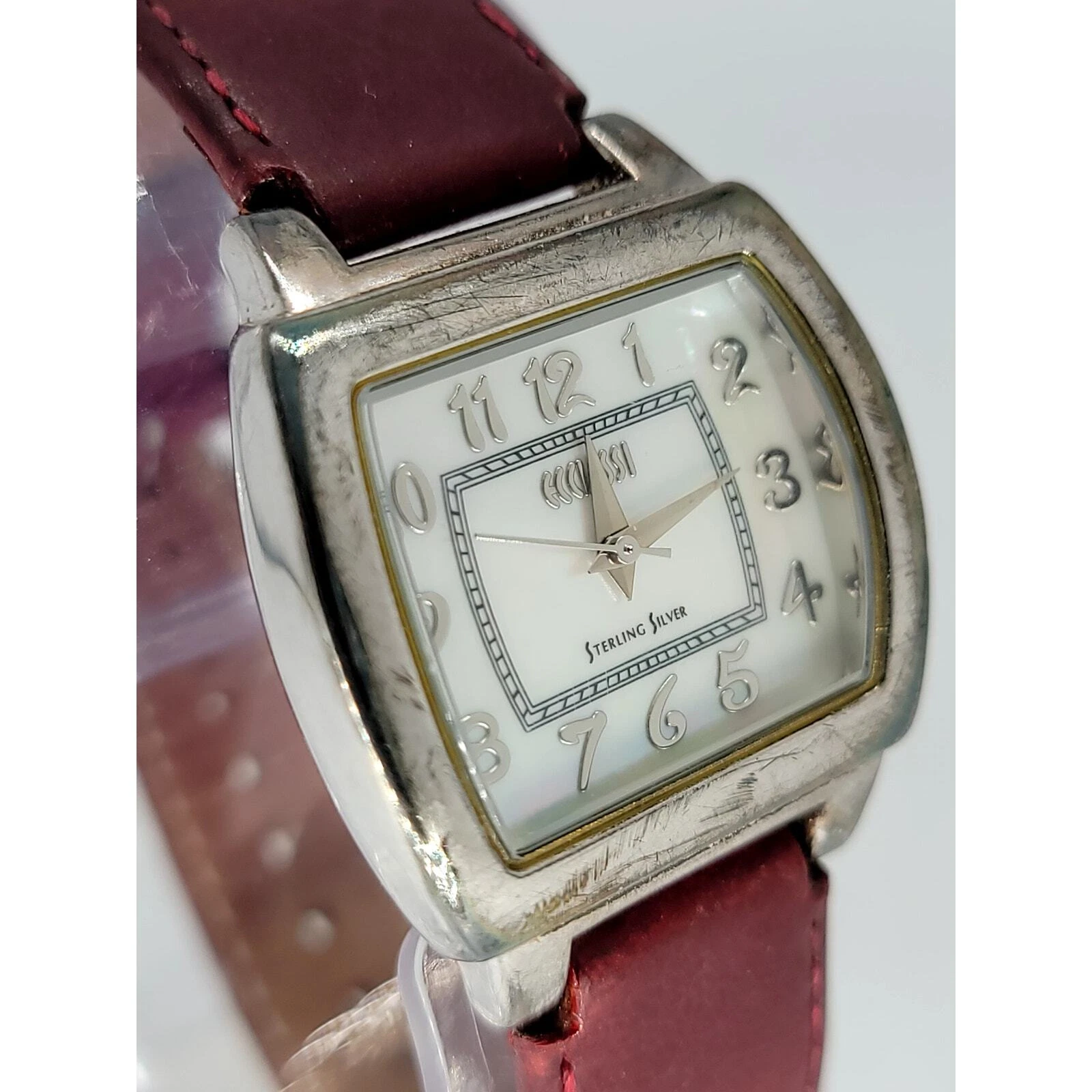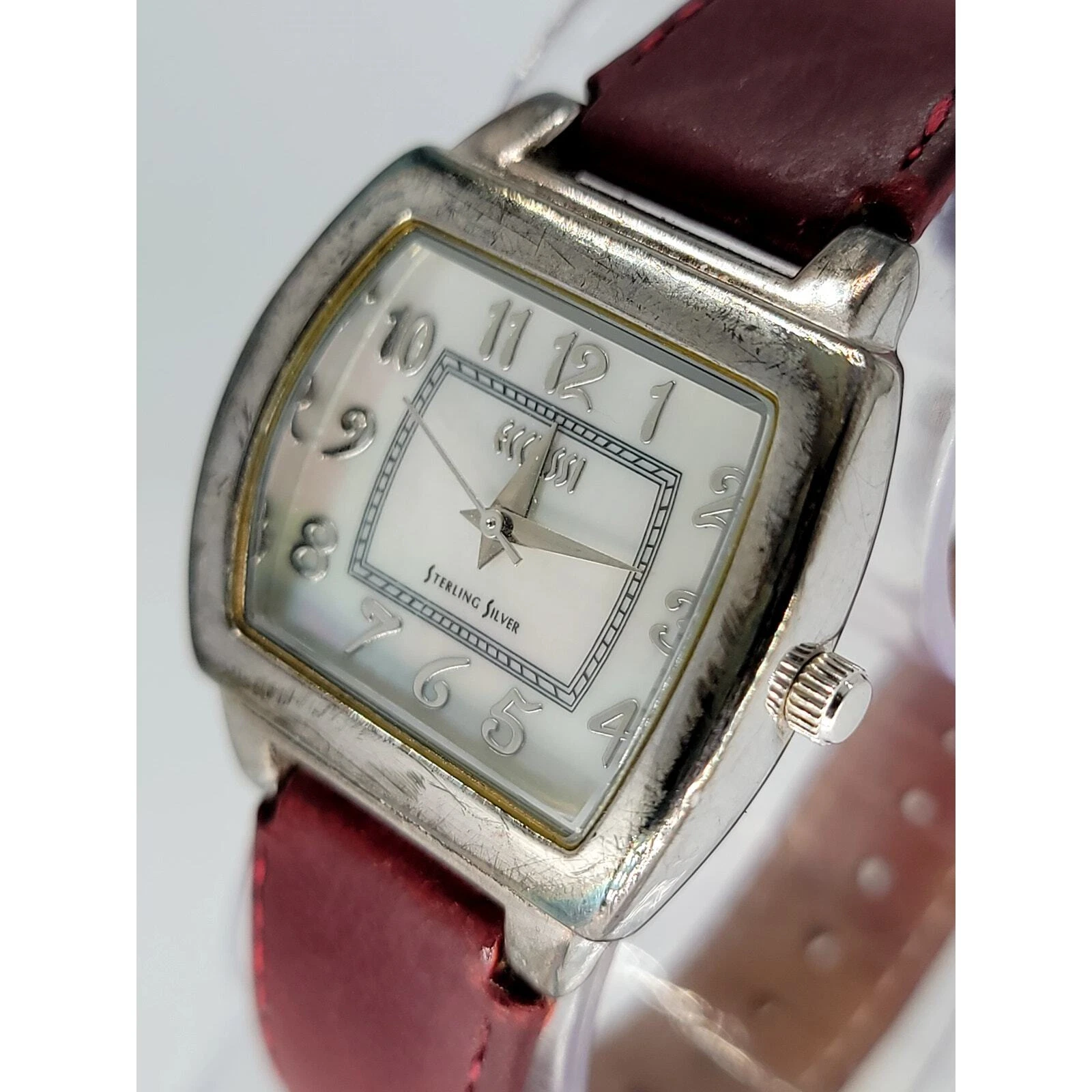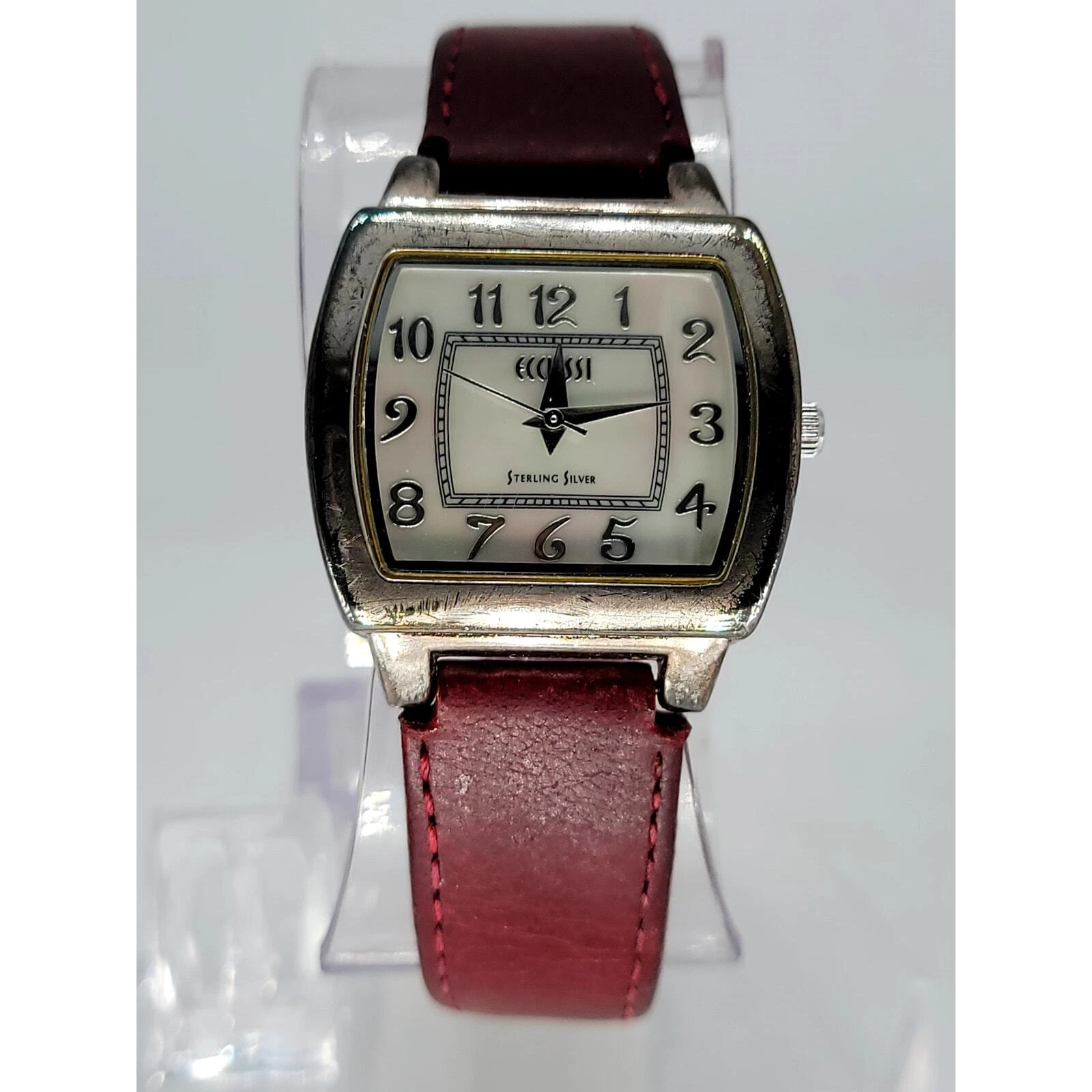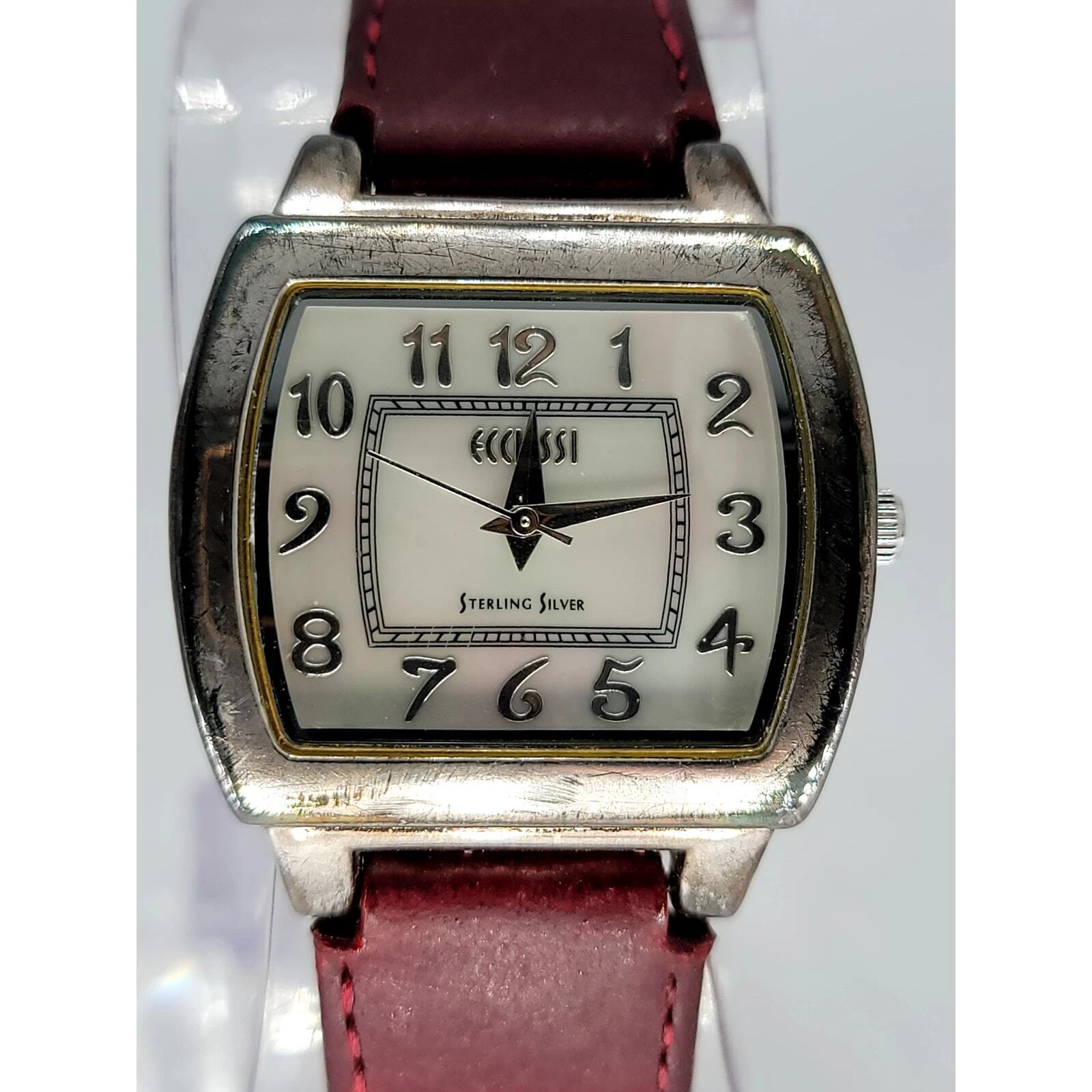 Vintage ECCLISSI Sterling Silver Watch with Maroon Leather Strap