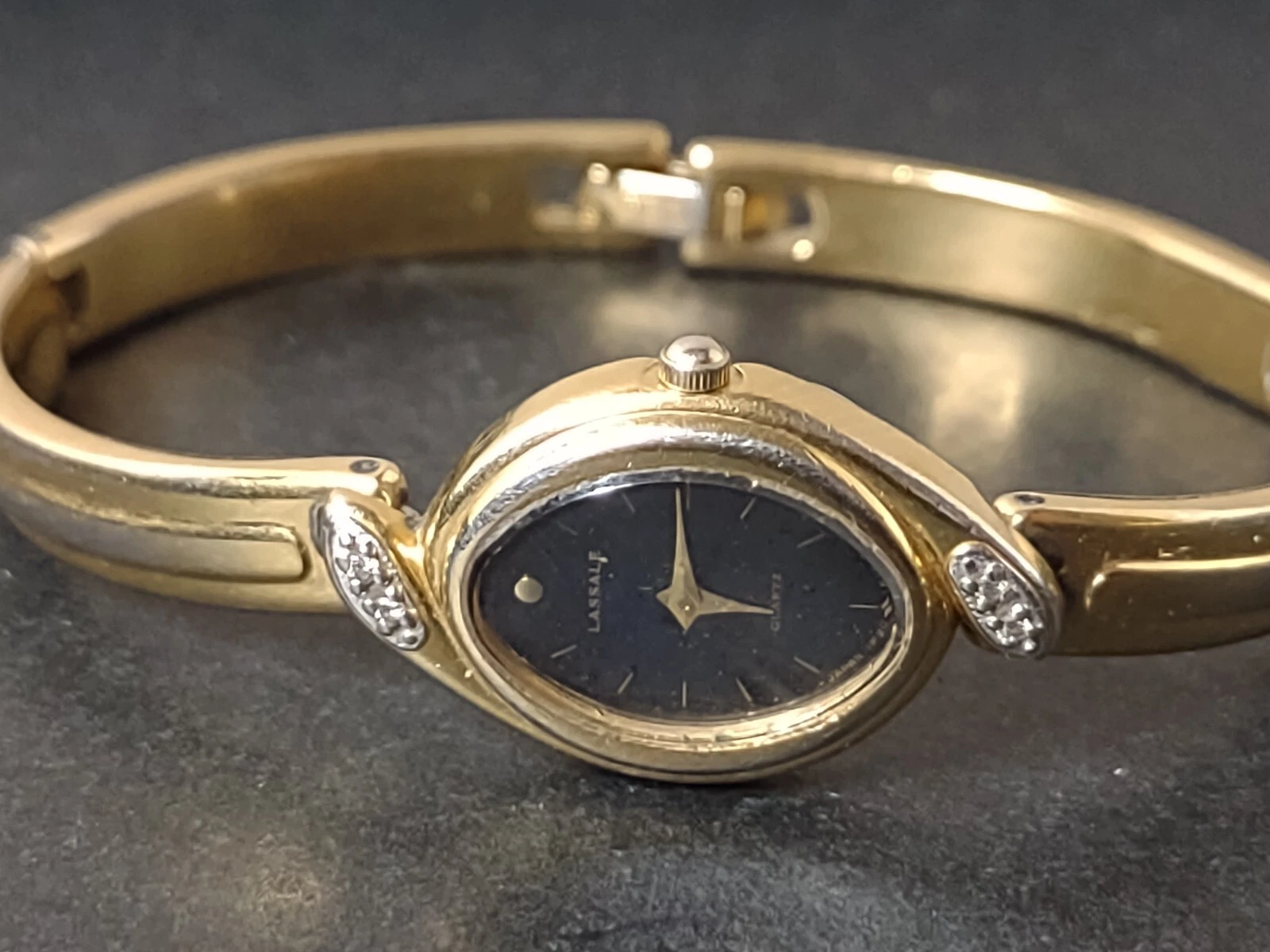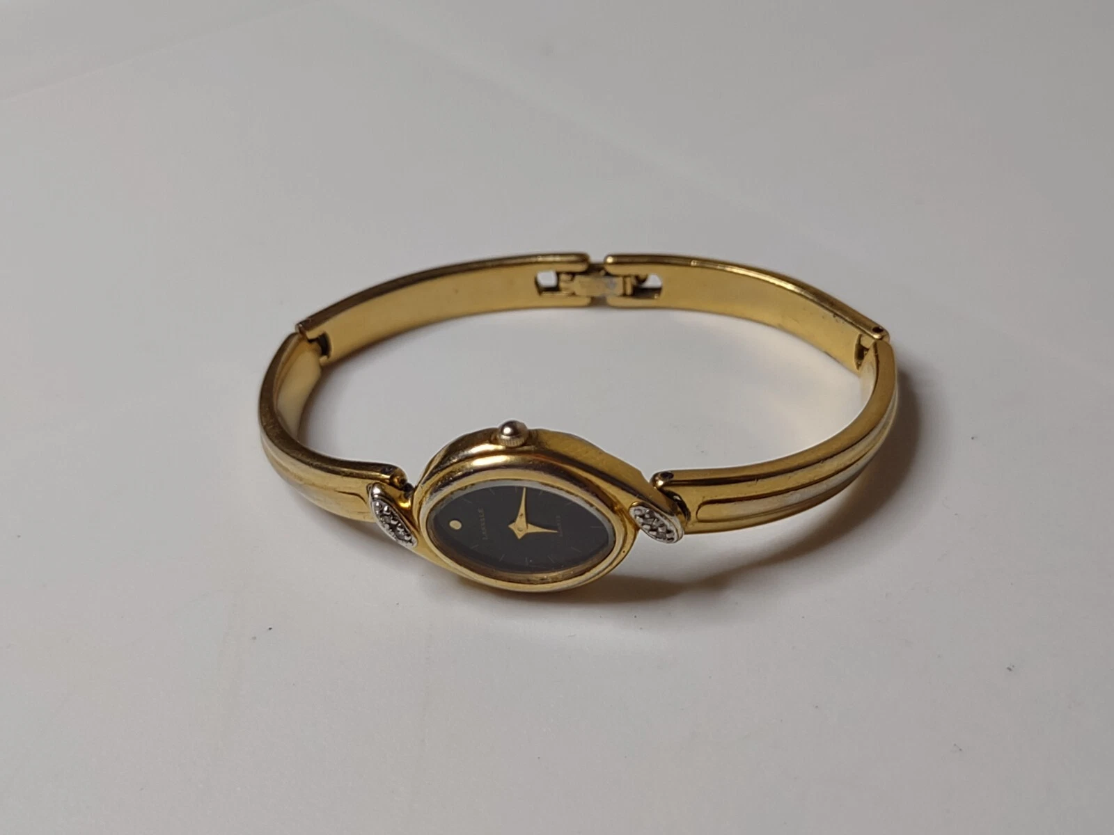 Vintage 6 Inch Gold Tone Lassale Seiko With Black Dial