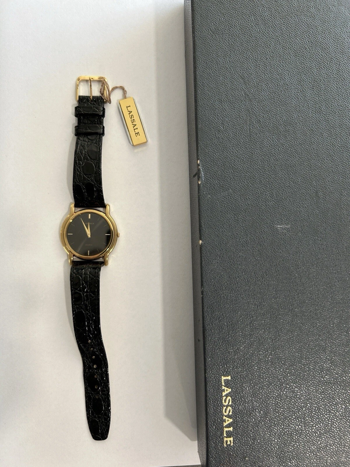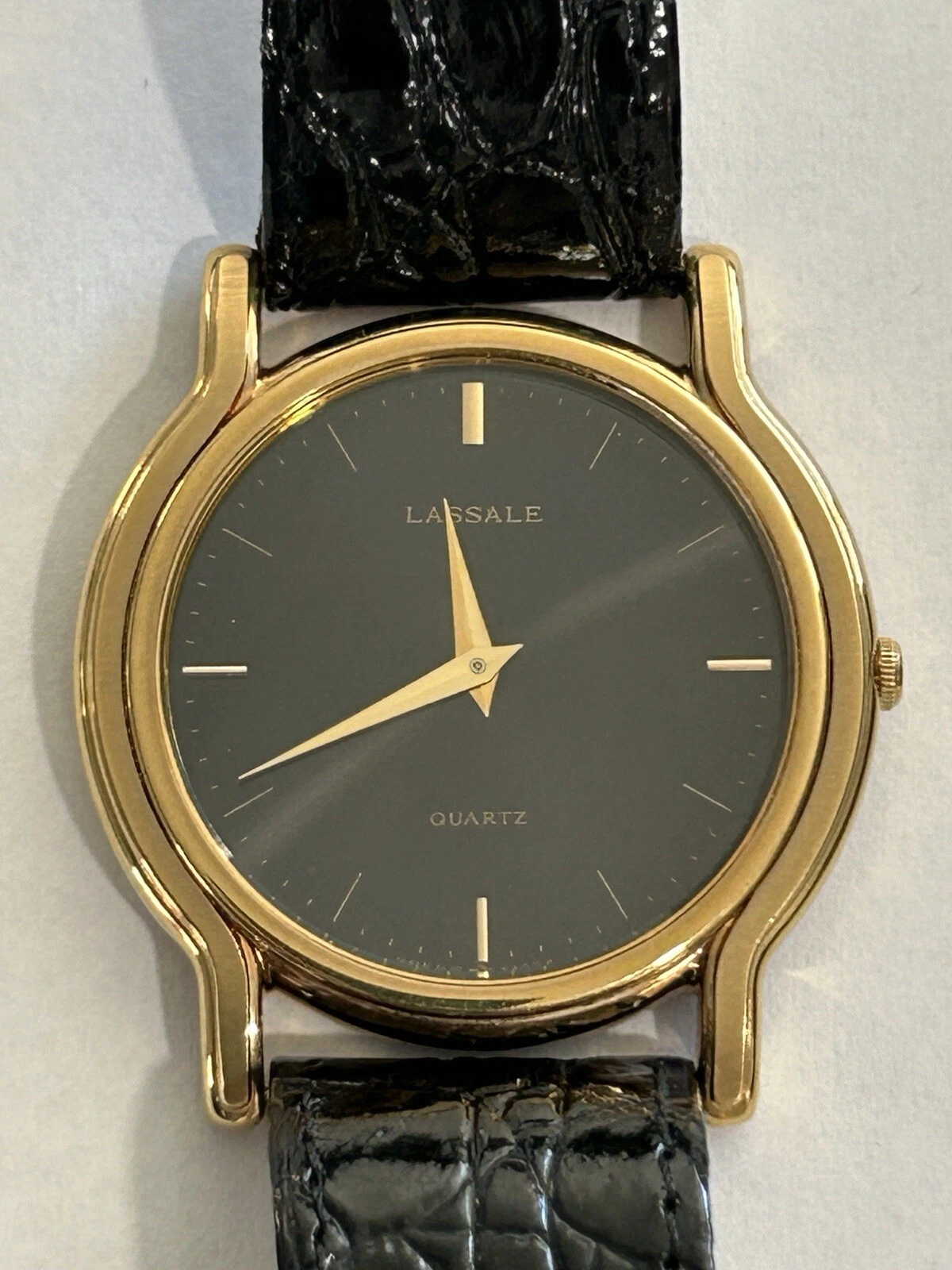 Vtg Lassale Seiko Gold Tone Black Face 5L10-6A09 Men’s Watch W Box Tag No Res!