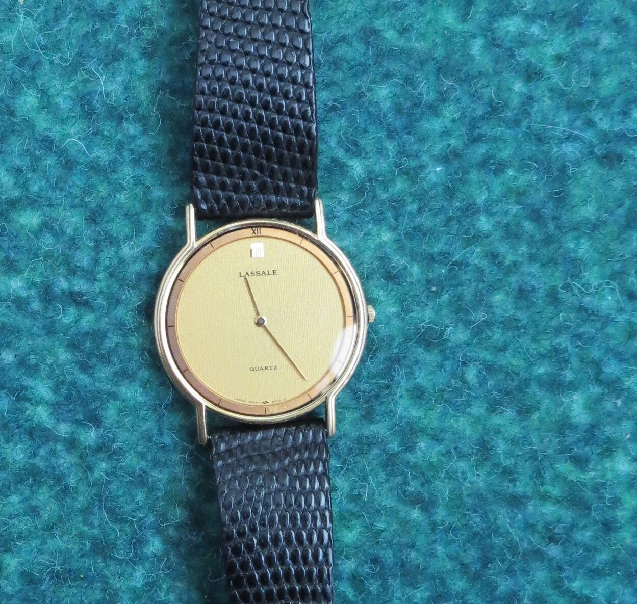Vintage 1980’s Lassale Dress Watch Men 31mm Gold Dial 9550-6019 Original