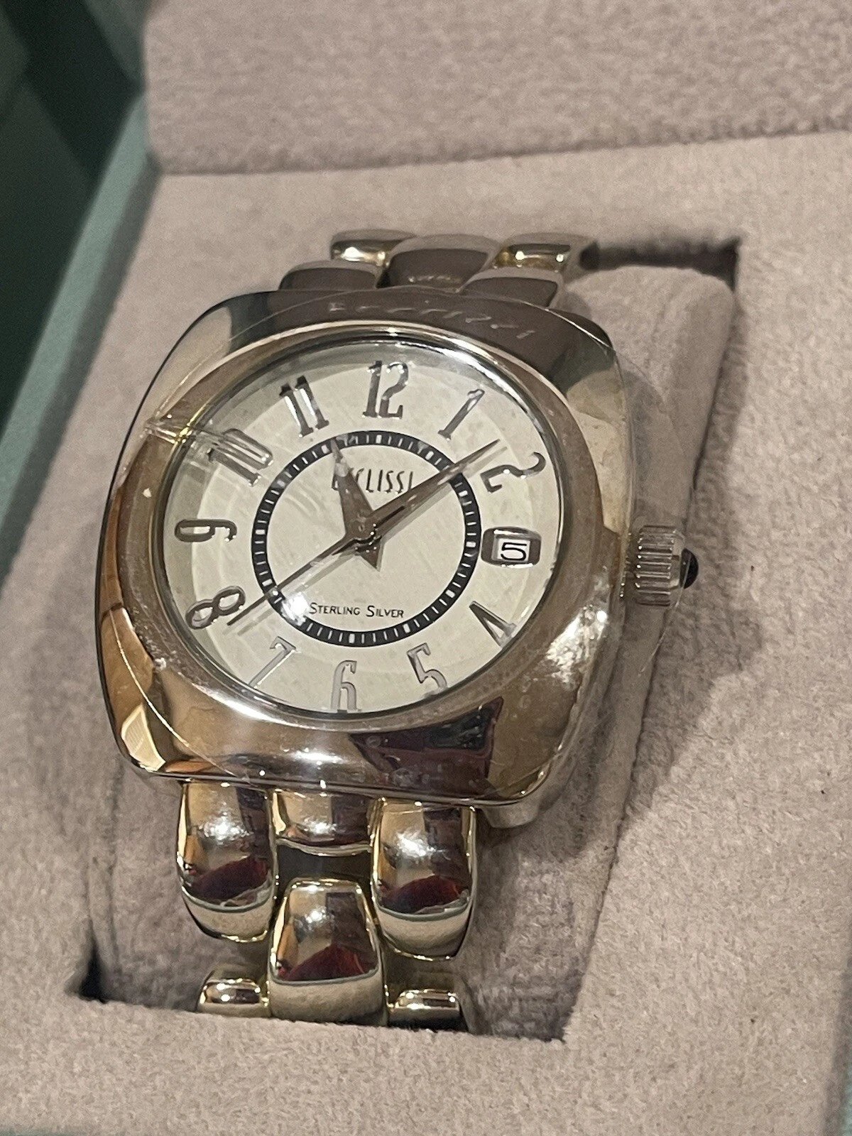NIB Ecclissi 925 Sterling Silver 32696 Quartz Watch 35mm White Dial