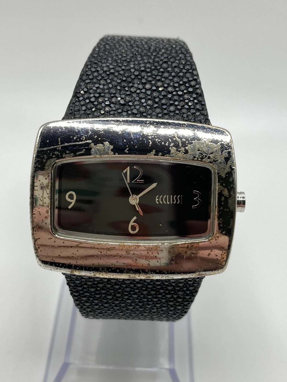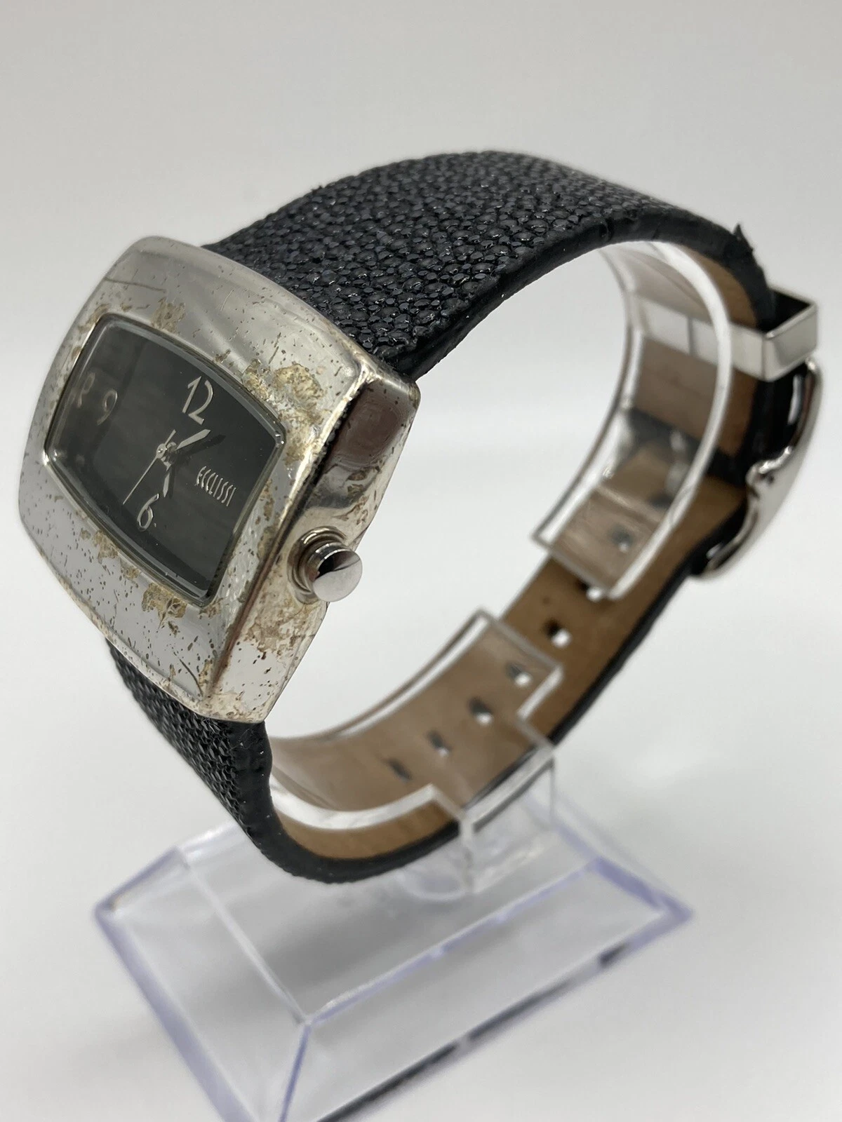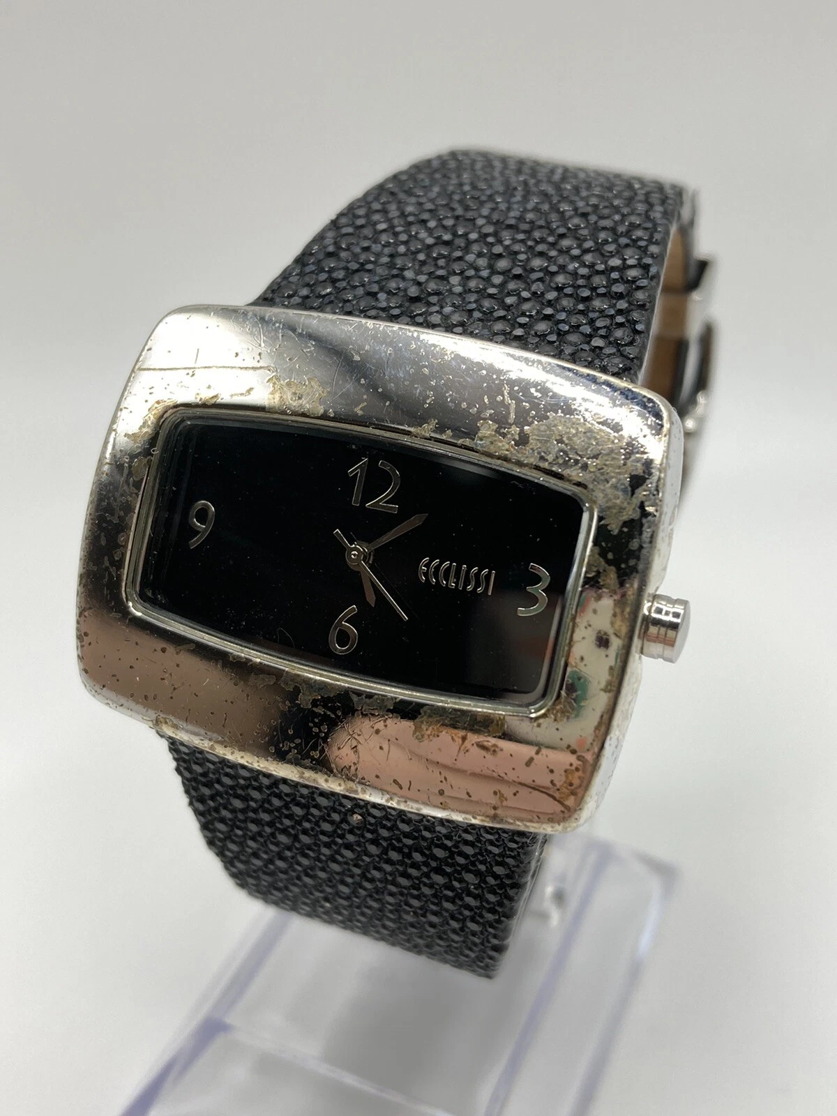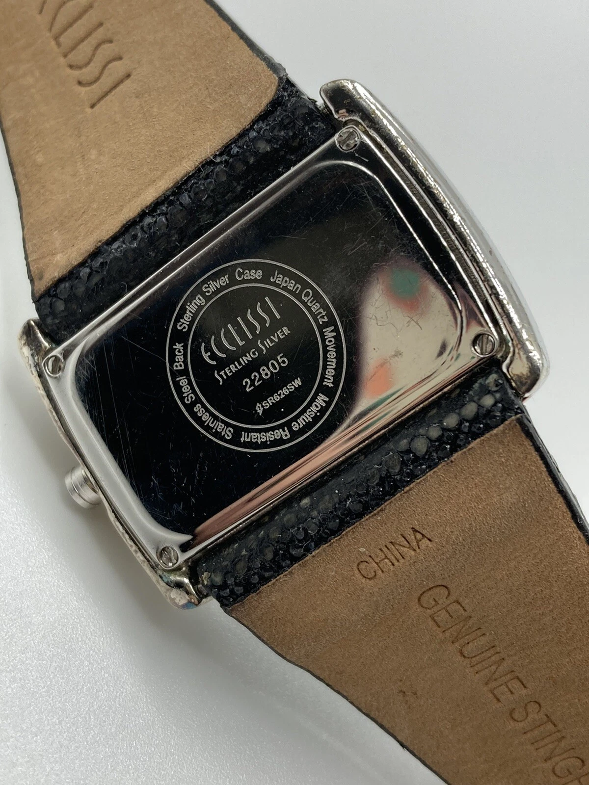Vintage Ecclissi Sterling Silver 925 Stingray Leather Band Watch New Batt