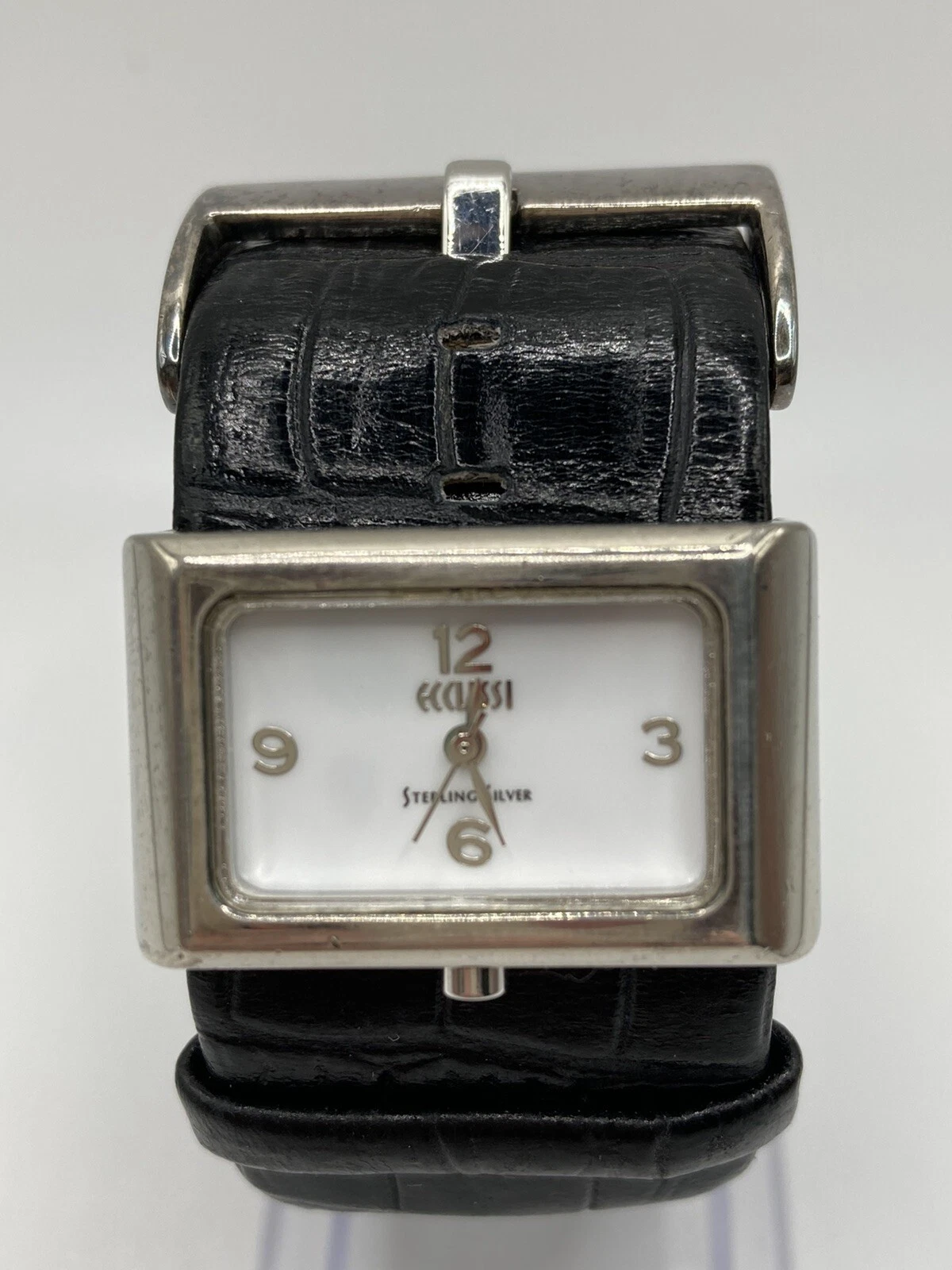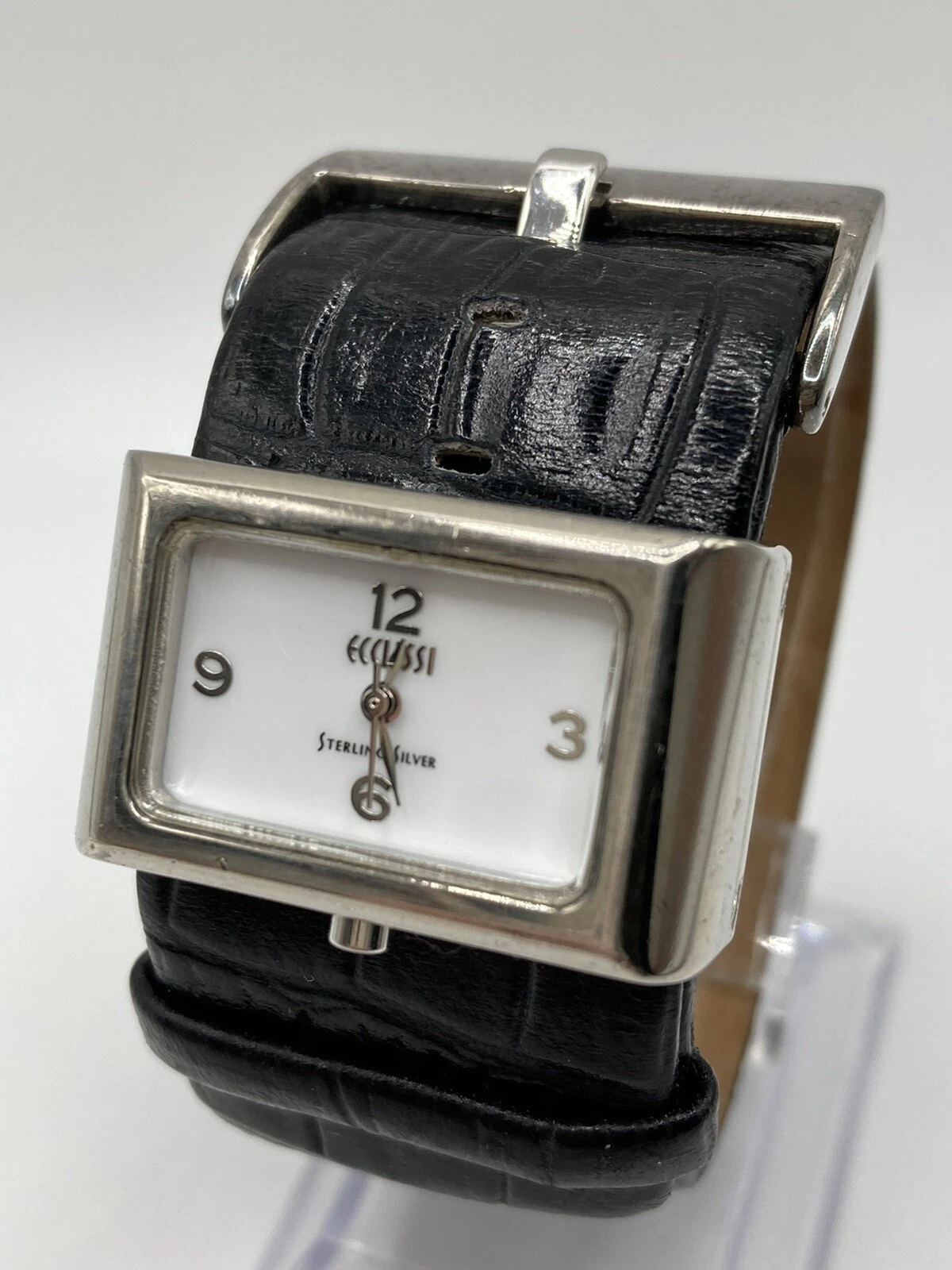 Ecclissi Sterling Silver Vintage Ladies Wide Leather band Watch New Batt