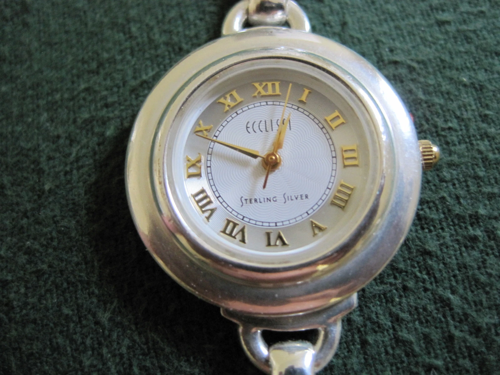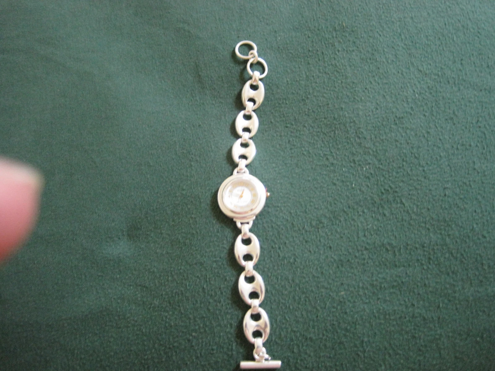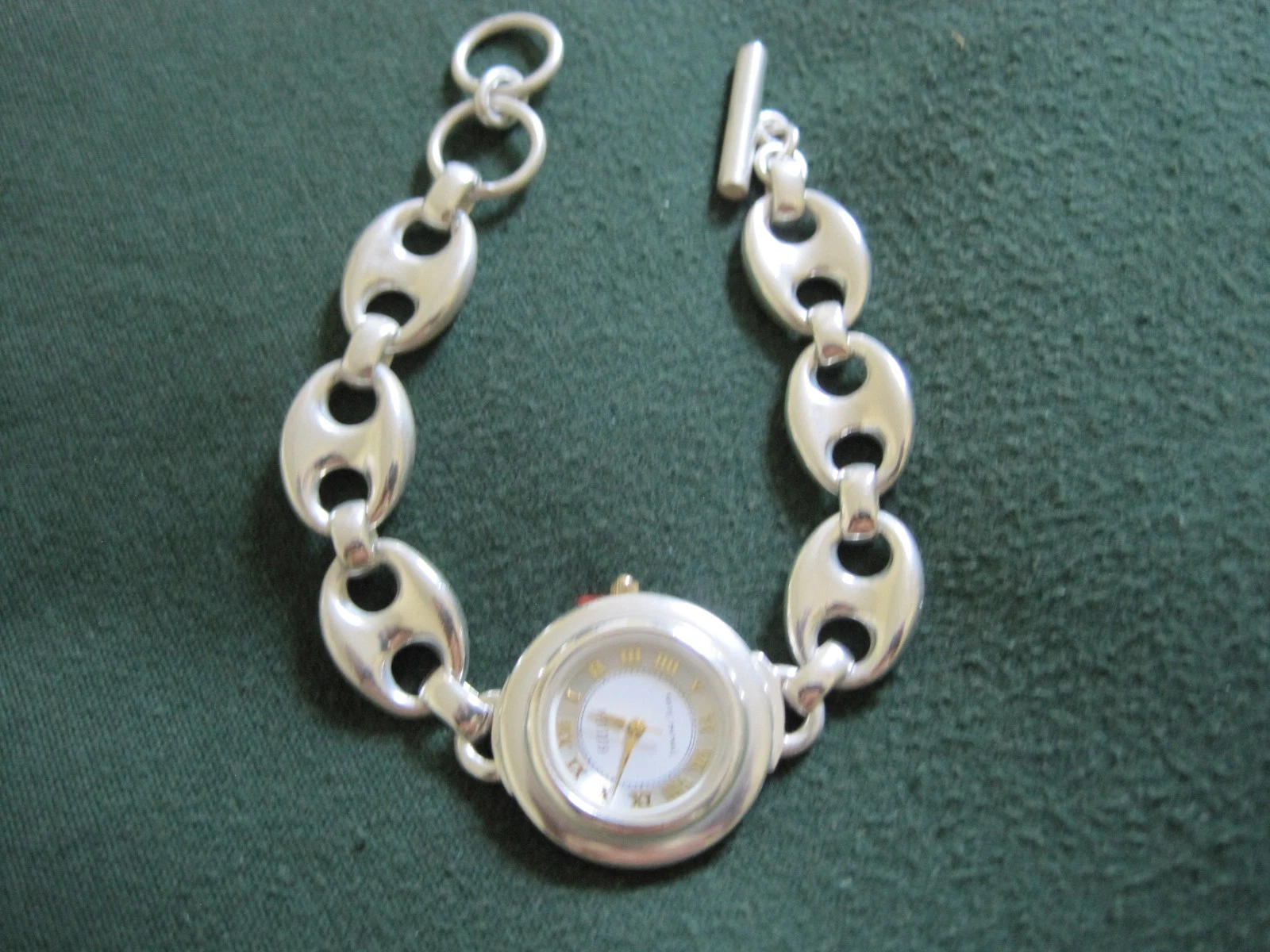 #572 ECCLISSI ladys sterling silver ankor link watch bracelet.