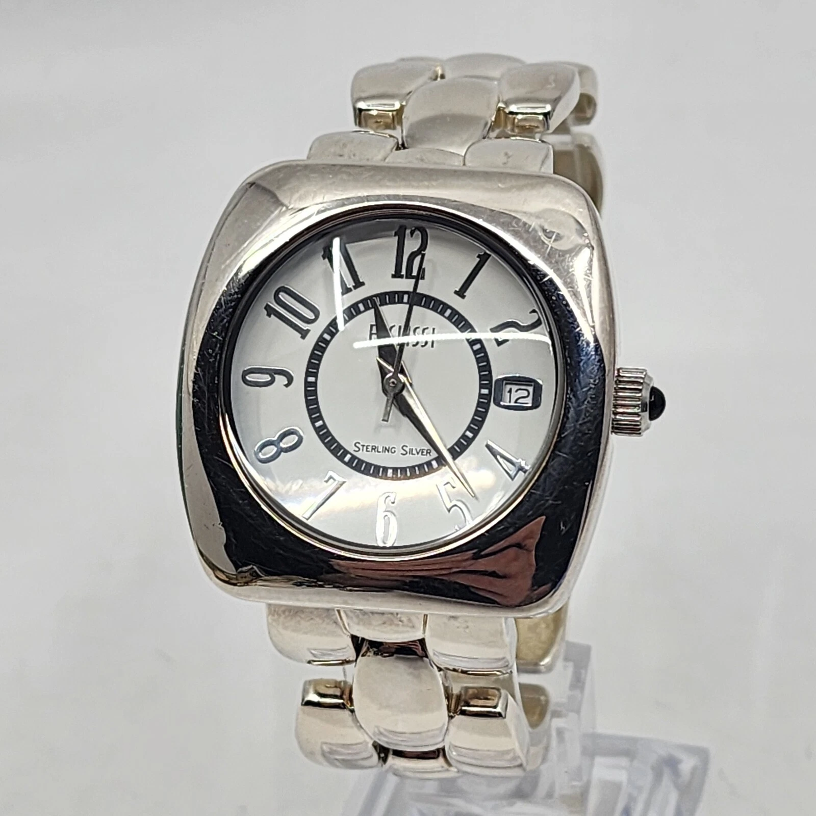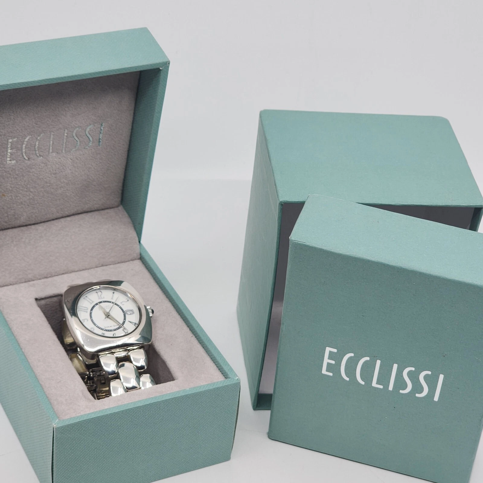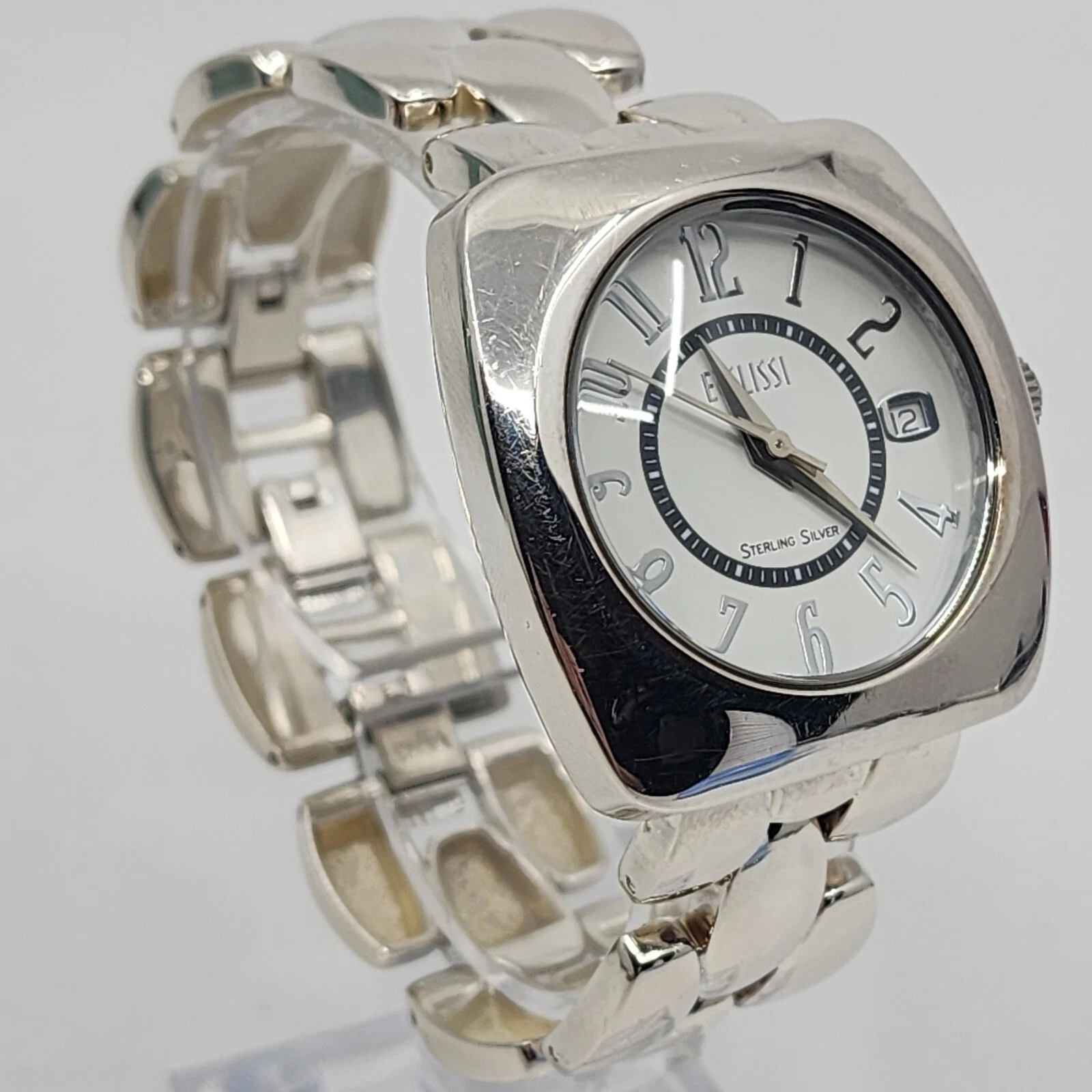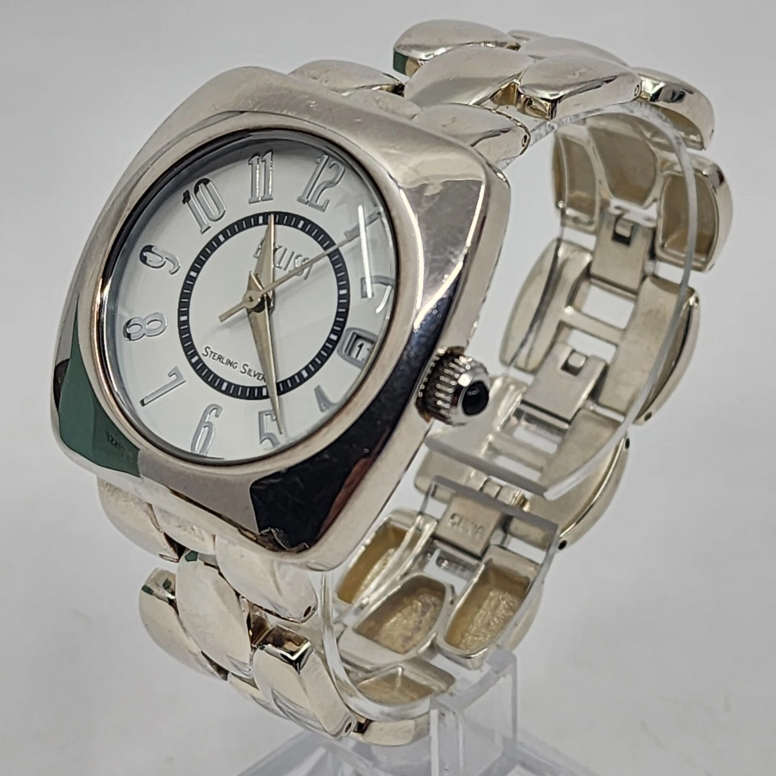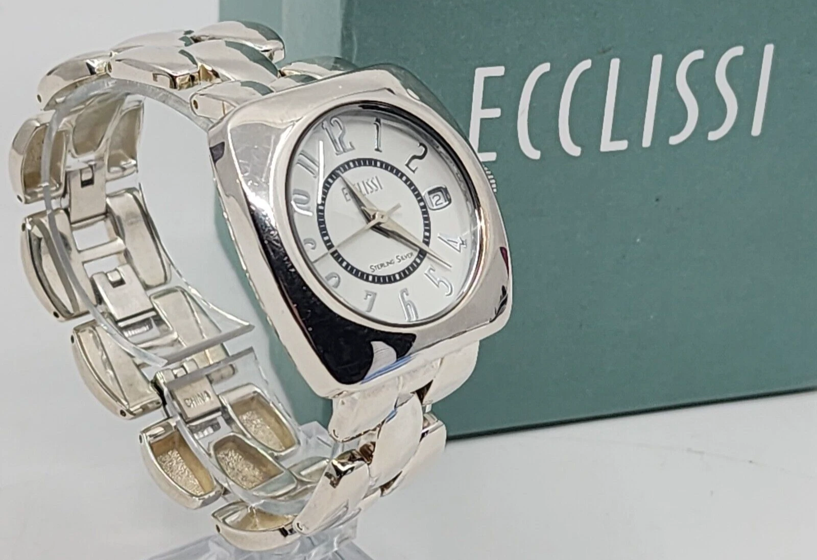 SOLID SILVER Ecclissi 925 Sterling Silver Case & Band 32696 Quartz Watch 35mm