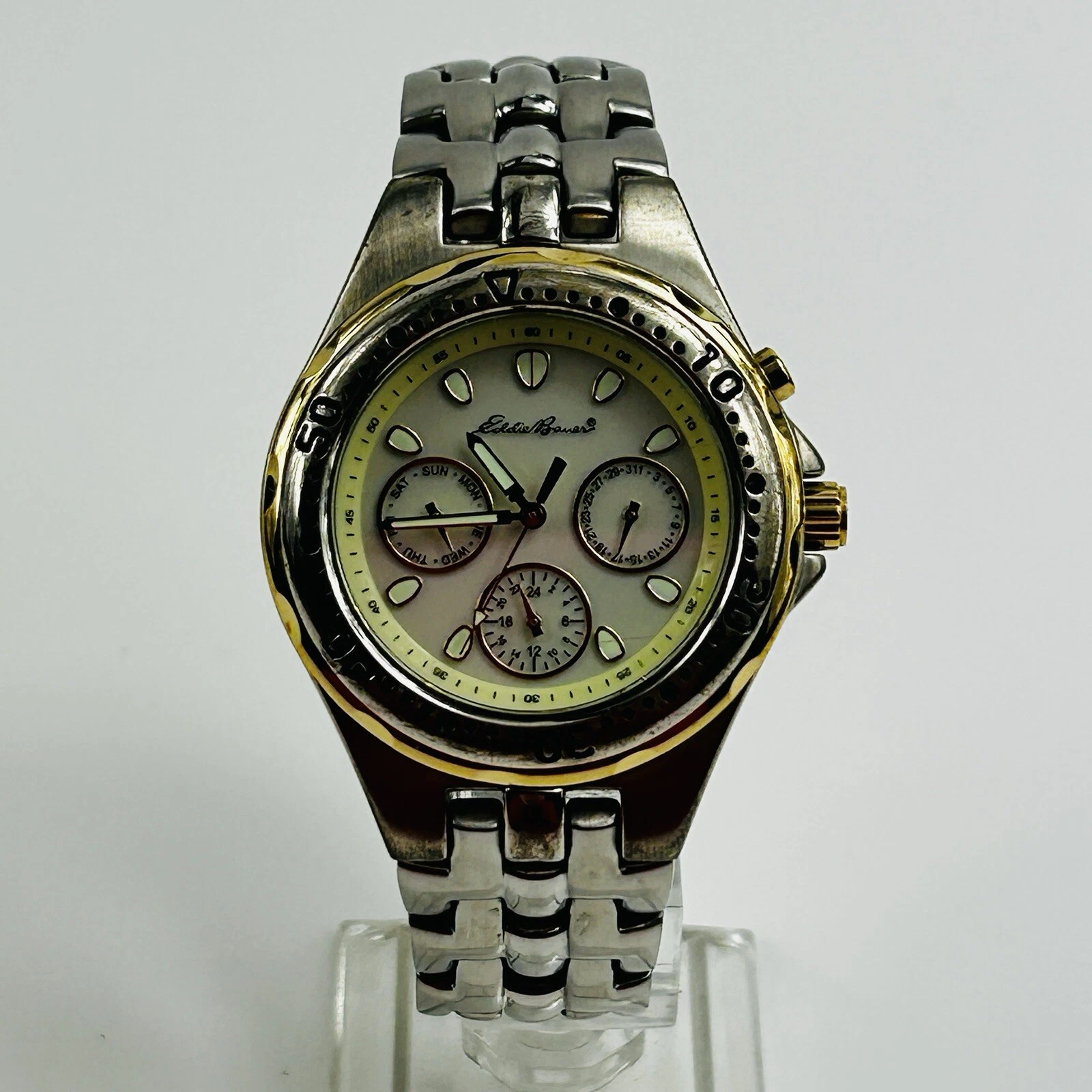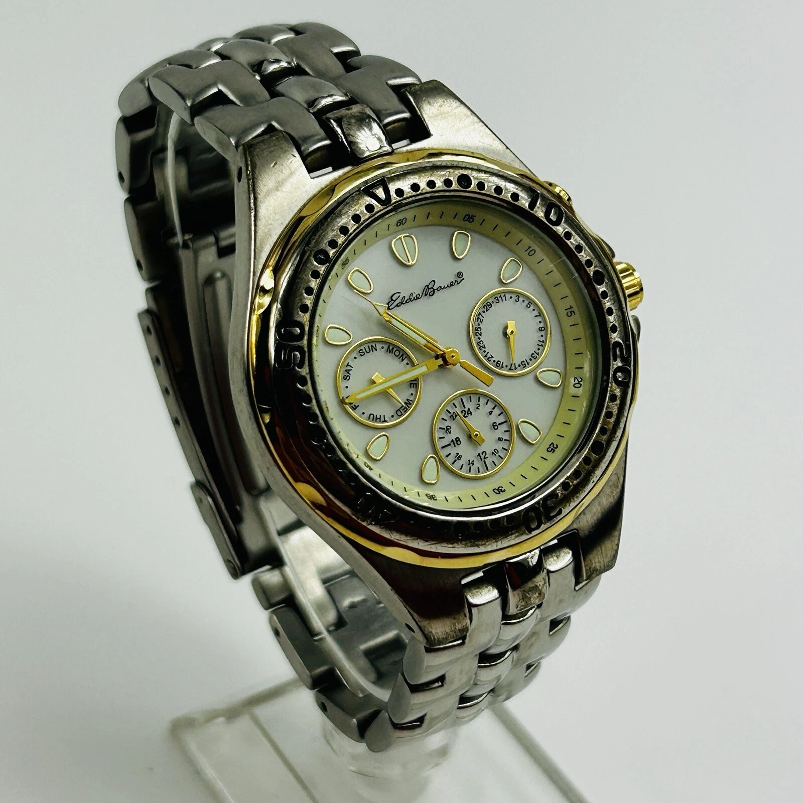 Eddie Bauer Watch Men 38mm Gold Silver Two Tone Day Date Light New Battery