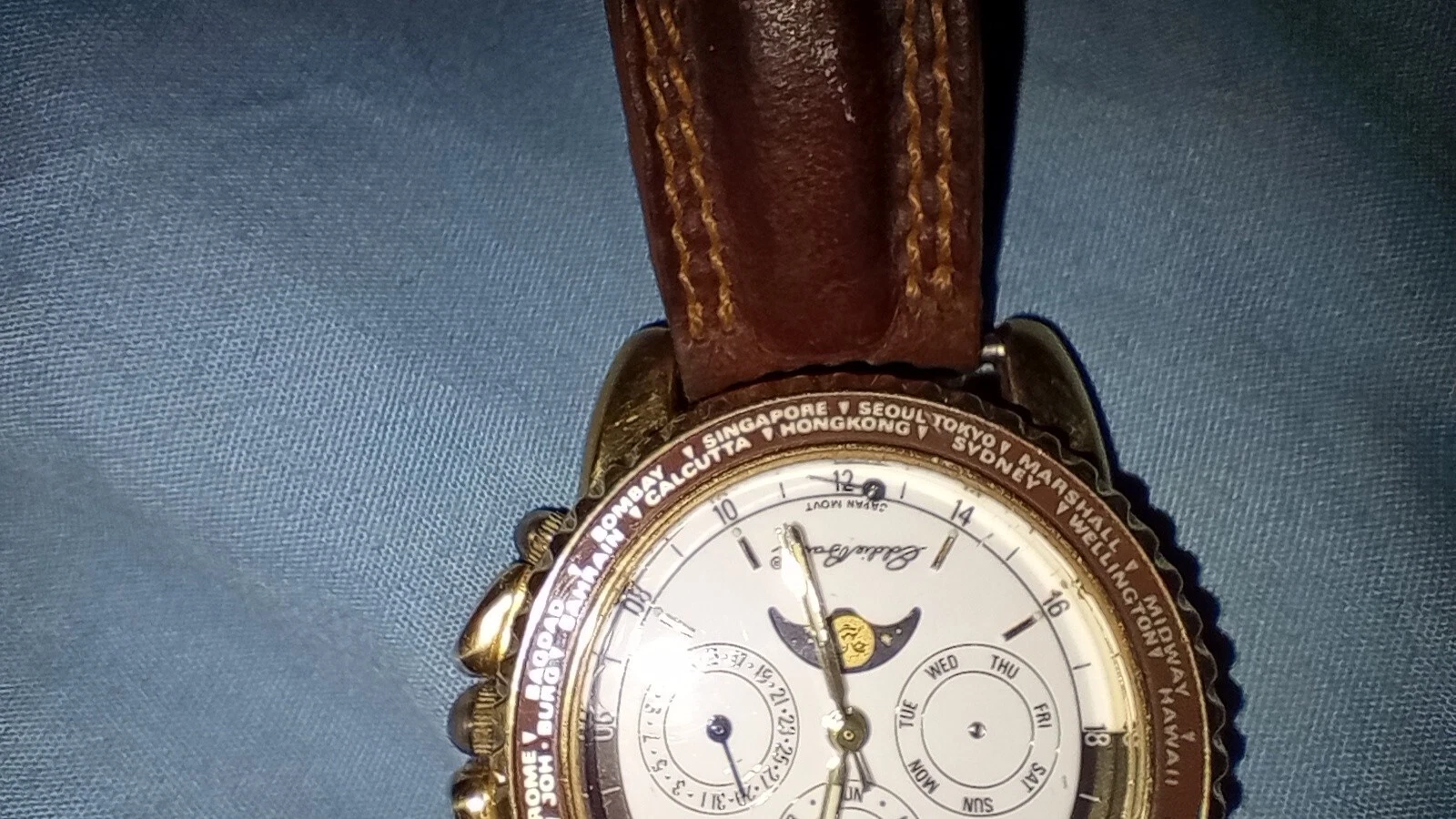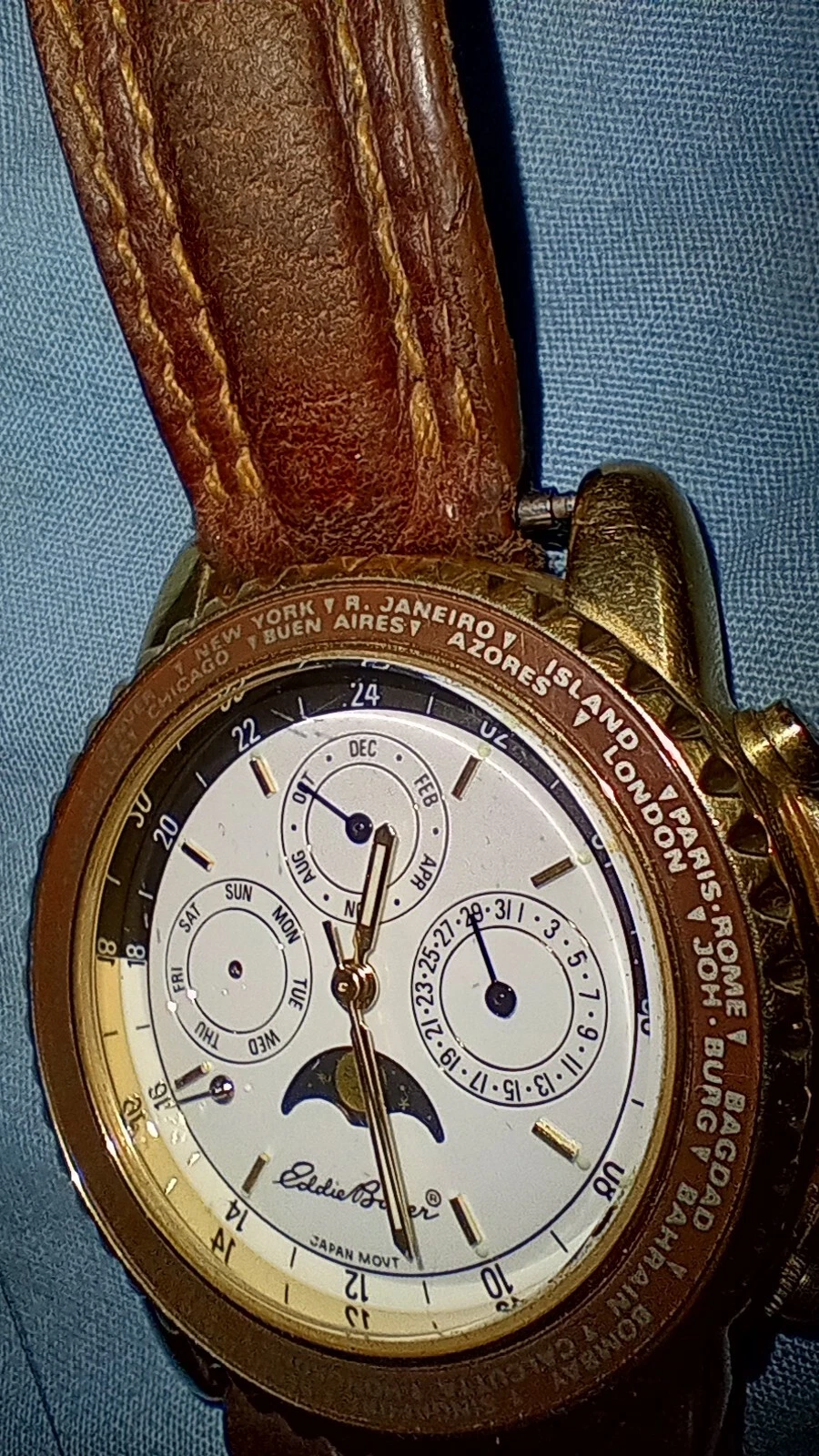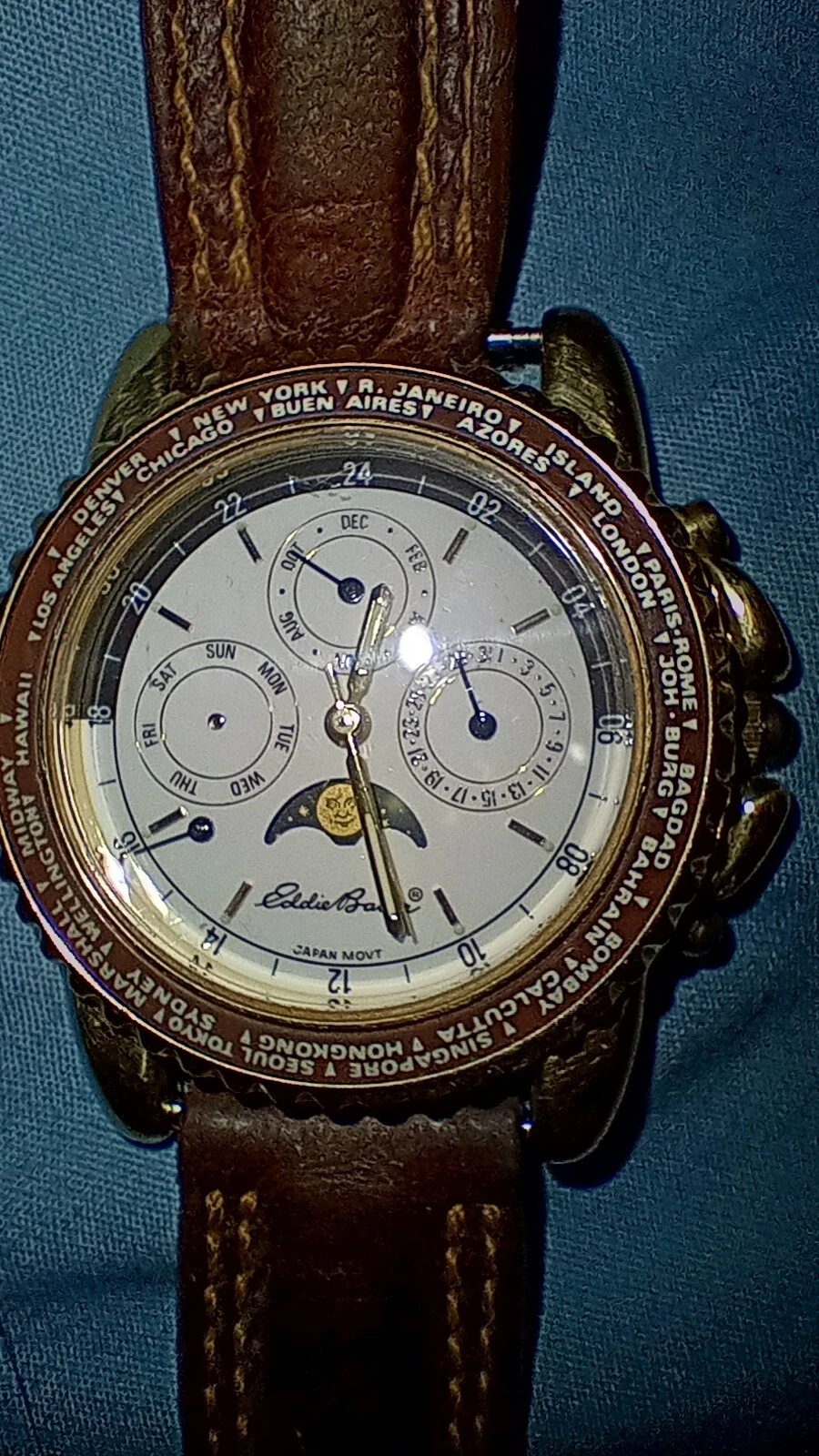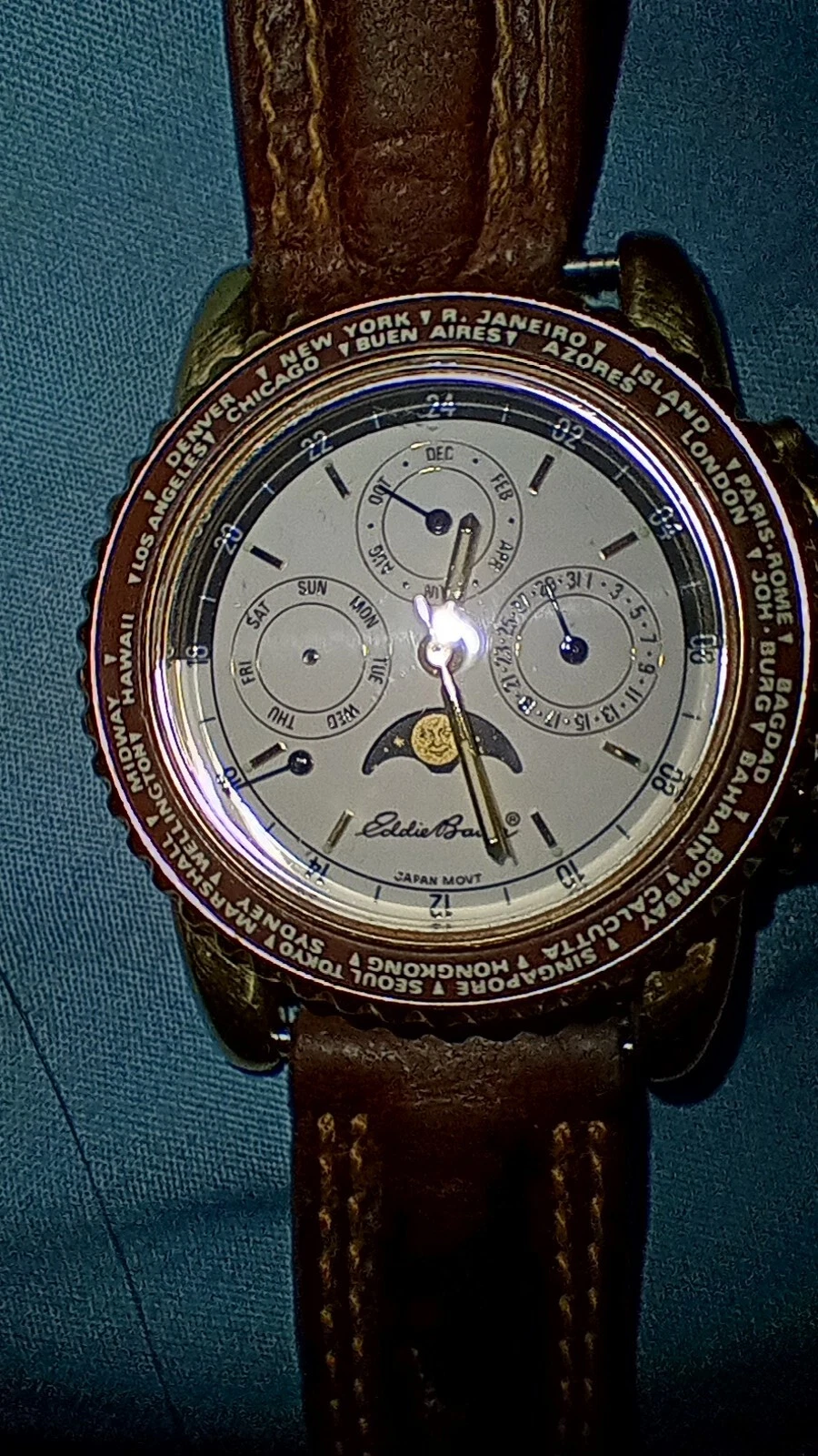 Eddie Bauer Chronograph Moon Phase Tracker Rotating Bezel Day Date Month