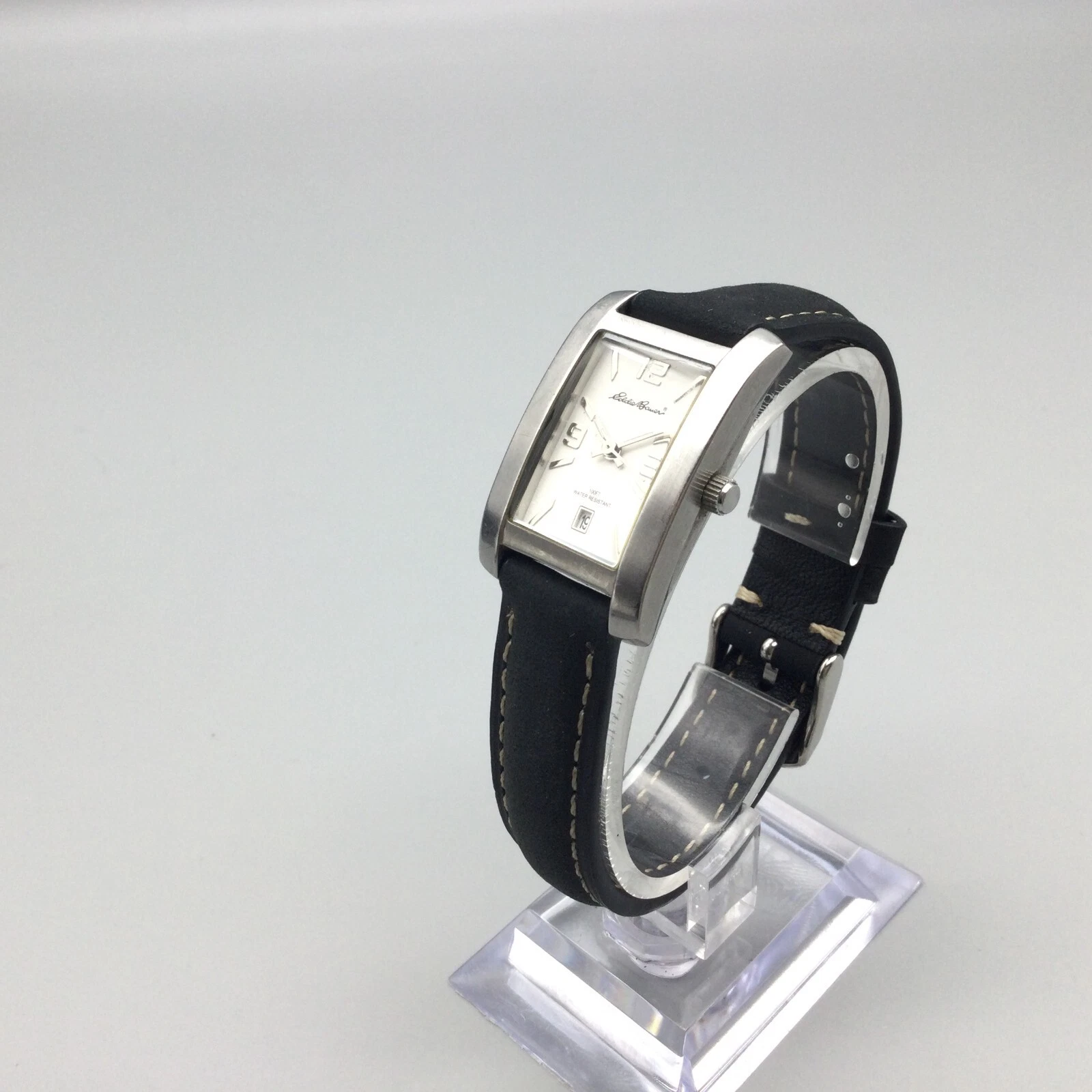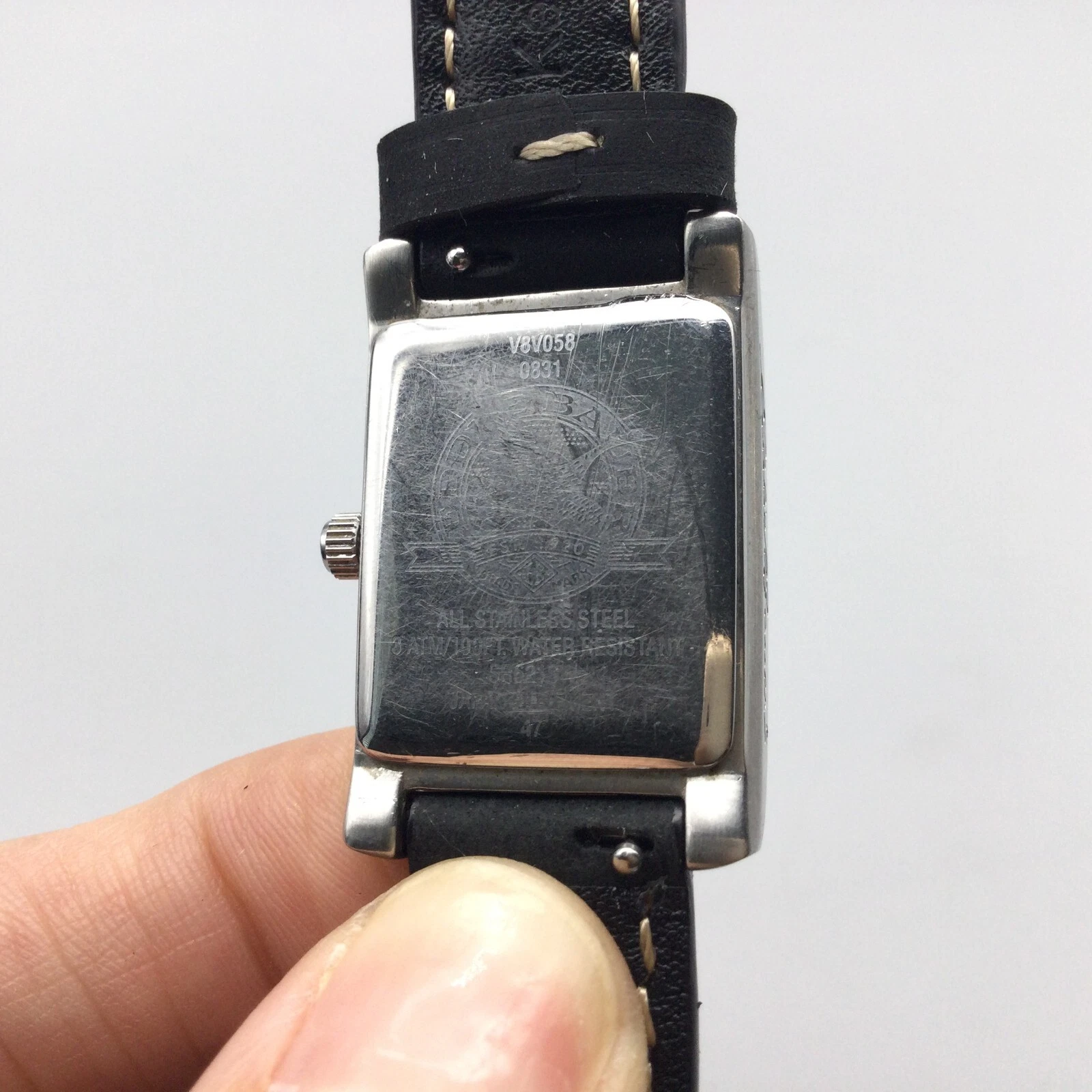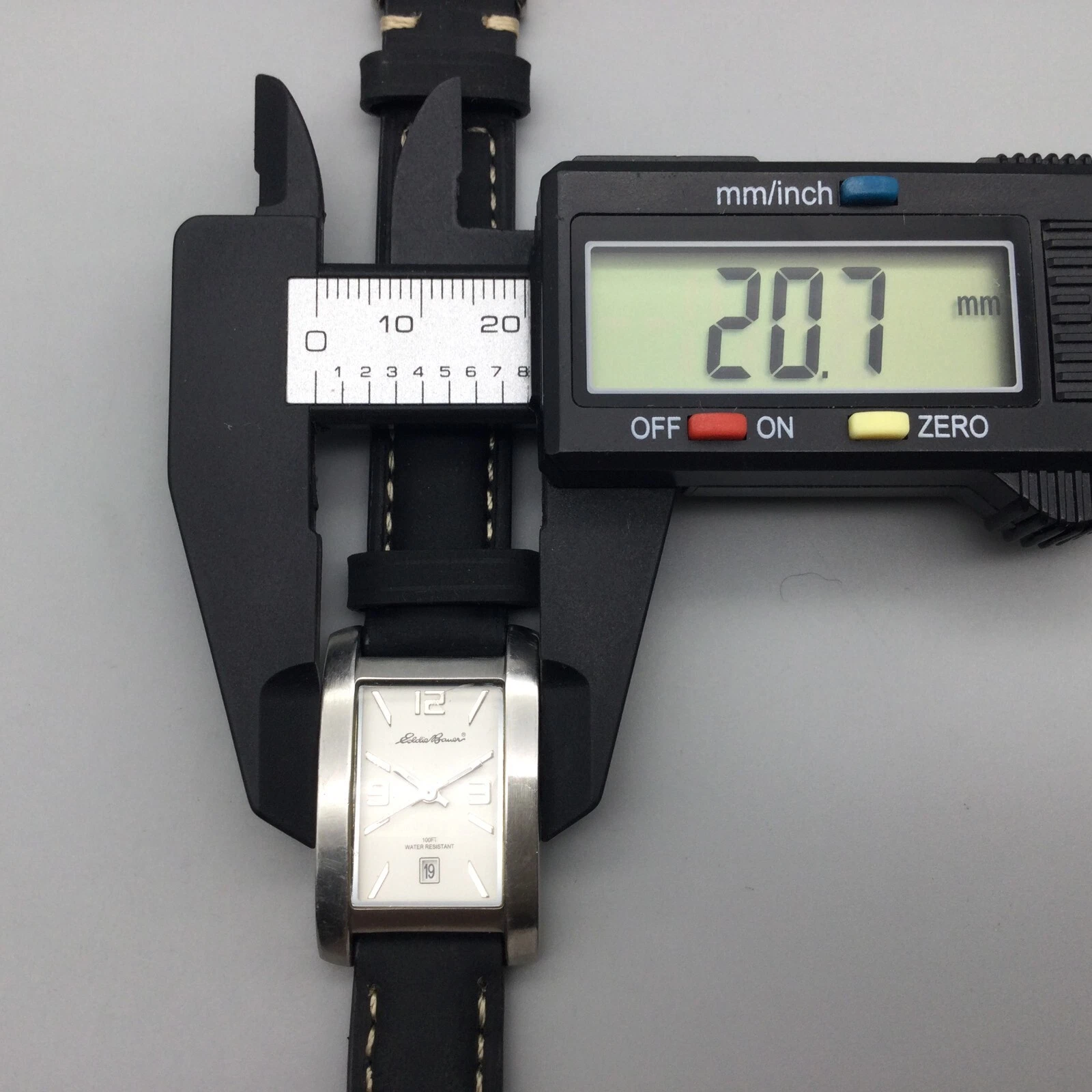 Eddie Bauer Tank Watch Women 21mm Silver Tone Date Leather Band New Battery