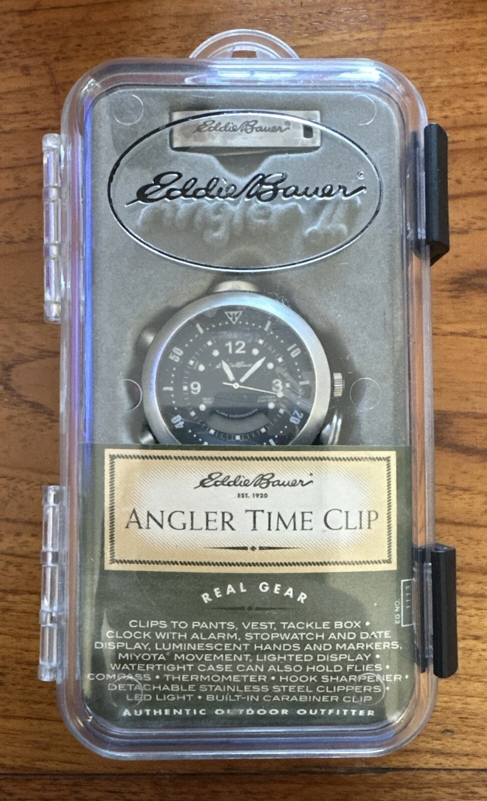 Rare Eddie Bauer Angler Time Clip Angler II Watch W/ Original Otter Box #1113